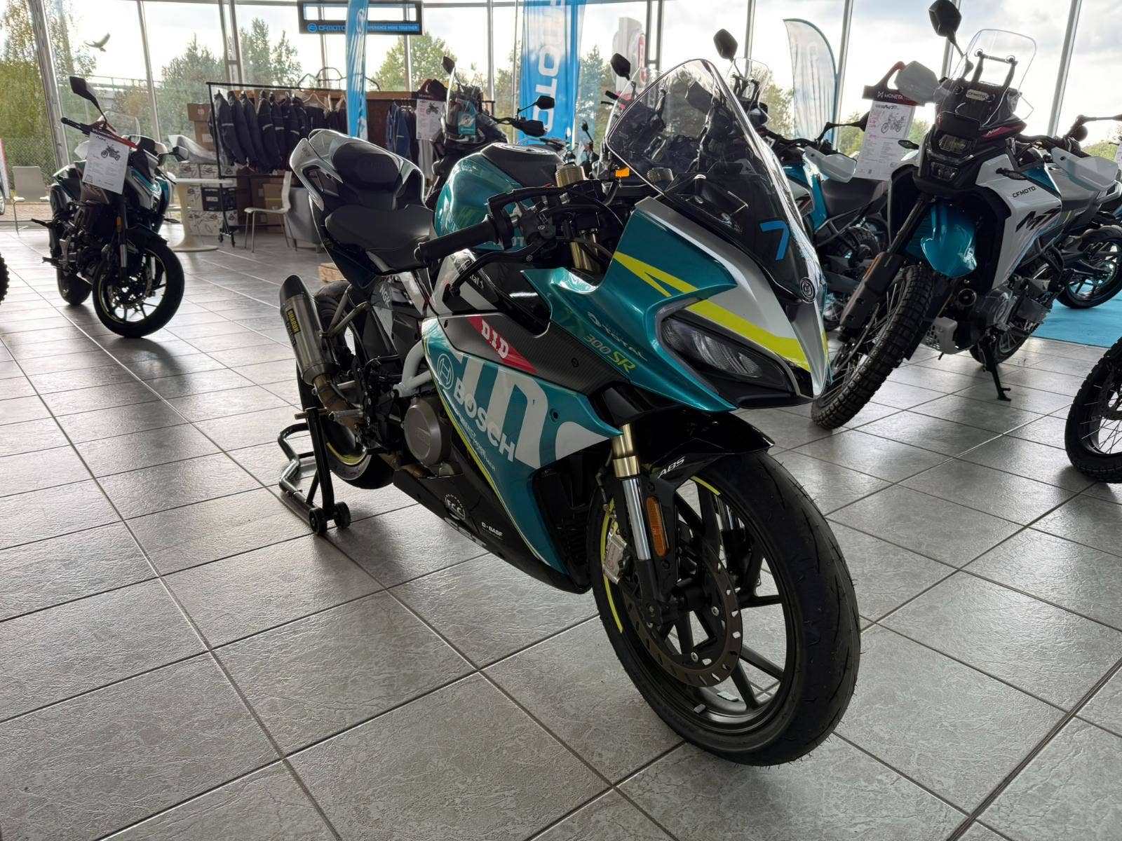 Model 300SR (Sport Racing) je sportovní motocykl se sofistikovaným designem a zaměřením pro masy. Kombinace skvělé ovladatelnosti a hravosti je základem každého motocyklu, který tato "třístovka" s váhou 165kg hravě zvládá jak v běžném provozu, tak i na okruhu.