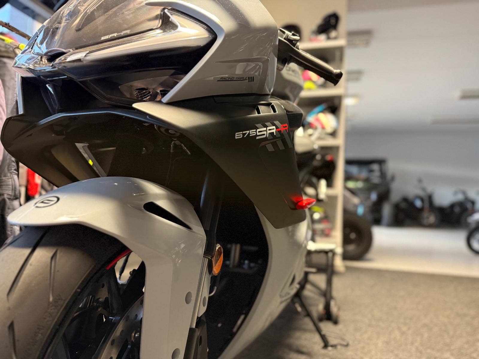 675SR-R nabízí ve střední třídě silničních motocyklů aerodynamiku inspirovanou závodním okruhem. Prvky kapotáže zvyšující přítlak a usměrňující proudění vzduchu pro lepší chlazení brzd byly charakteristické pro sportovní elitu. Nyní již ne. Ve spojení s novým tříválcovým motorem a stavitelným podvozkem máte jistotu excelentních okruhových zážitků, ale také možnost na okruh pohodlně dojet po běžné silnici.