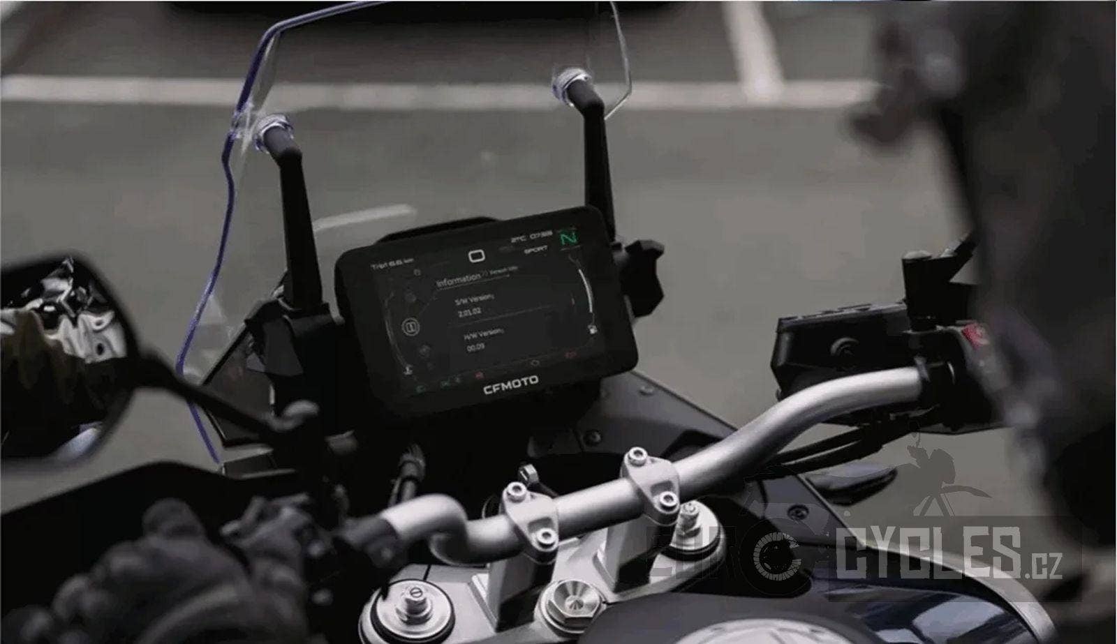 Díky spojení společností CFMOTO a KTM do společného výrobního závodu jedete na moderním stroji, kde jedním ze základních stavebních kamenů je dvouválcový řadový motor LC8 799cm3. Při plnění emisní normy Euro5 máte k dispozici výkon 91 koní a kroutící moment 75 Nm. Ve vysokých otáčkách motor disponuje výrazně sportovním charakterem, který vaši cestu promění v emocionální zážitek. Vyvážený průběh kroutícího momentu ve středních otáčkách dokáže zklidnit jízdu a nechá vás vychutnat místa, která objevujete a nebo s rozvahou zvládat veškeré nástrahy města. Úspornost motoru znamená, při objemu nádrže 19l, dojezd, až 400 km. Díky možnosti zvolit si režim motoru RAIN, nebo SPORT, máte k dispozici vždy takovou odezvu, jakou potřebujete. Plně stavitelný podvozek japonské značky KYB je přirozenou oporou, nad kterou nebudete přemýšlet, bez rozdílu, zdali zdoláváte dálniční kilometry, nebo objevujete místa mimo cesty. Širokým rozsahem nastavení se CFMOTO 800MT přizpůsobí všem jezdcům a prostředí, ve kterém se pohybují. Veškeré údaje důležité pro bezpečnost a cestovní komfort jsou zobrazovány na barevném TFT displeji 7”.