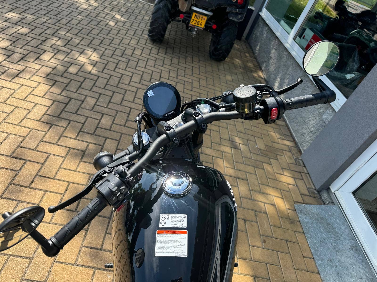Klasický kruhový tvar 3″ barevného TFT displeje nenarušuje styl stroje a zároveň poskytuje jezdci moderní technologie. Přehledné a čitelné zobrazení jízdních údajů je samozřejmostí. Překvapením může být nastavitelné upozornění na řazení. Při použití komunikační jednotky T-Box a navigace v aplikaci CFMOTO Ride dokáže zobrazovat navigační pokyny.