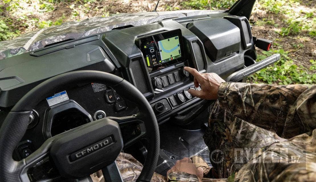 Uprage softwaru stroje je možný i doma přes APP CFMOTO RIDE (OTA systém s jednotkou T-Box - volitelné).