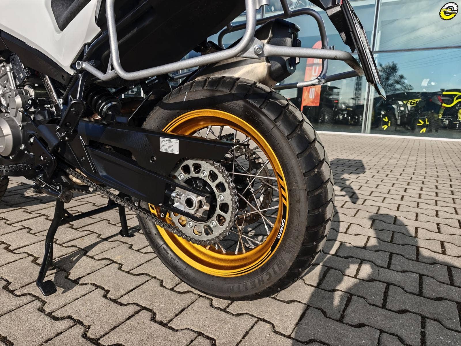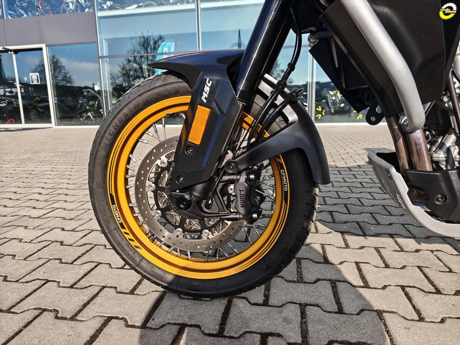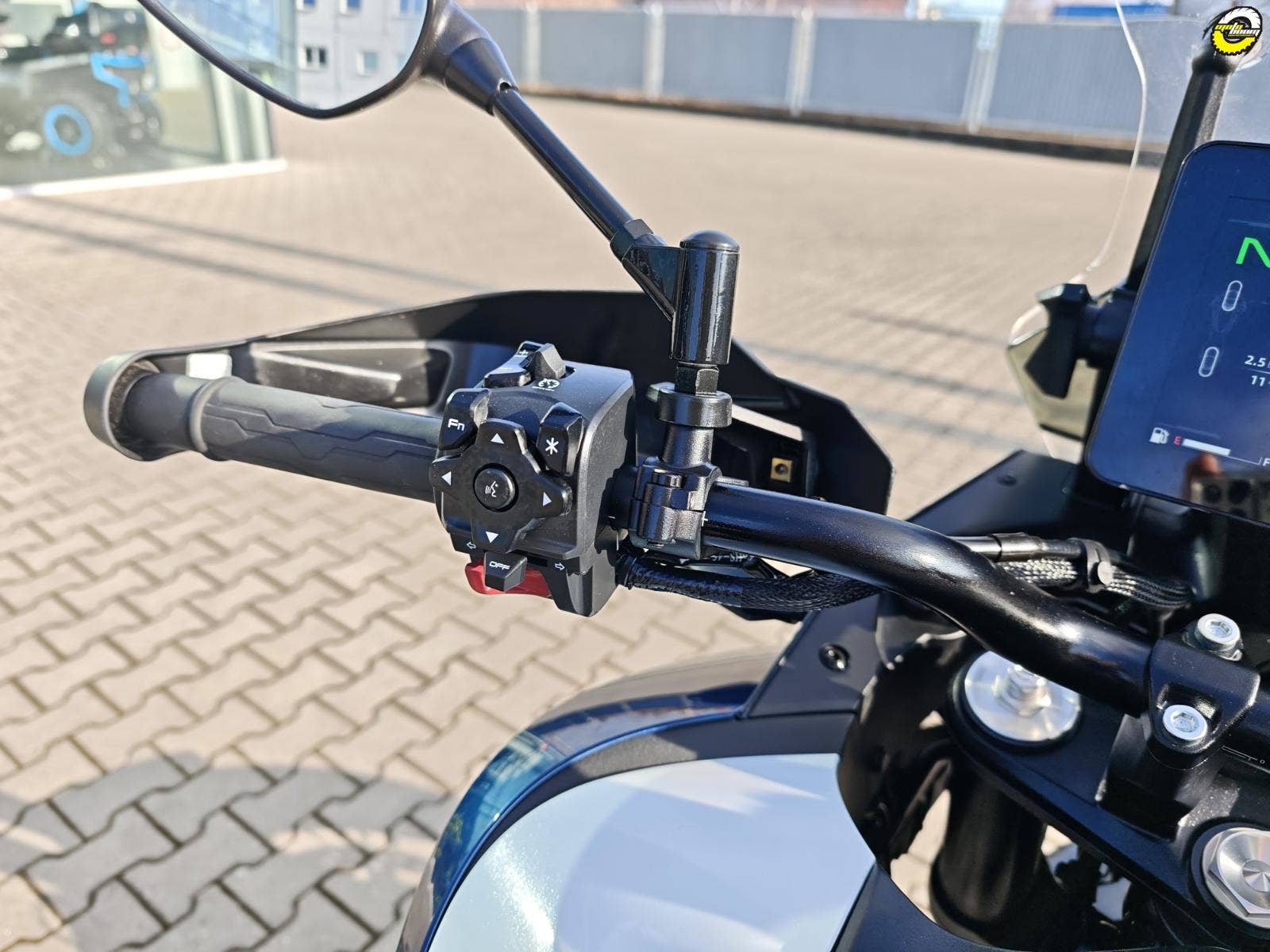 Verze Explore: Špičková technologická výbava (radar, různé jízdní režimy, velký displej, quickshifter, tlumič řízení, centrální stojan, vyhřívané sedadlo a gripy, blastery).