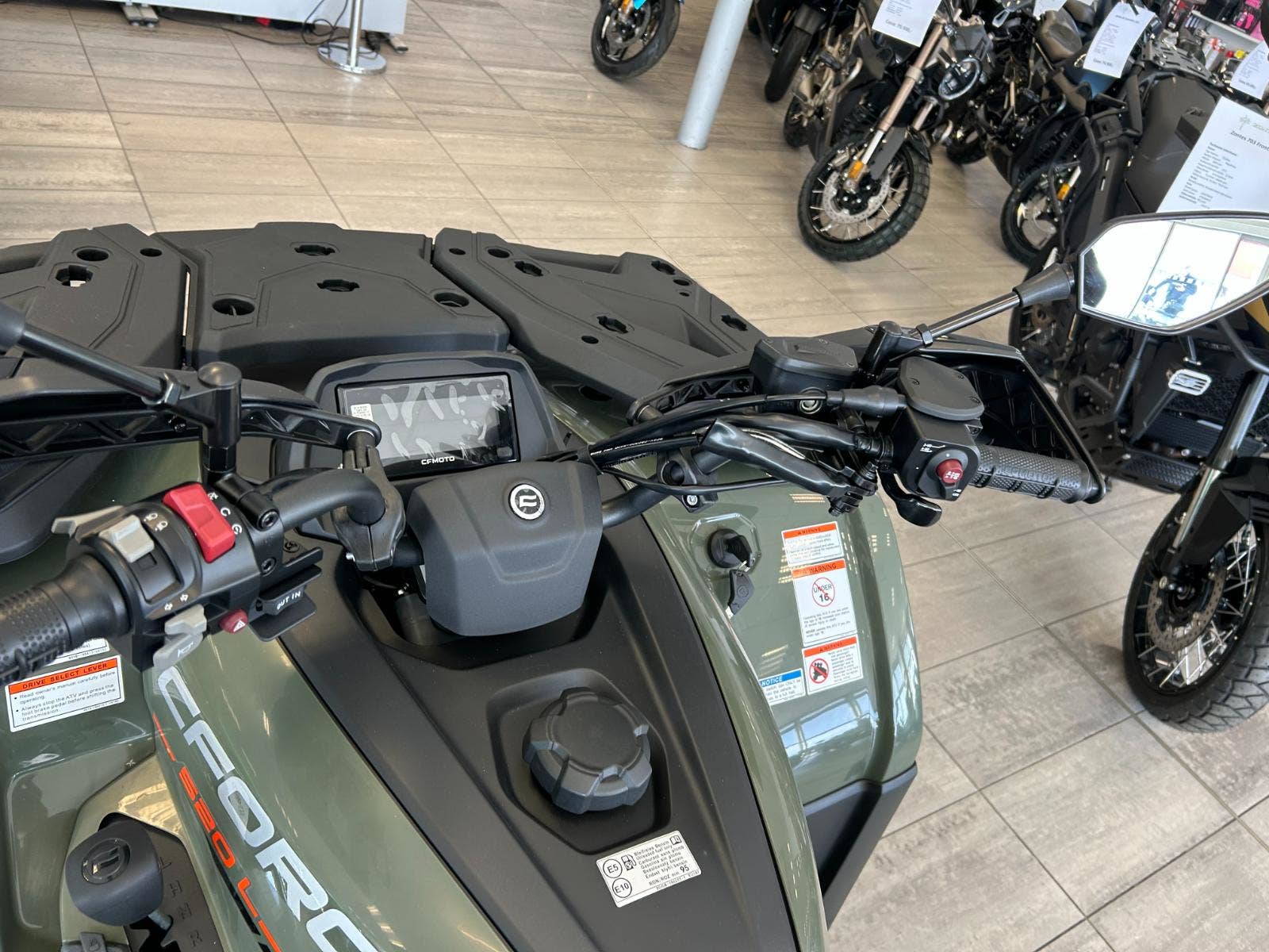 Zcela nový je modře, a plně podsvícený, 5“ displej. Transparentnost údajů je garantována v noci či v slunečním světle. Podsvícené ovladače jsou na obou rukojetích praktickým a velmi žádaným doplňkem.