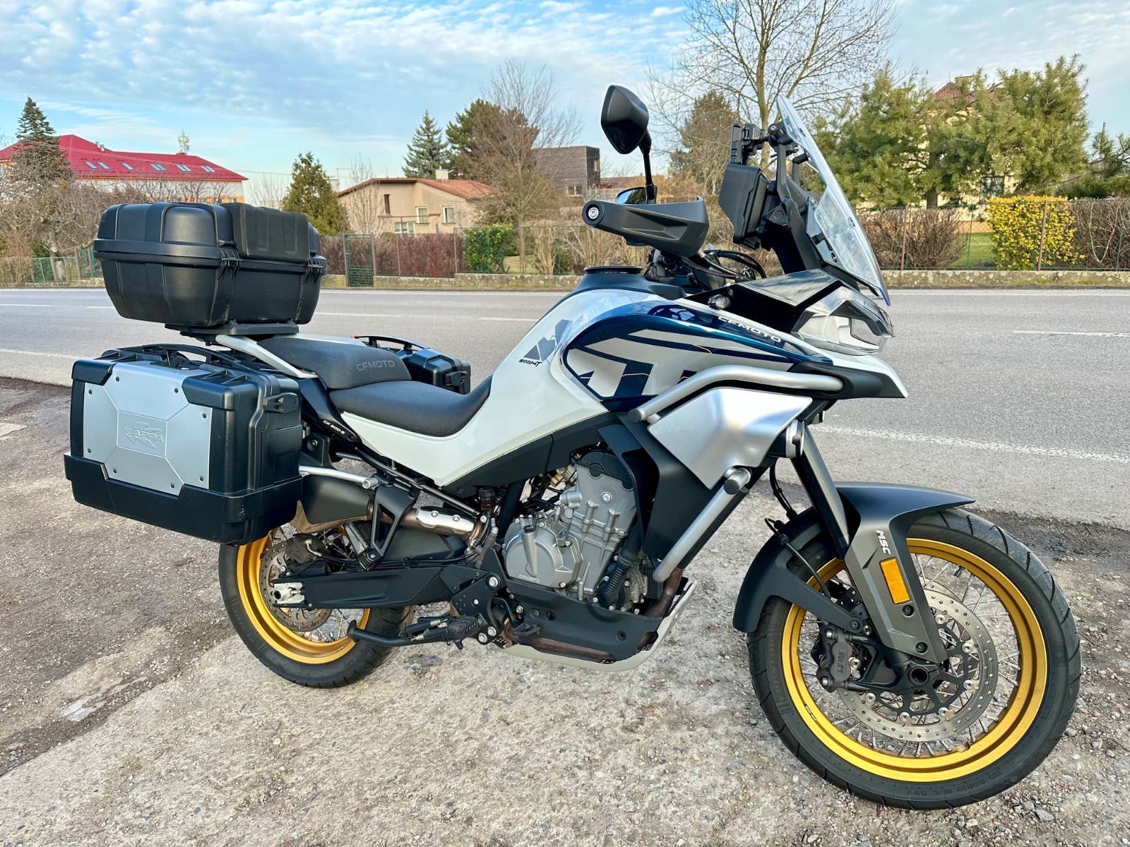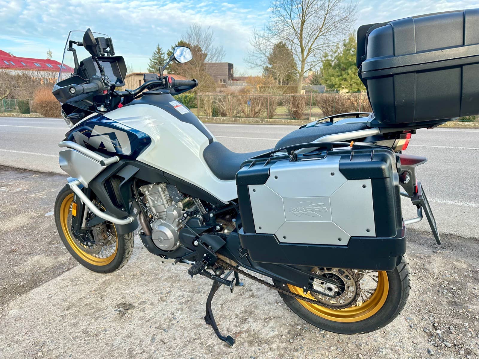 Cf moto 800 mt model Explore, 2024, najeto cca 25 tis km, motocykl po 1. Majiteli, absolutně v super stavu, bez kosmetických vad, nehavarovaný, nové pneumatiky, 2x klíč, 3x kufr, kryt budíků a folie, držák telefonu, možnost úvěru od Essoxu nebo Cofidis