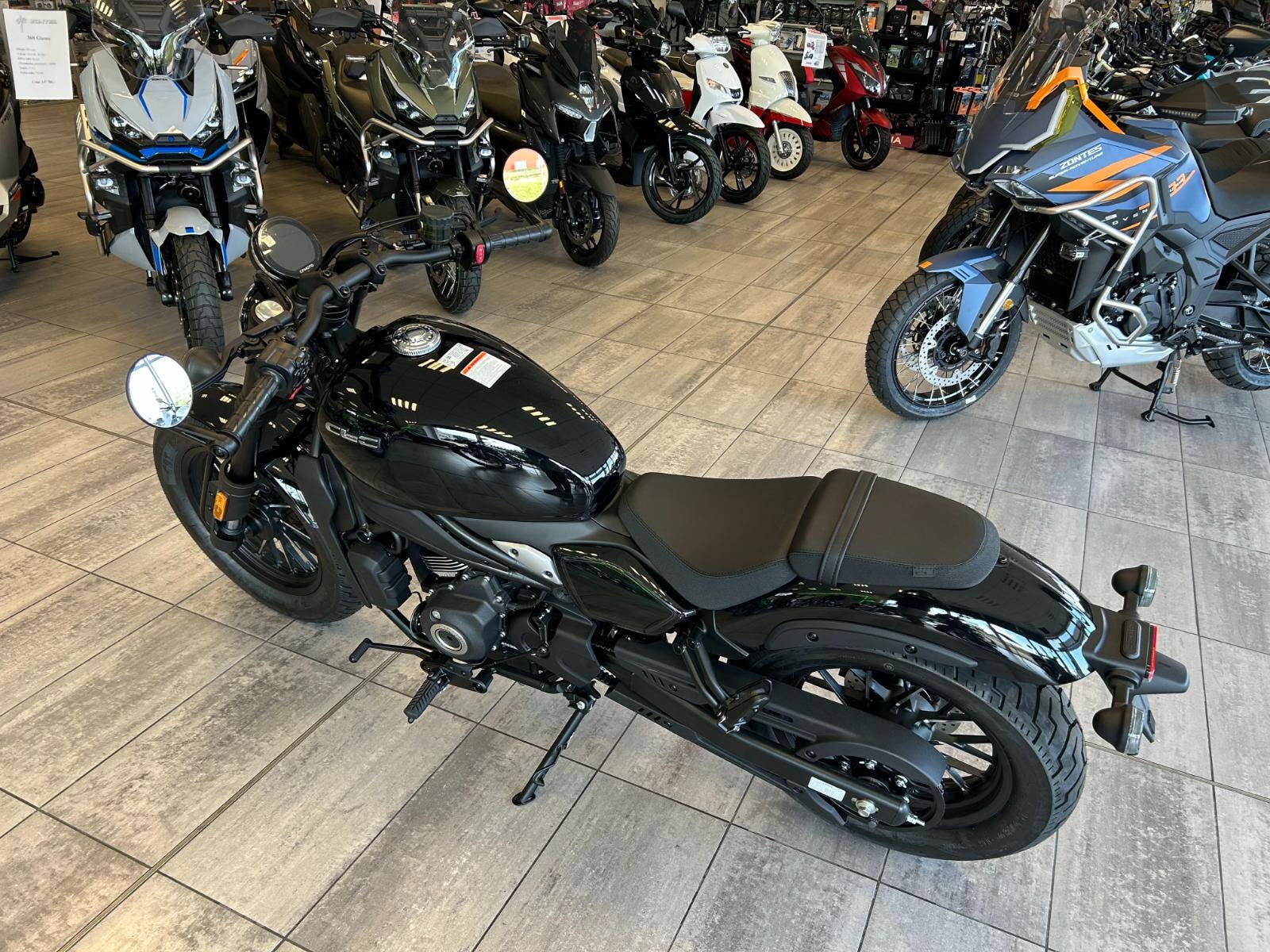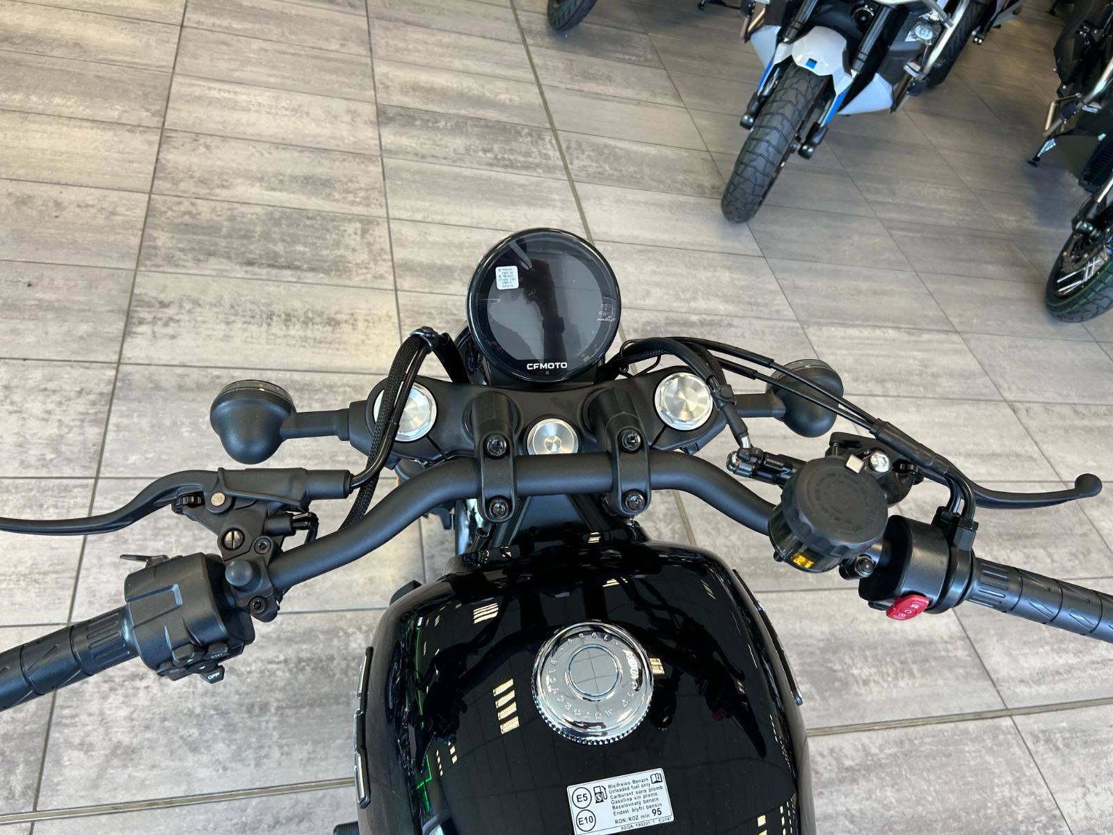 Při použití komunikační jednotky T-Box (u modelů 2025 v základní výbavě!) a navigace v aplikaci CFMOTO Ride dokáže zobrazovat navigaci.