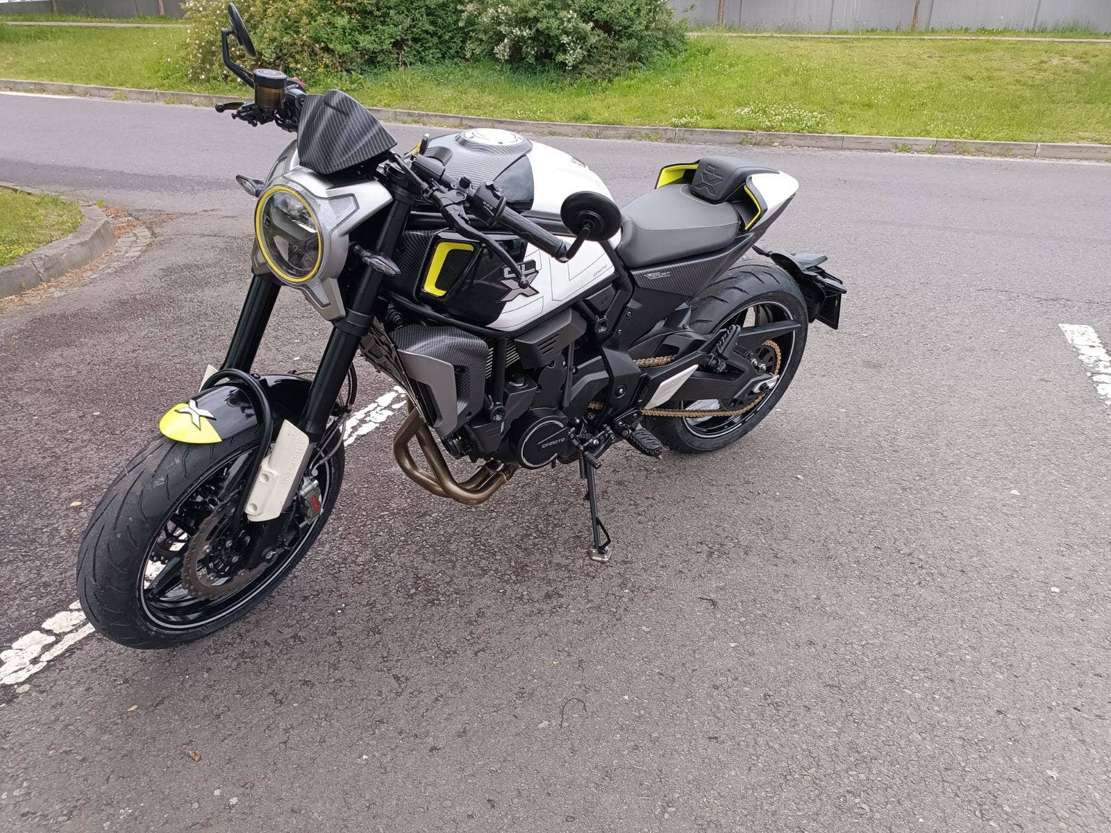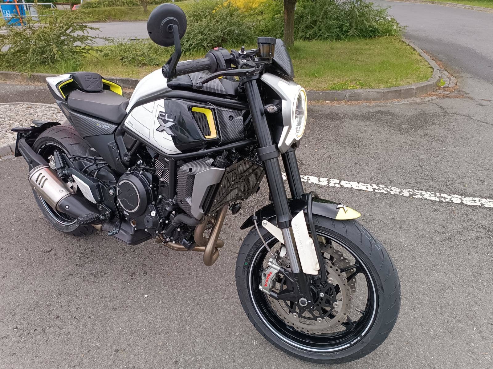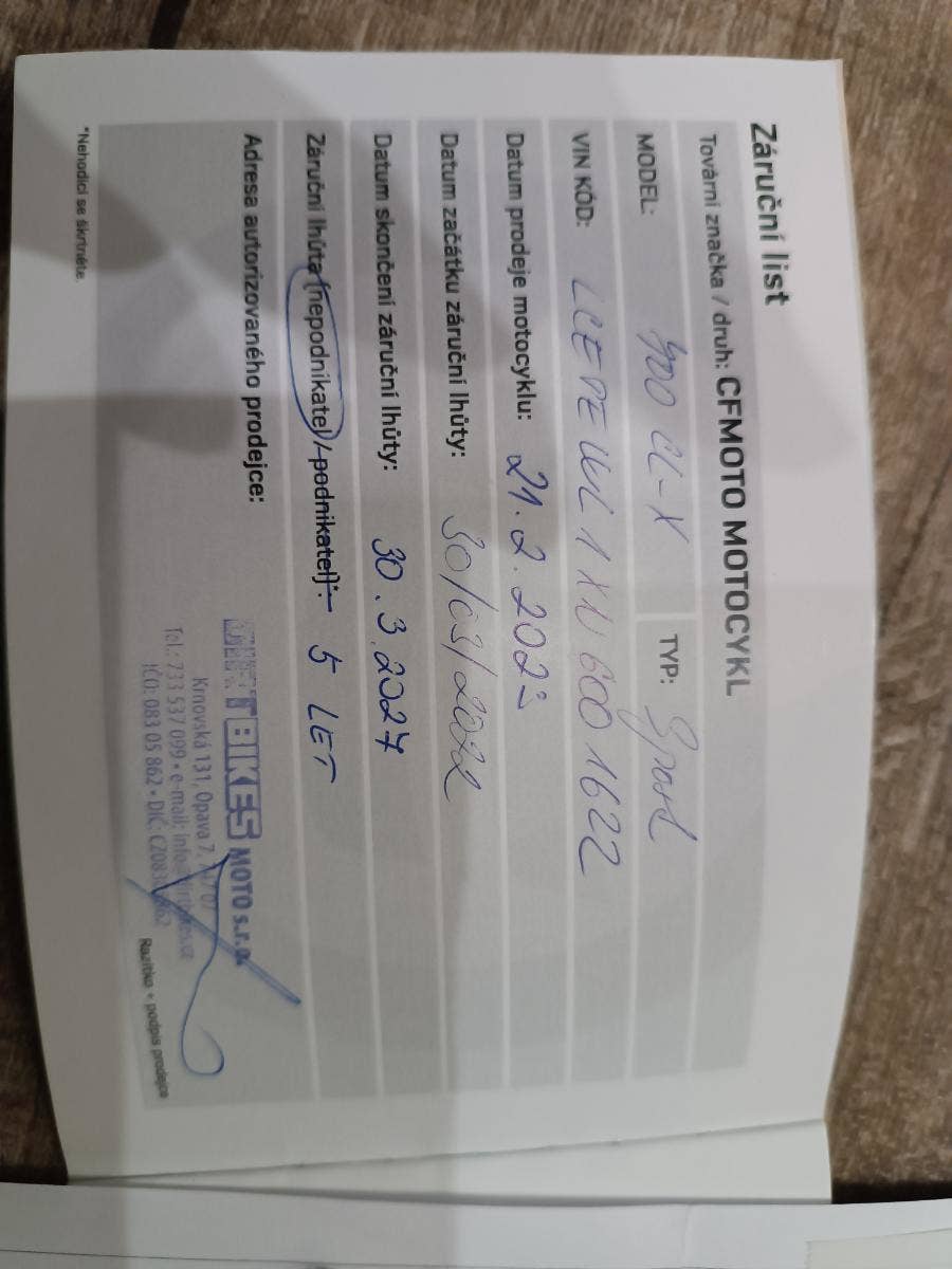 Prodám CFMOTO CL-X 700 Sport, první registrace 2/2023, najeto 13600 km, STK 2/2029, koupeno nové v ČR, po 1. majiteli, tovární záruka - 5 letá, servisováno - servisní knížka, veškeré dokumenty, absolutní TOP stav zánovního stroje, bílá + černá, výkon 51,5 kW (možno elek. seškrtit na 35 kW – skupina A2), 693 ccm, garažováno – žádná oxidace, 2 klíč, 4takt, nízká spotřeba. Nyní po přípravě na sezónu – nové pneu Dunlop, baterie, olej, zadní destičky. Vhodné pro zájemce, který ocení tento špičkový stav zánovního stroje a podstatně nižší cenu než stroje fungl nového. VIN: LCEPEWL1XN6001622. Akční cena 98.000 Kč. Tel: 608944483.