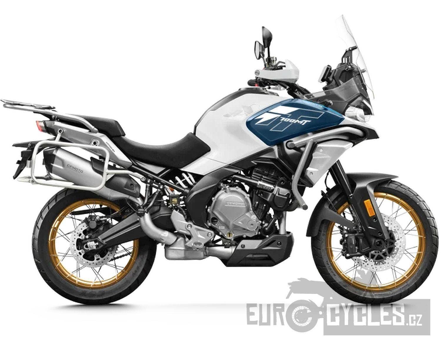Denní jízda za povinnostmi, kilometry a kilometry putování a nebo nacházení zážitků na každém metru cesty. To vše Vám nabízí nová 700MT Adventure. Pokračování přirozené evoluce osvědčeného modelu nyní s více možnostmi mimo asfalt silnic. Pohodlí, jezdecká přirozenost, nenáročnost a spolehlivost. Vlastnosti, které oslovily množství majitelů, jsou stále samozřejmostí. To je ideální univerzál CFMOTO 700MT Adventure. Osvědčený řadový dvouválec známý majitelům 700MT prošel úpravami pro použití v novém modelu. Nepatrné navýšení výkonu není nikterak zásadní. Výraznou změnou je ale úprava průběhu kroutícího momentu, kdy maximum je nyní dosahováno o výrazných 1 250 ot./min. níže. Díky tomu je nová 700MT Adventure lépe využitelná a ovladatelná ve všech situacích. To, že je 700MT Adventure více zaměřená na zážitky mimo pohodlí asfaltu silnic, je jasné při pohledu na vyplétaná kola 19″ vpředu a 17″ vzadu a světlou výšku 190mm. Díky kapacitě palivové nádrže zvýšené na 20l a úspornému motoru lze dosáhnout dojezdu až 400 km. Na barevném 5″ displeji přehledně vidíte vše potřebné pro vaši jízdu. Displej také umožňuje připojit mobilní telefon díky BlueTooth rozhraní pro možnost telefonování a nebo přehrávání hudby. Díky WiFi připojení k vašemu telefonu je možno kontrolovat a provádět aktualizace softwaru motocyklu. Pohodlné sedlo, uvolněná ergonomie a propracovaná aerodynamika zajišťují pohodlí na dlouhé cestě a snižují únavu. 700MT Adventure je standardně vybaveno komunikační jednotkou T-Box, která zajišťuje přenos dat z motocyklu do mobilní aplikace CFMOTO Ride. Díky tomu máte k dispozici informaci o poloze a stavu motocyklu. V aplikaci také naleznete záznam vašich jízd s promítnutím na mapě a detailní údaje každé jízdy (vzdálenost, dobu jízdy, průměrnou rychlost, maximální rychlost a další).