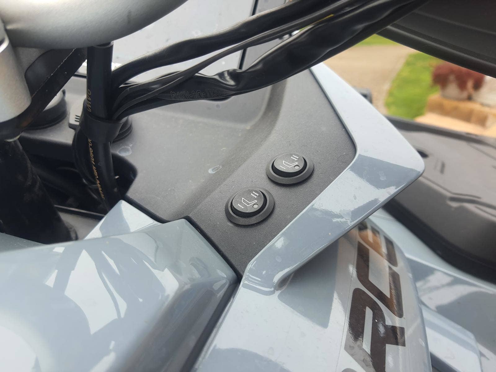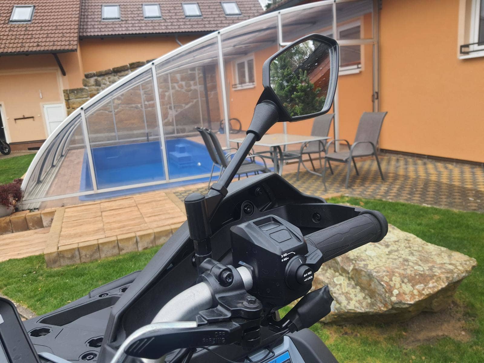 Přístroje - digitální ukazatel, rychloměr, počítadlo kilometrů, denní počet kilometrů, otáčkoměr, ukazatel teploty chladicí kapaliny, hodiny, motohodiny, ukazatel řazení, palivoměr, signalizace přehřátí, signalizace stavu baterie, ukazatel jízdního režimu, DC zásuvka