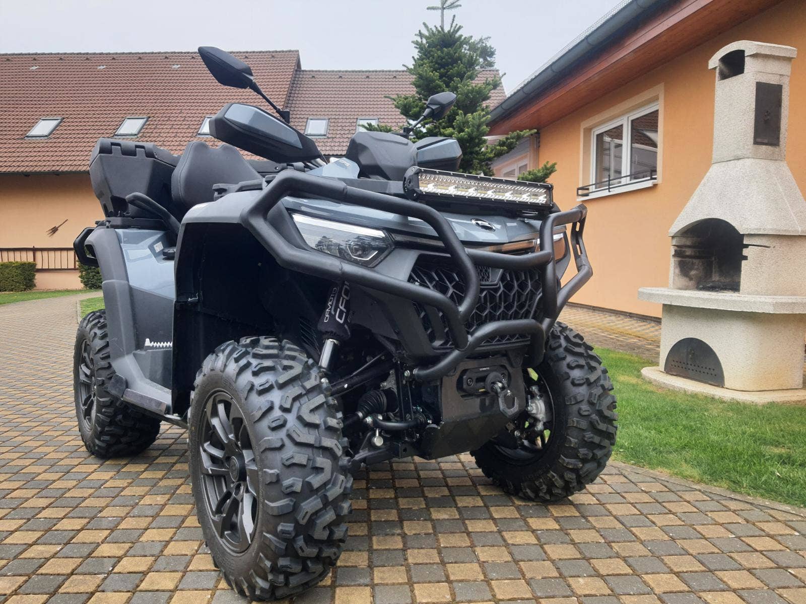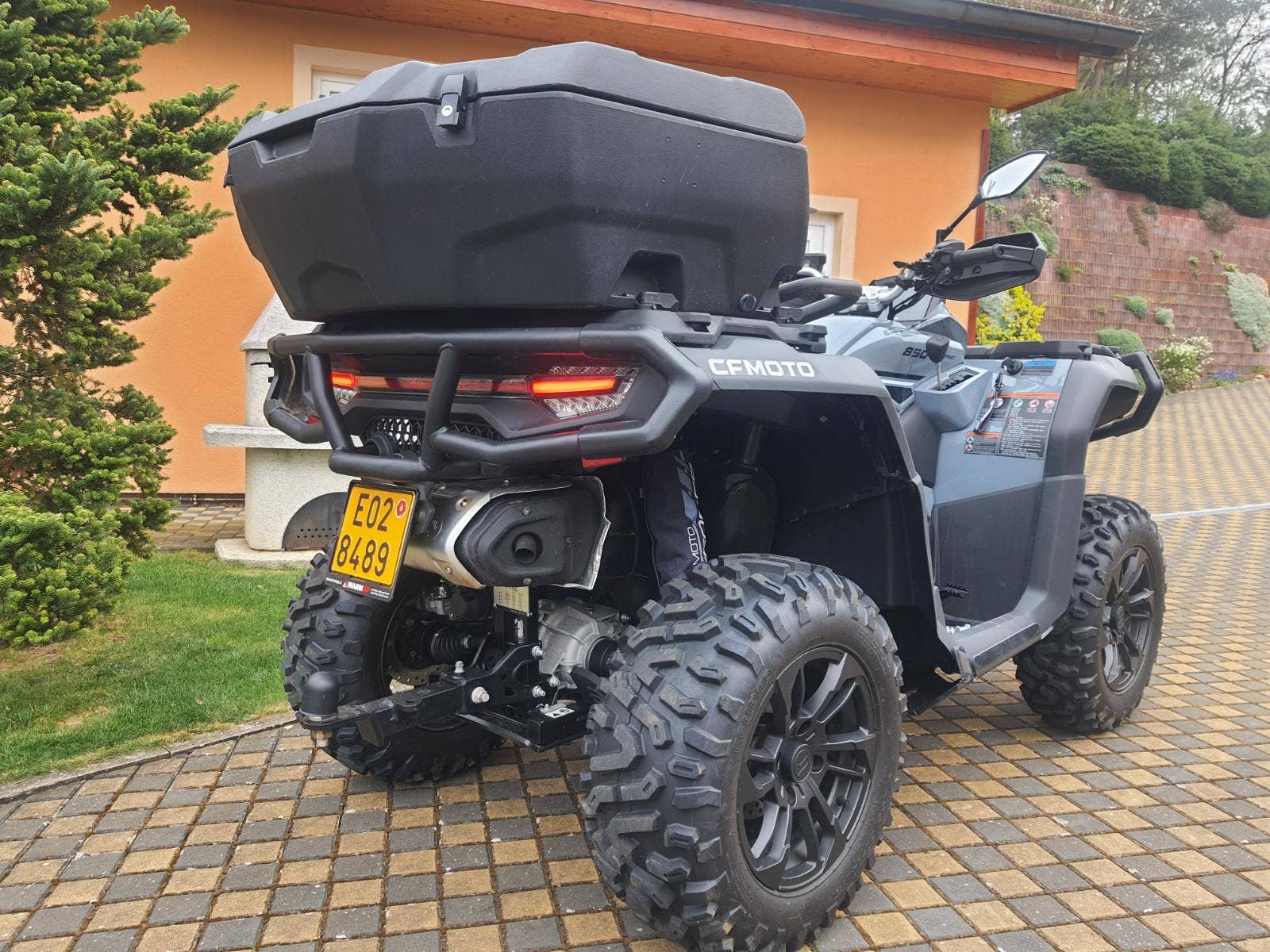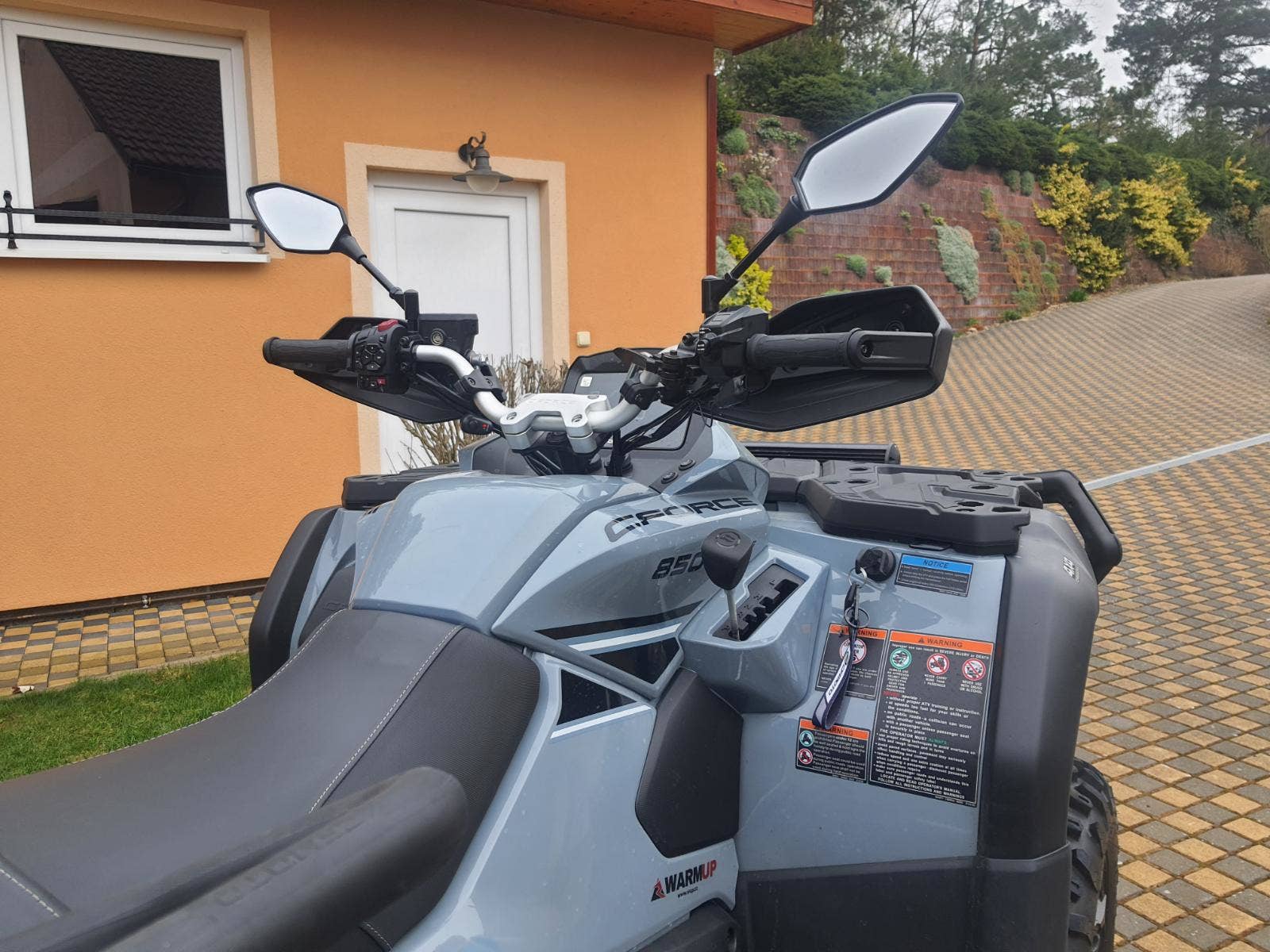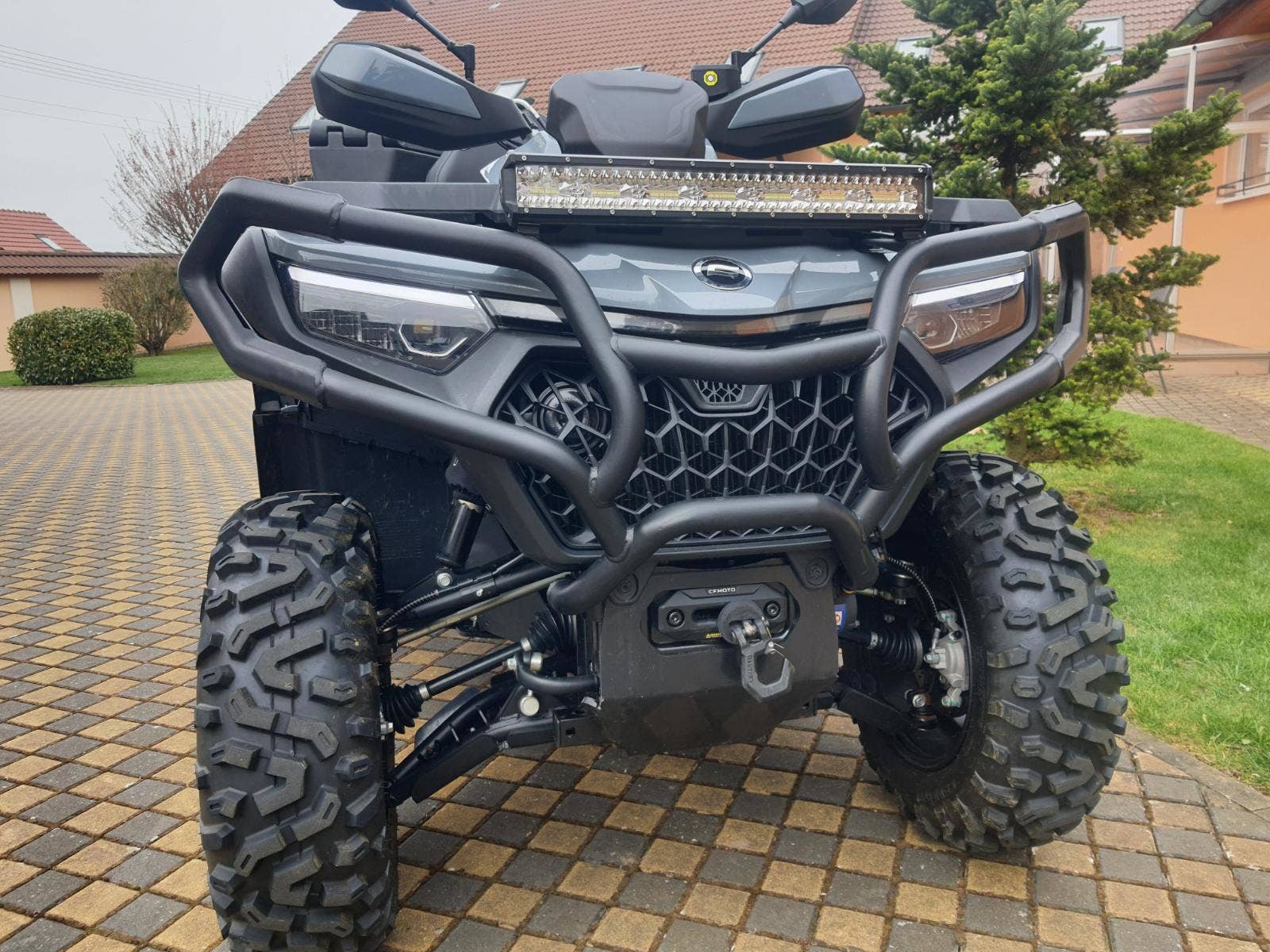 Stav nového stroje! najeto pouze 770 KM! Cena nového stroje včetně doplňků byla 319 000 Kč - doplňky v hodnotě cca 60 000 Kč! Datum 1. registrace 30.10.2024! Čtyřkolka v pětileté tovární záruce do 24.10.2029. Koupeno nové v ČR- WARMUP LIBEREC. 2 x klíč, servisní knížka, po 2. servisní prohlídce v 750 km - 26.1.2026! Dokoupená spousta originál výbavy! Zadní box, přední + zadní ochranný rám, led přídavná světelná rampa, vyhřívané rukojeti + plyn, vyhřívaná sedačka řidiče + spolujezdce, 2 stupně vyhřívání, naviják, kompletní ochrana spodní části čtyřkolky + ramen kol, tažné zařízení, kryty rukojetí, ochranná návleky tlumičů CF MOTO. Otevření na plný výkon!