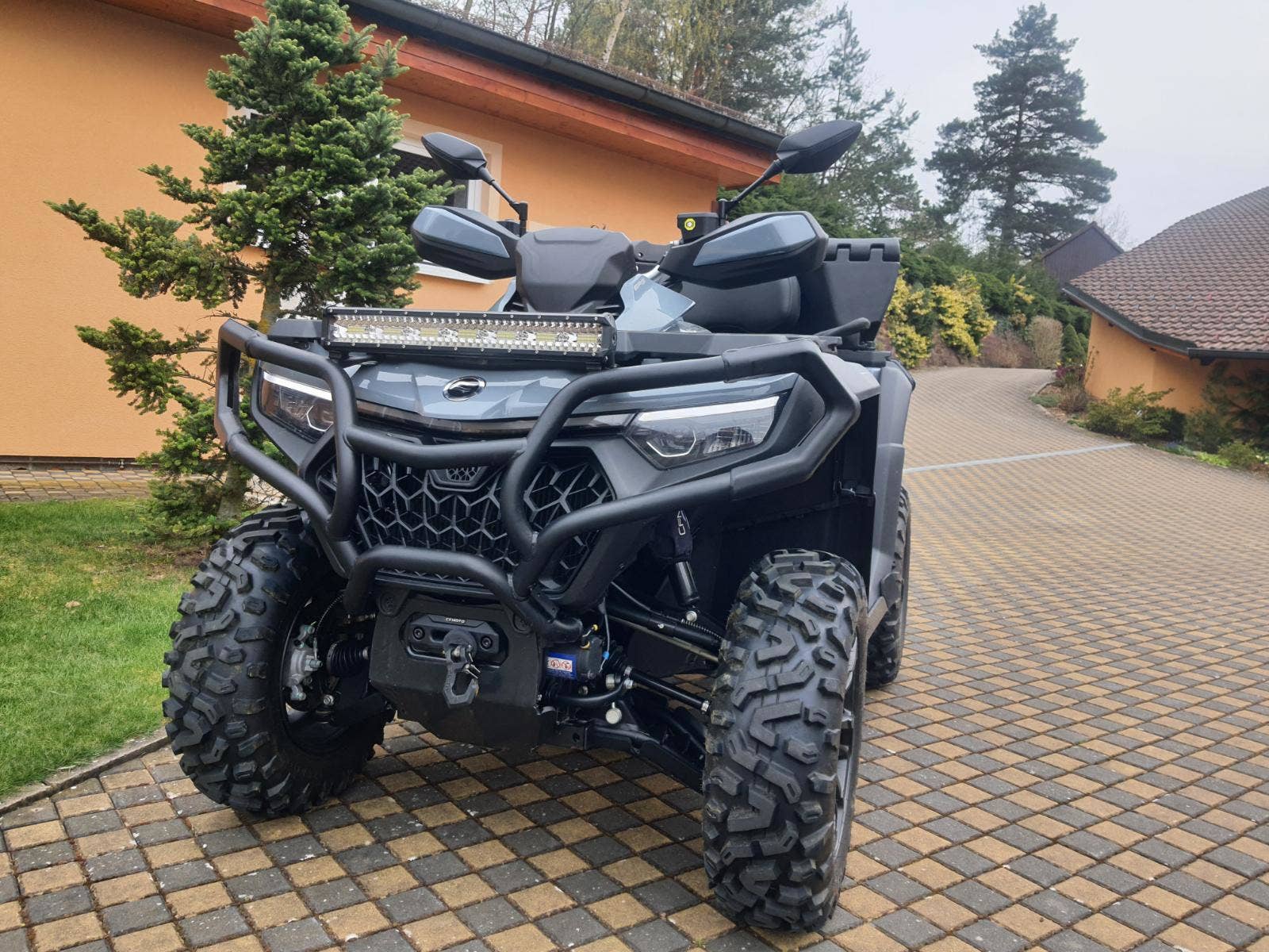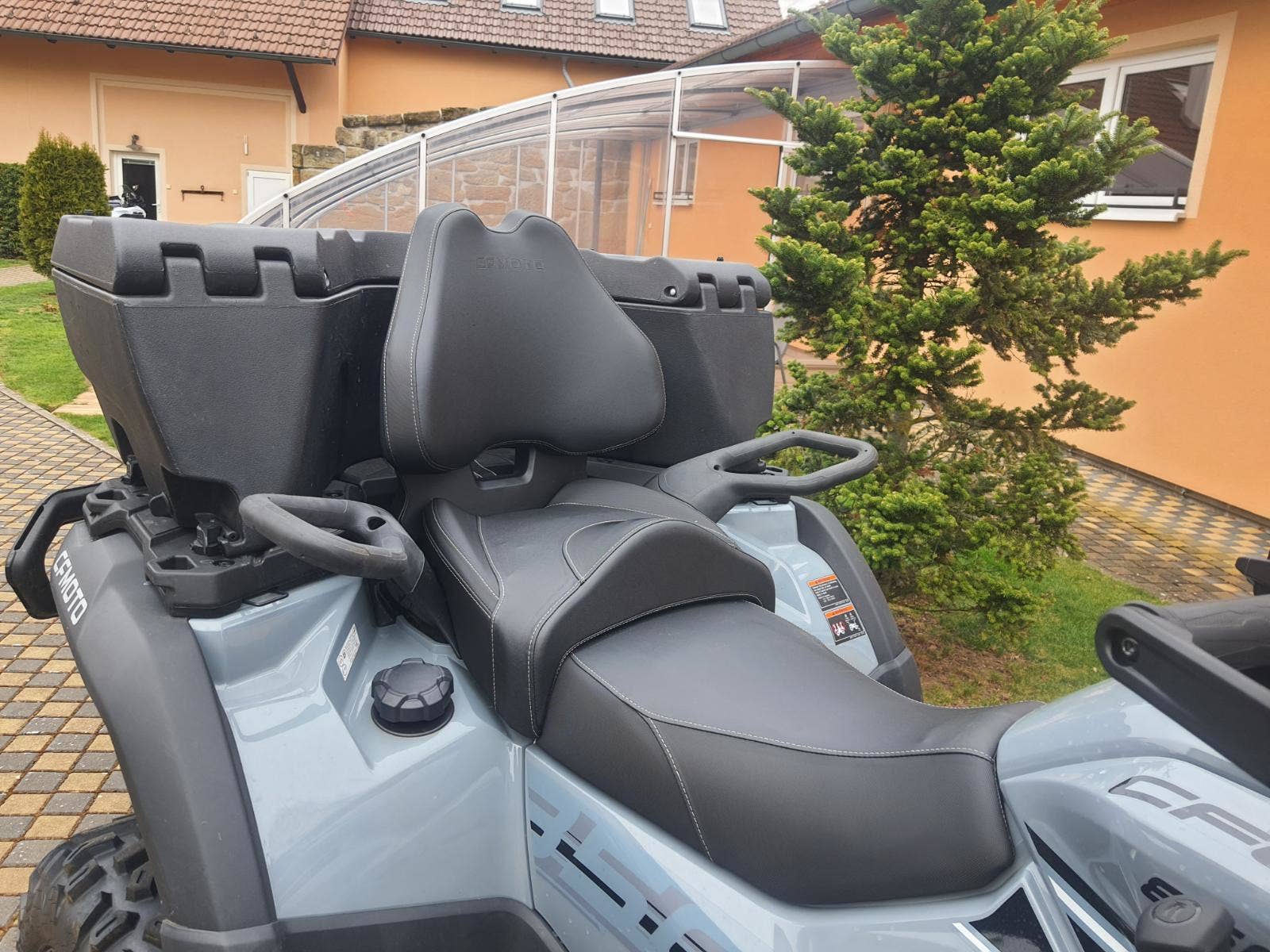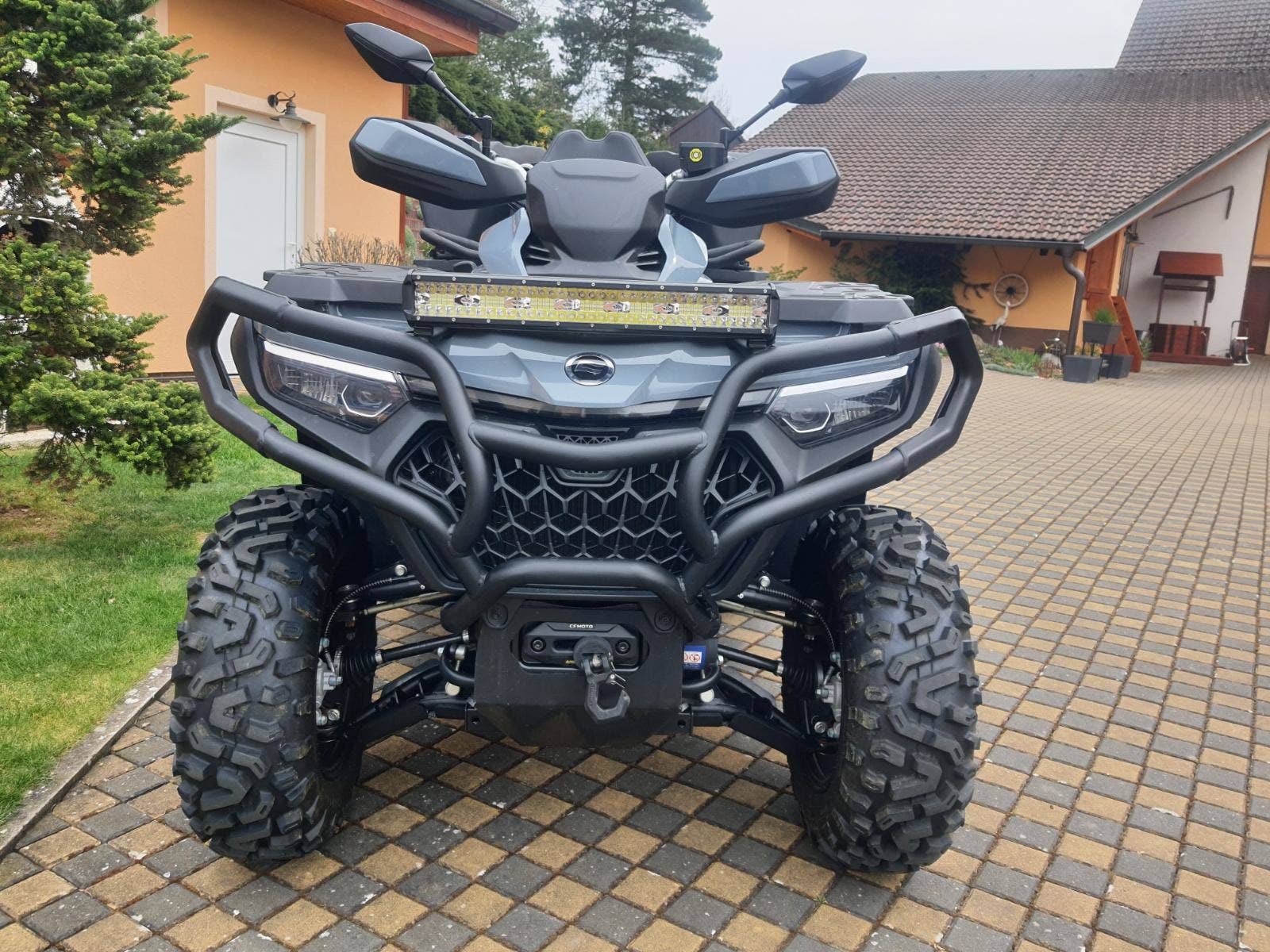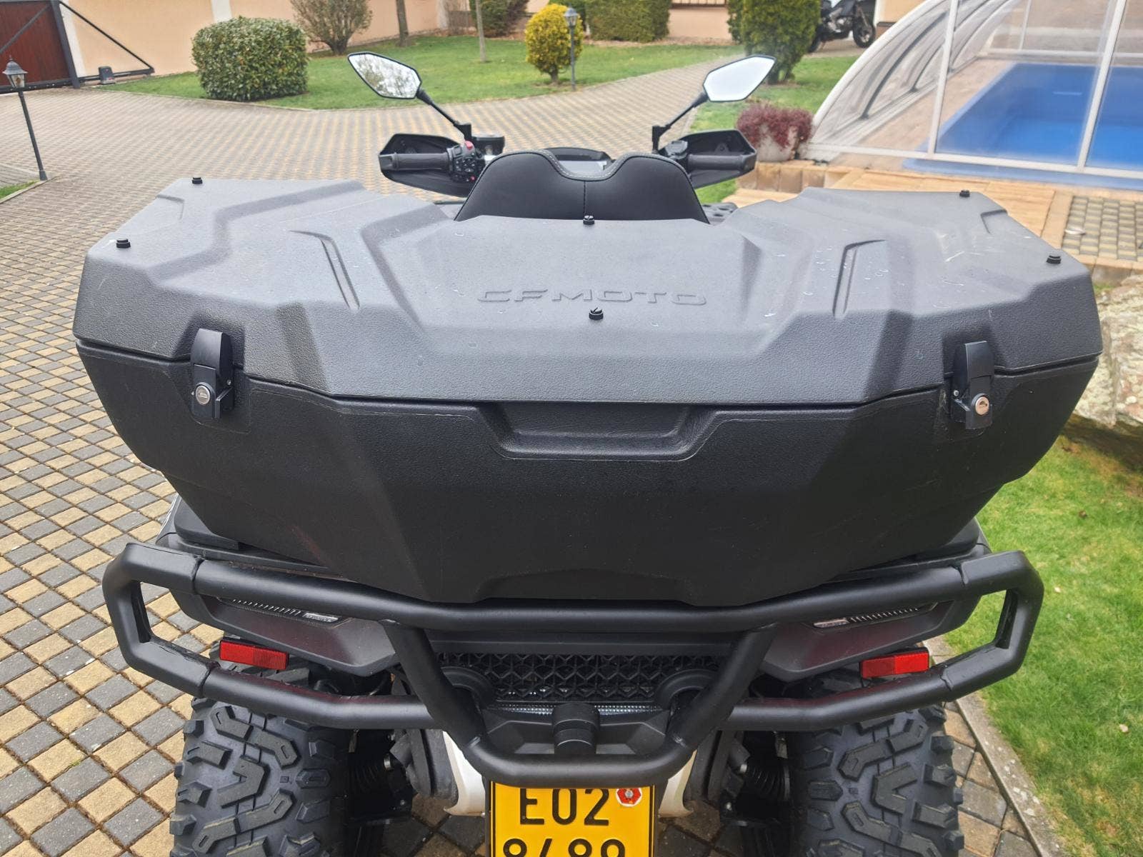 Stav nového stroje! najeto pouze 770 KM! Cena nového stroje včetně doplňků byla 319 000 Kč - doplňky v hodnotě cca 60 000 Kč! Datum 1. registrace 30.10.2024! Čtyřkolka v pětileté tovární záruce do 24.10.2029. Koupeno nové v ČR- WARMUP LIBEREC. 2 x klíč, servisní knížka, po 2. servisní prohlídce v 750 km - 26.1.2026! Dokoupená spousta originál výbavy! Zadní box, přední + zadní ochranný rám, led přídavná světelná rampa, vyhřívané rukojeti + plyn, vyhřívaná sedačka řidiče + spolujezdce, 2 stupně vyhřívání, naviják, kompletní ochrana spodní části čtyřkolky + ramen kol, tažné zařízení, kryty rukojetí, ochranná návleky tlumičů CF MOTO. Otevření na plný výkon!