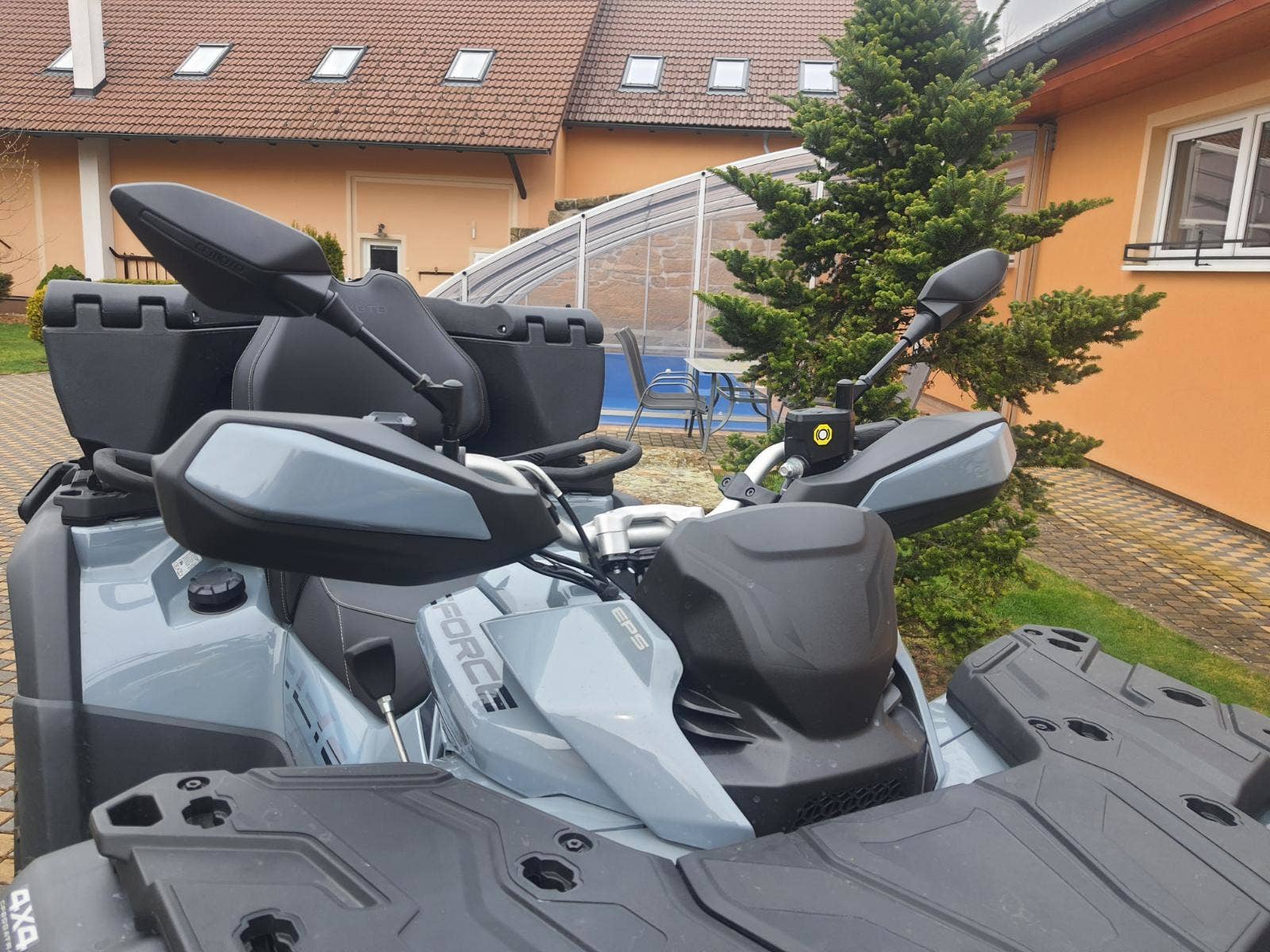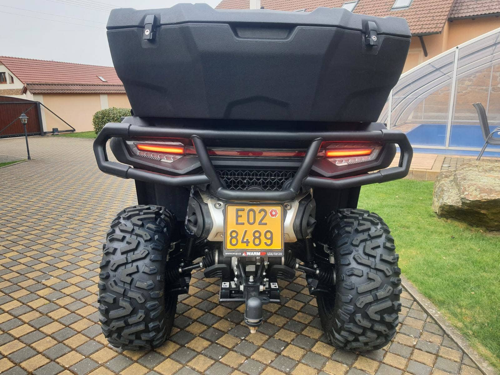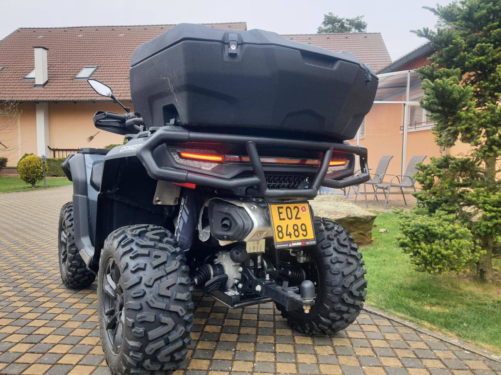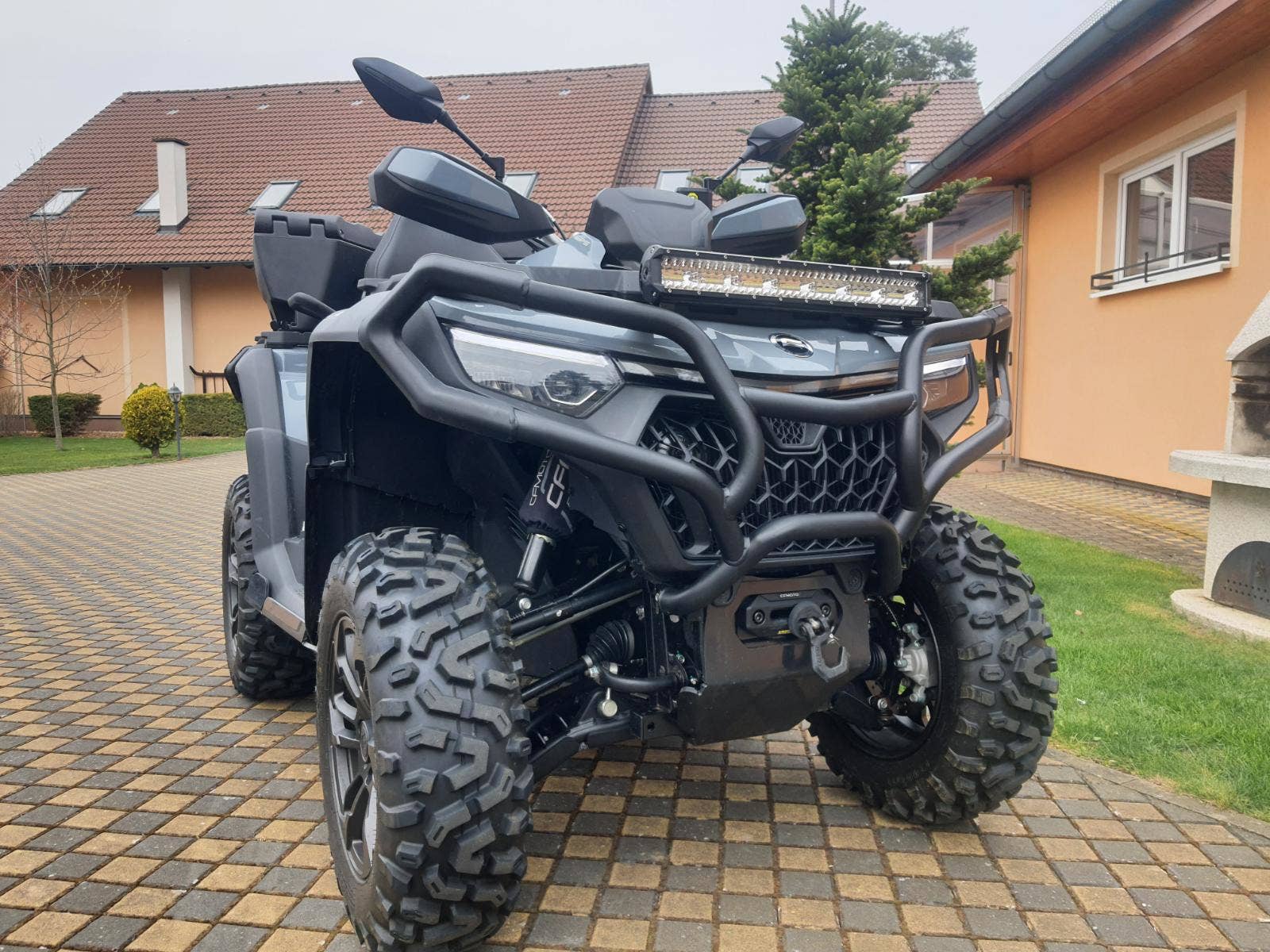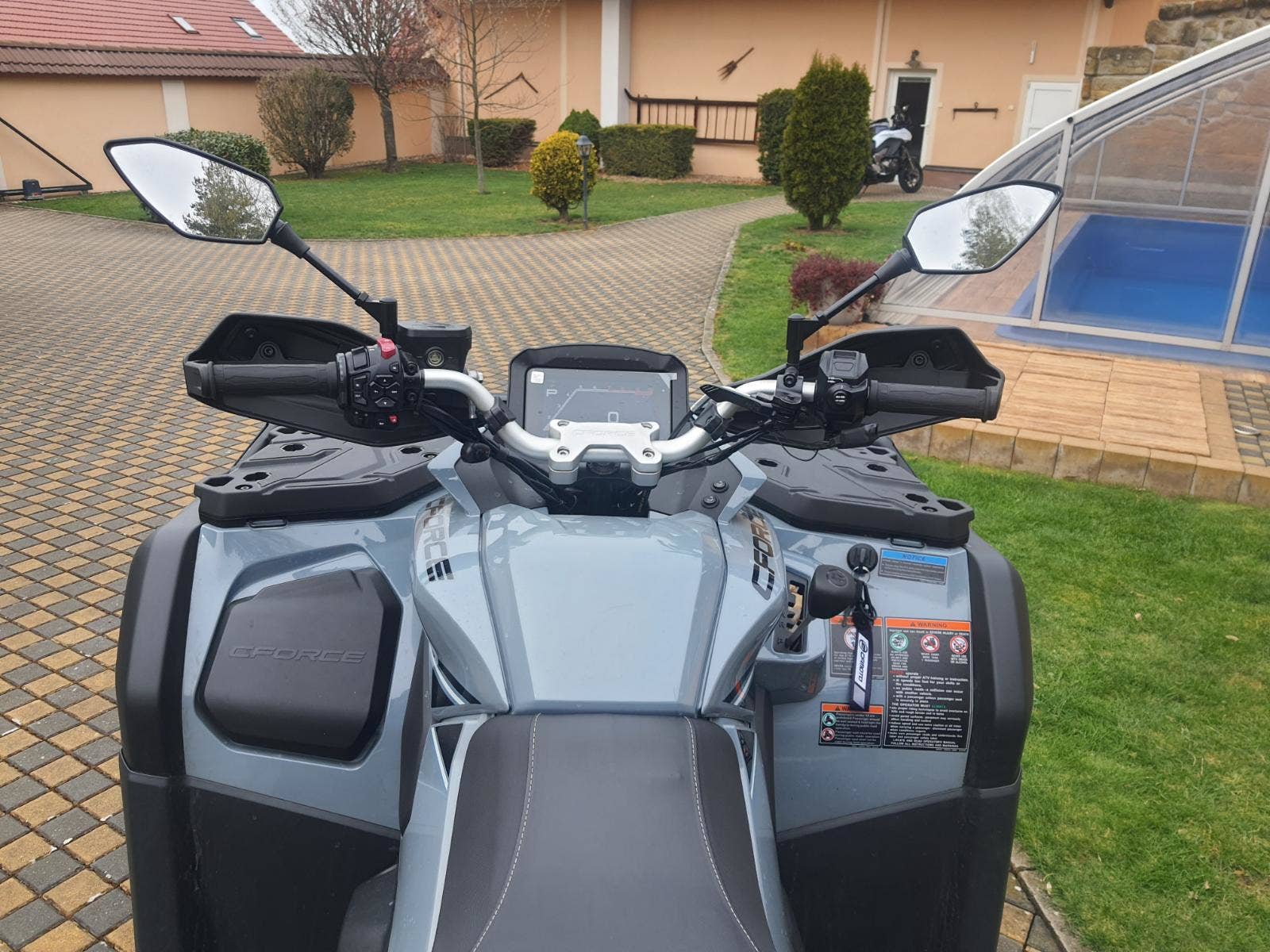 Stav nového stroje! najeto pouze 770 KM! Cena nového stroje včetně doplňků byla 319 000 Kč - doplňky v hodnotě cca 60 000 Kč! Datum 1. registrace 30.10.2024! Čtyřkolka v pětileté tovární záruce do 24.10.2029. Koupeno nové v ČR- WARMUP LIBEREC. 2 x klíč, servisní knížka, po 2. servisní prohlídce v 750 km - 26.1.2026! Dokoupená spousta originál výbavy! Zadní box, přední + zadní ochranný rám, led přídavná světelná rampa, vyhřívané rukojeti + plyn, vyhřívaná sedačka řidiče + spolujezdce, 2 stupně vyhřívání, naviják, kompletní ochrana spodní části čtyřkolky + ramen kol, tažné zařízení, kryty rukojetí, ochranná návleky tlumičů CF MOTO. Otevření na plný výkon!