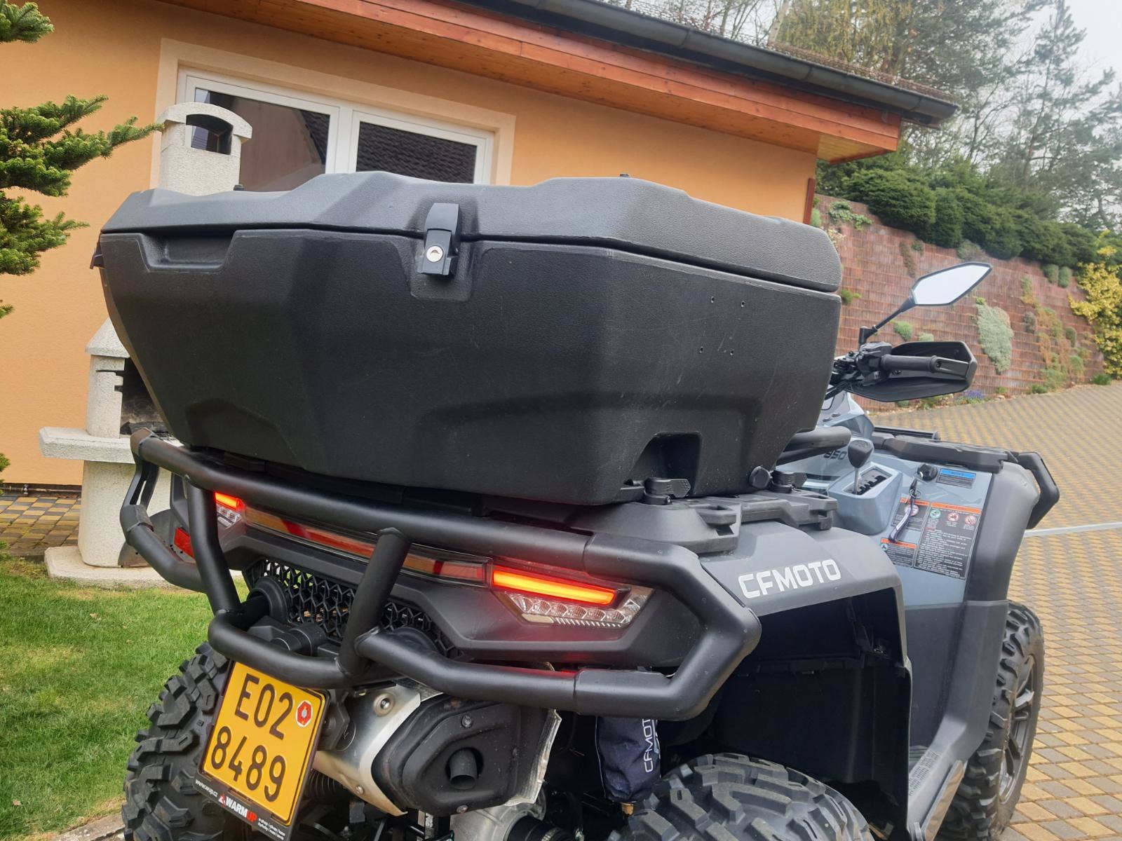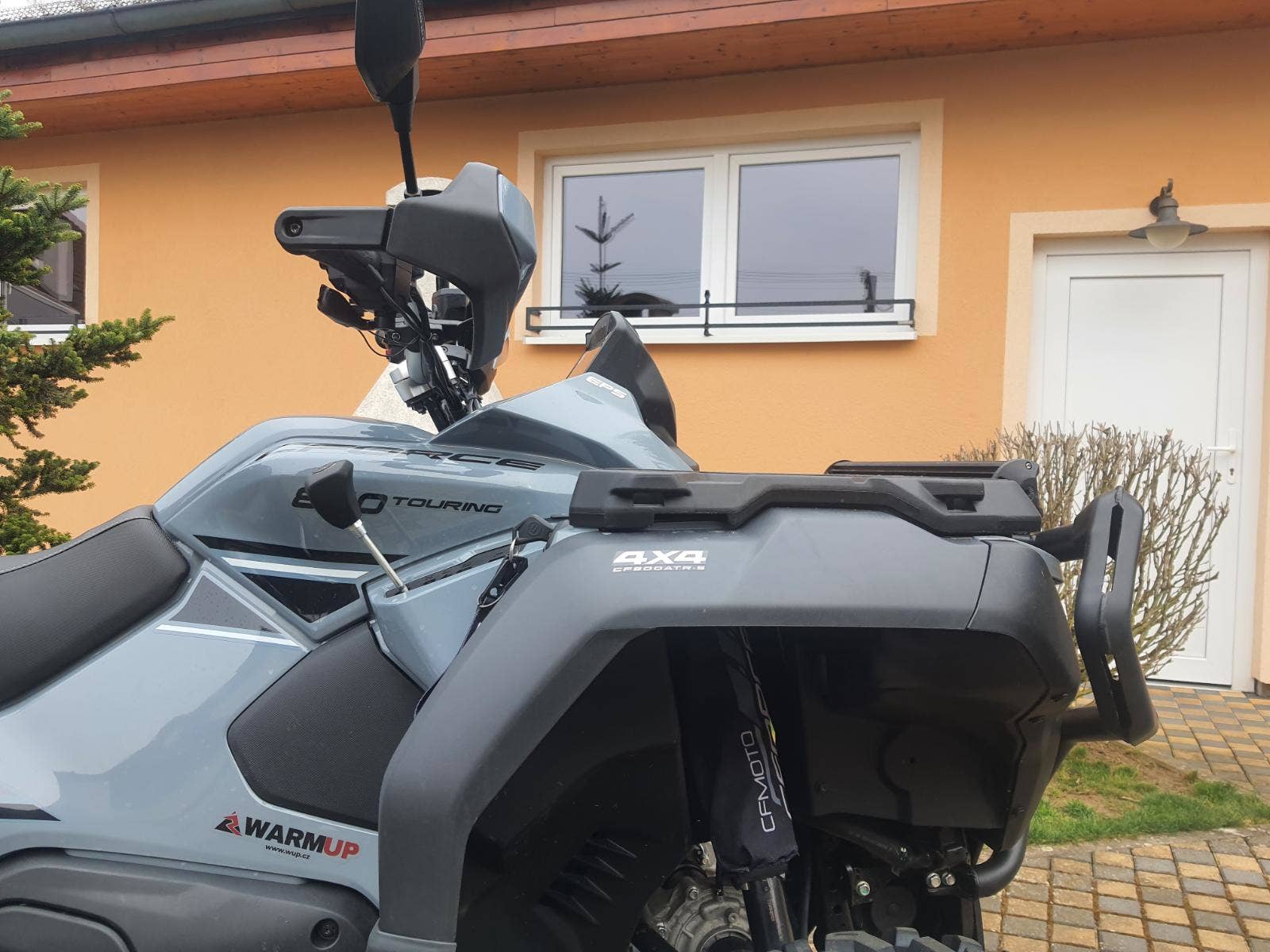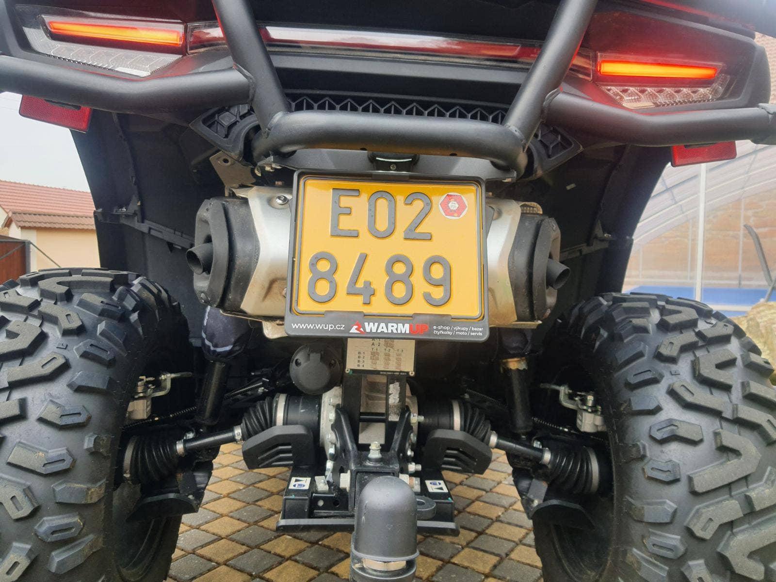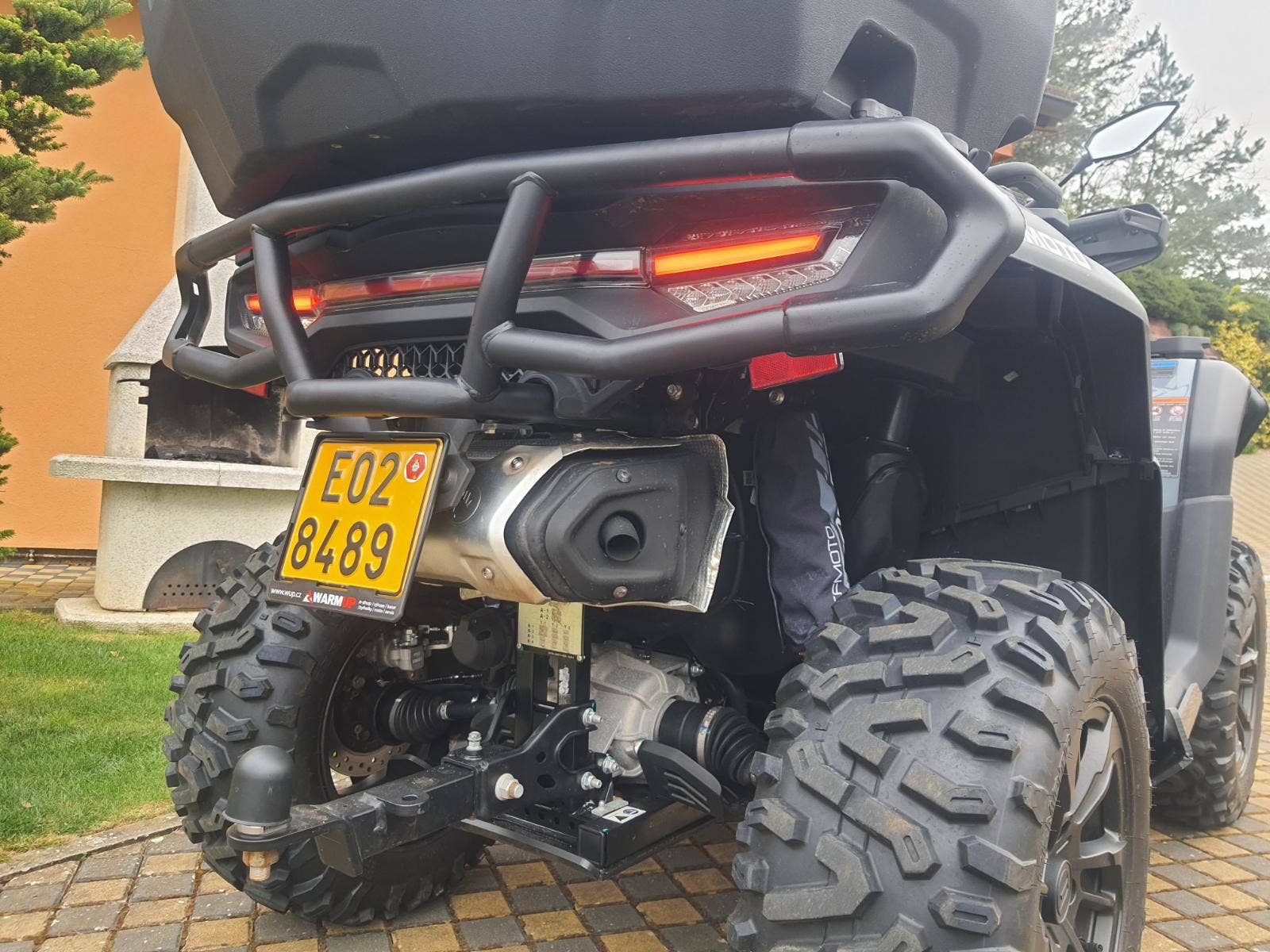 Stav nového stroje! najeto pouze 770 KM! Cena nového stroje včetně doplňků byla 319 000 Kč - doplňky v hodnotě cca 60 000 Kč! Datum 1. registrace 30.10.2024! Čtyřkolka v pětileté tovární záruce do 24.10.2029. Koupeno nové v ČR- WARMUP LIBEREC. 2 x klíč, servisní knížka, po 2. servisní prohlídce v 750 km - 26.1.2026! Dokoupená spousta originál výbavy! Zadní box, přední + zadní ochranný rám, led přídavná světelná rampa, vyhřívané rukojeti + plyn, vyhřívaná sedačka řidiče + spolujezdce, 2 stupně vyhřívání, naviják, kompletní ochrana spodní části čtyřkolky + ramen kol, tažné zařízení, kryty rukojetí, ochranná návleky tlumičů CF MOTO. Otevření na plný výkon!