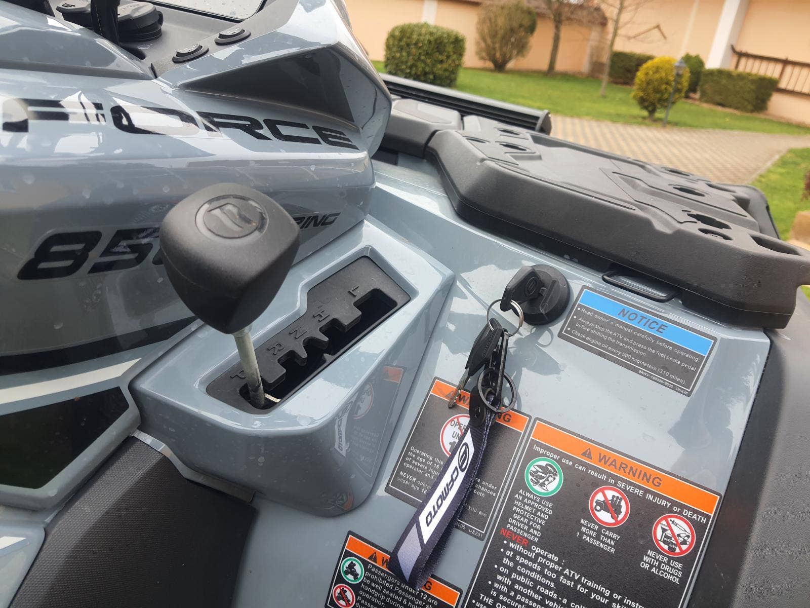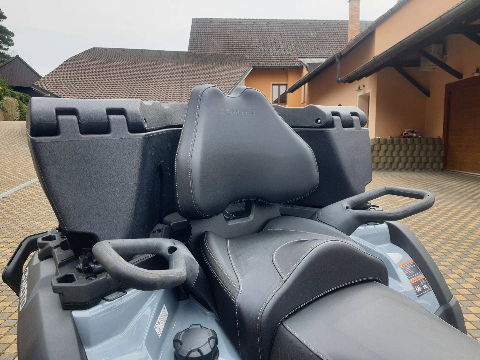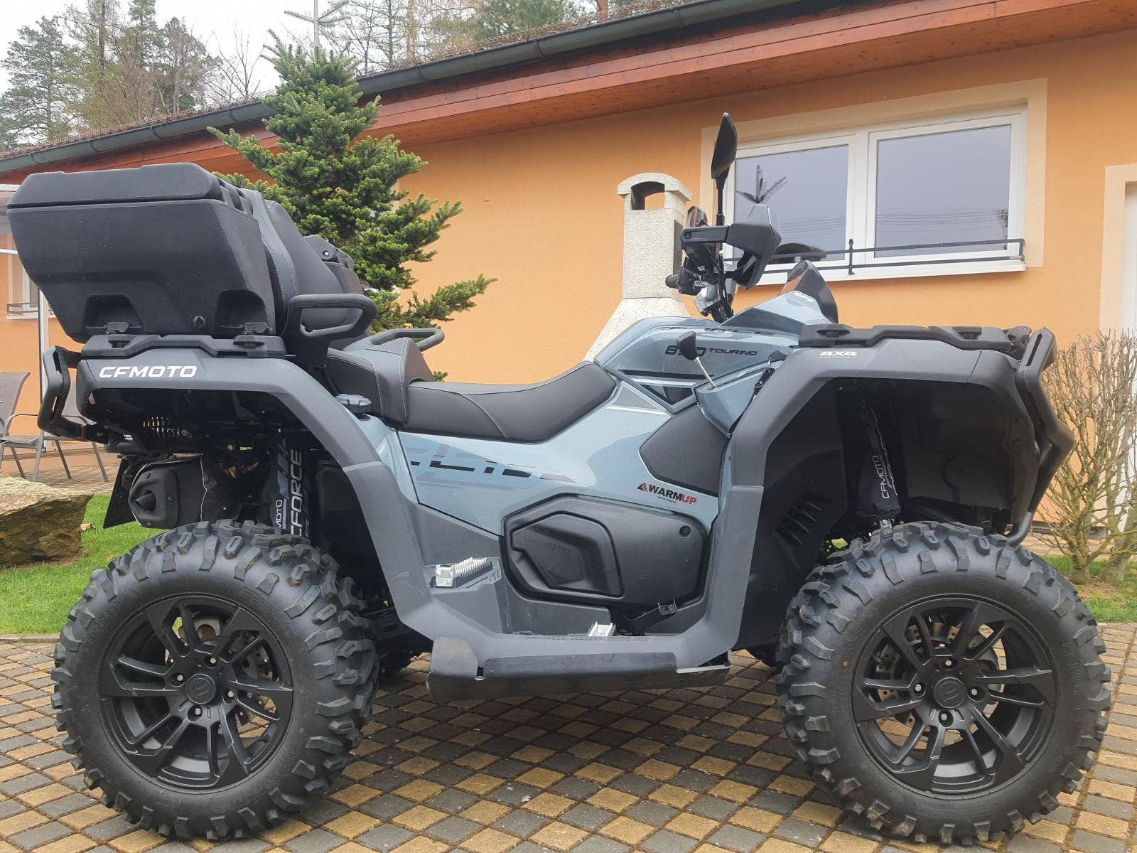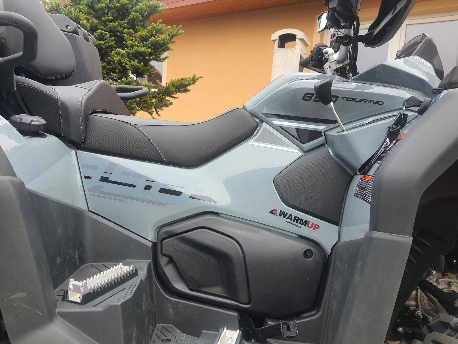 Stav nového stroje! najeto pouze 770 KM! Cena nového stroje včetně doplňků byla 319 000 Kč - doplňky v hodnotě cca 60 000 Kč! Datum 1. registrace 30.10.2024! Čtyřkolka v pětileté tovární záruce do 24.10.2029. Koupeno nové v ČR- WARMUP LIBEREC. 2 x klíč, servisní knížka, po 2. servisní prohlídce v 750 km - 26.1.2026! Dokoupená spousta originál výbavy! Zadní box, přední + zadní ochranný rám, led přídavná světelná rampa, vyhřívané rukojeti + plyn, vyhřívaná sedačka řidiče + spolujezdce, 2 stupně vyhřívání, naviják, kompletní ochrana spodní části čtyřkolky + ramen kol, tažné zařízení, kryty rukojetí, ochranná návleky tlumičů CF MOTO. Otevření na plný výkon!