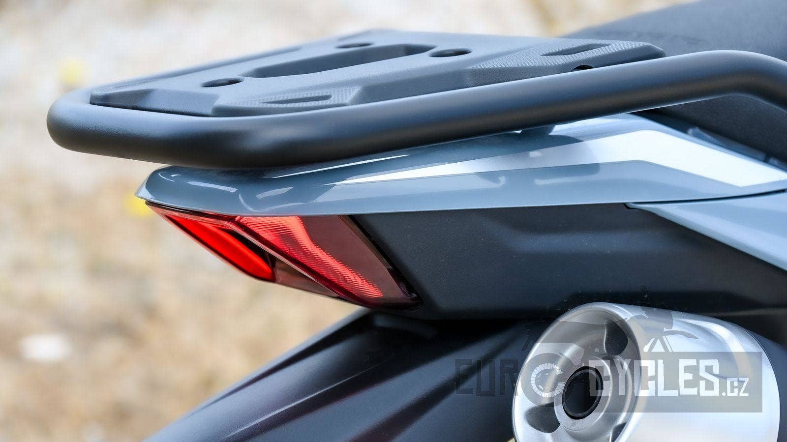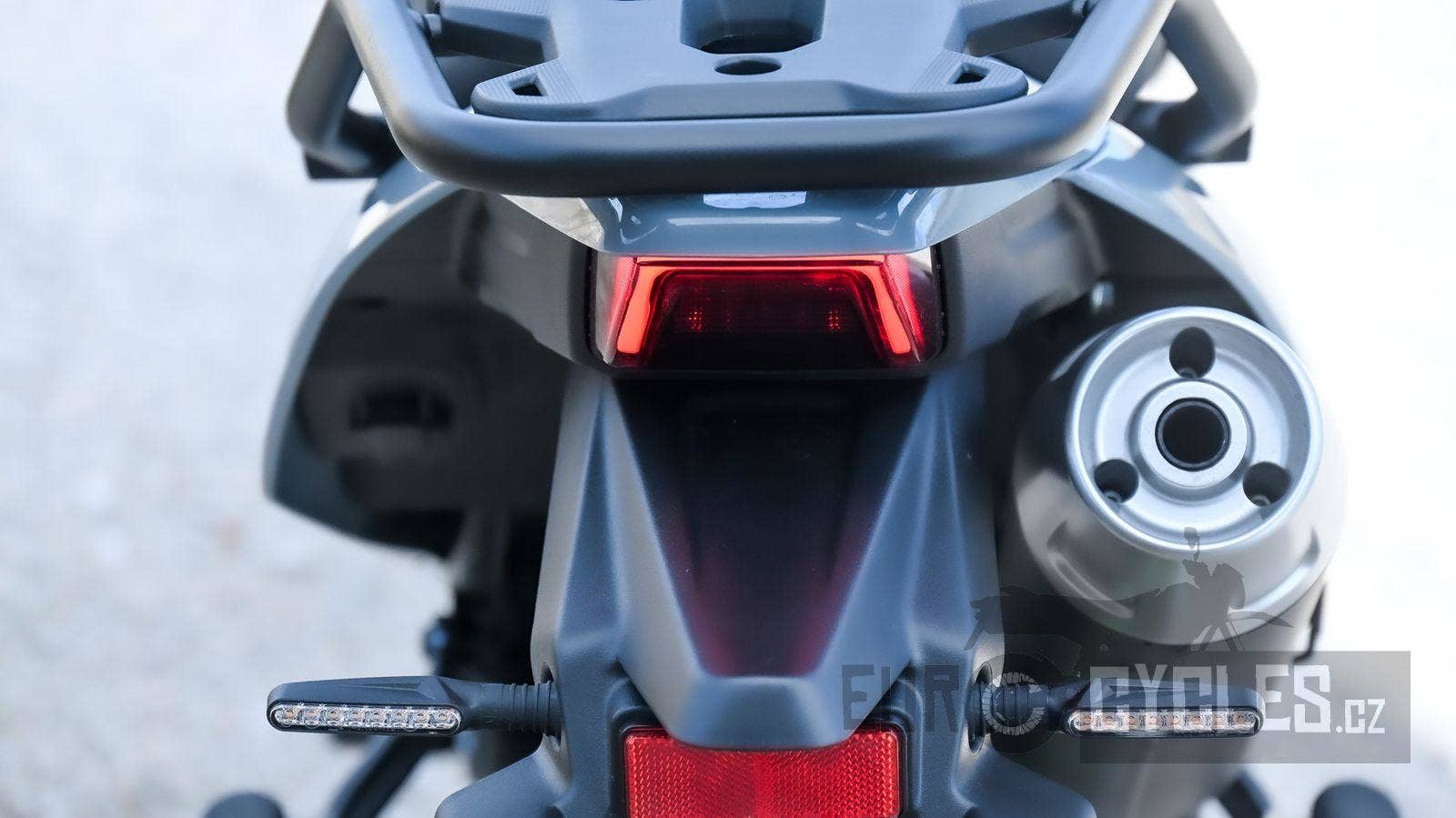 Výrazný LED přední světlomet zajišťuje vysokou svítivost a moderní vzhled. Design motocyklu kombinuje atraktivní linie s funkčností a praktičností pro každodenní použití.