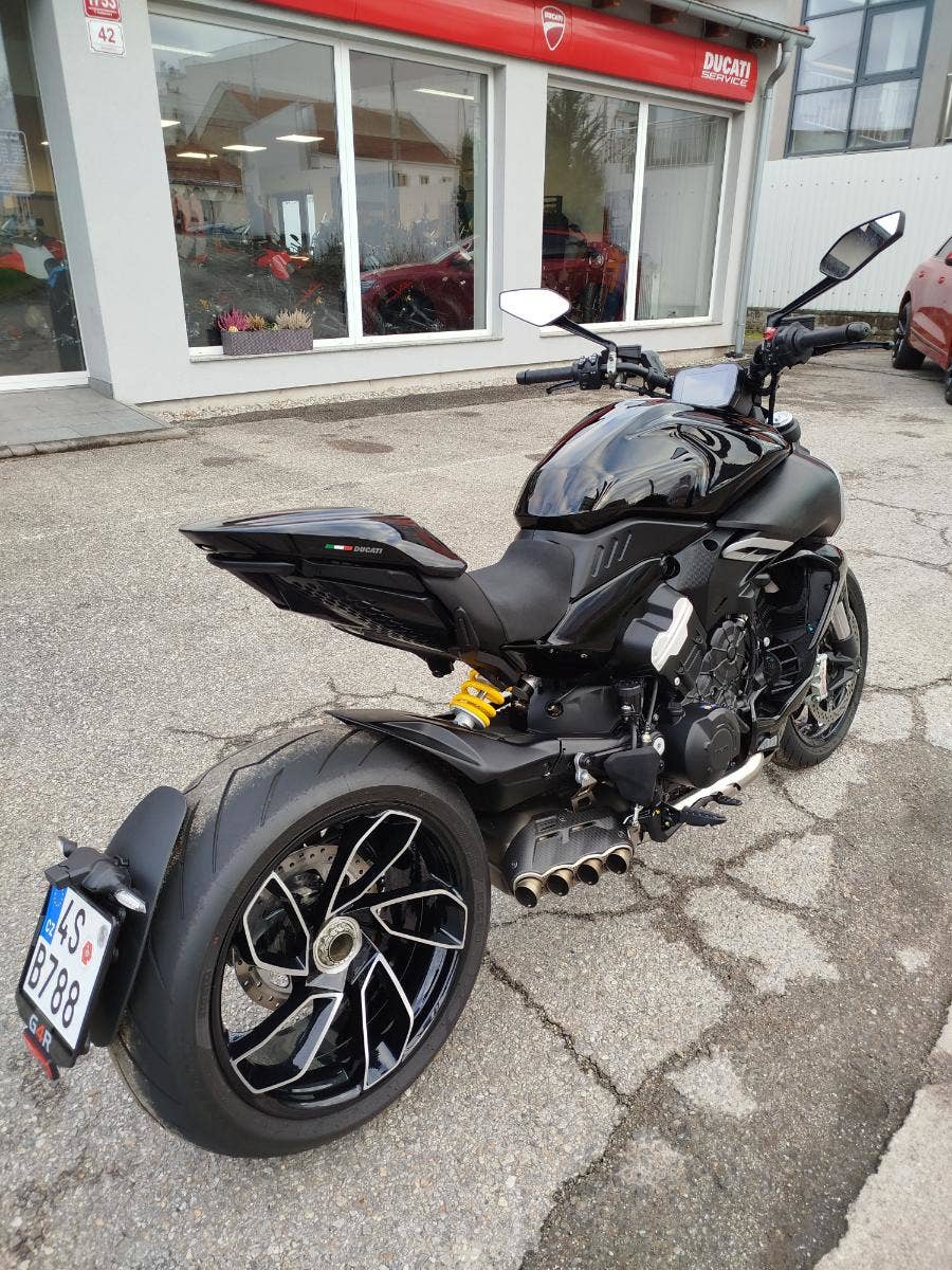 Nabízíme k prodeji naprosto nádhernou Ducati Diavel V4, rok: 2024, najeto: 2 459 km. Motocykl zakoupen jako nový v ČR v autorizovaném dealerství Ducati. Pouze jeden majitel, 2x klíče, elektronická servisní kniha, uživatelský manuál. Pouze garanční servis v autorizovaném prostředí. V ceně motocyklu originální laděný výfuk Akrapovič s pořizovací cenou přesahující 160.000,– Kč. Úžasný zvuk, nárůst výkonu, snížení váhy. Motocykl v zánovní stavu, bez známek užívání. K motorce samozřejmě původní originální výfuk, montážní stojan a originální opěrka spolujezdce.