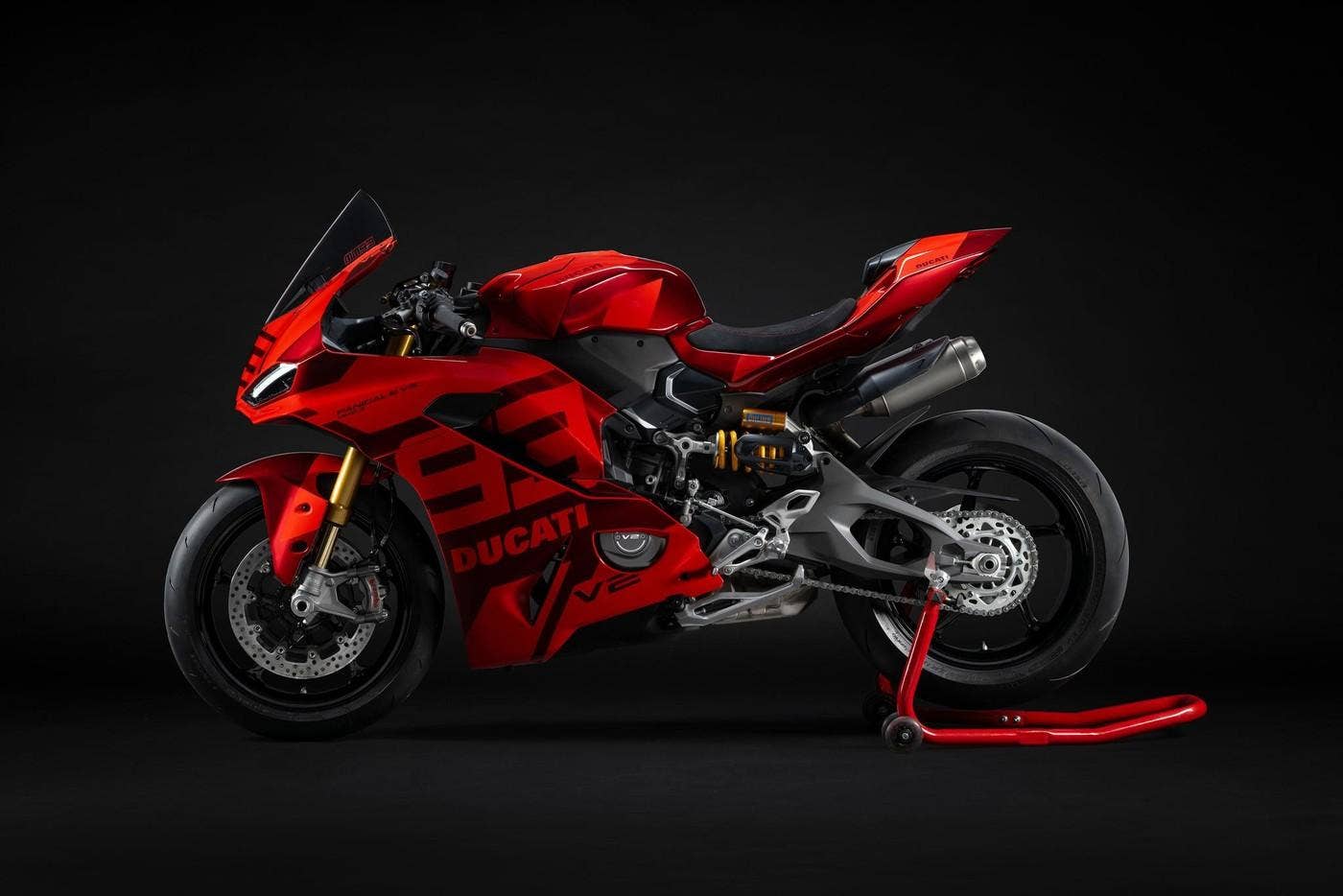 Nyní v exkluzivní číslované edici Marc Marquez 93, která je oslavou výkonů tohoto jezdce v sedle Ducati. Se suchou hmotností ještě sníženou oproti verzi S díky kovaným kolům na pouhých 175,5 kg u verze S. Sportovní styl doplňují snížená řídítka a tlumič řízení Öhlins.