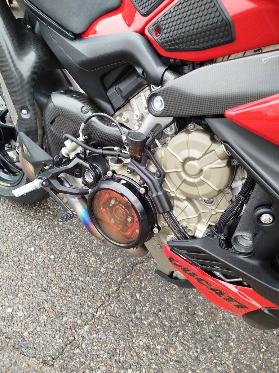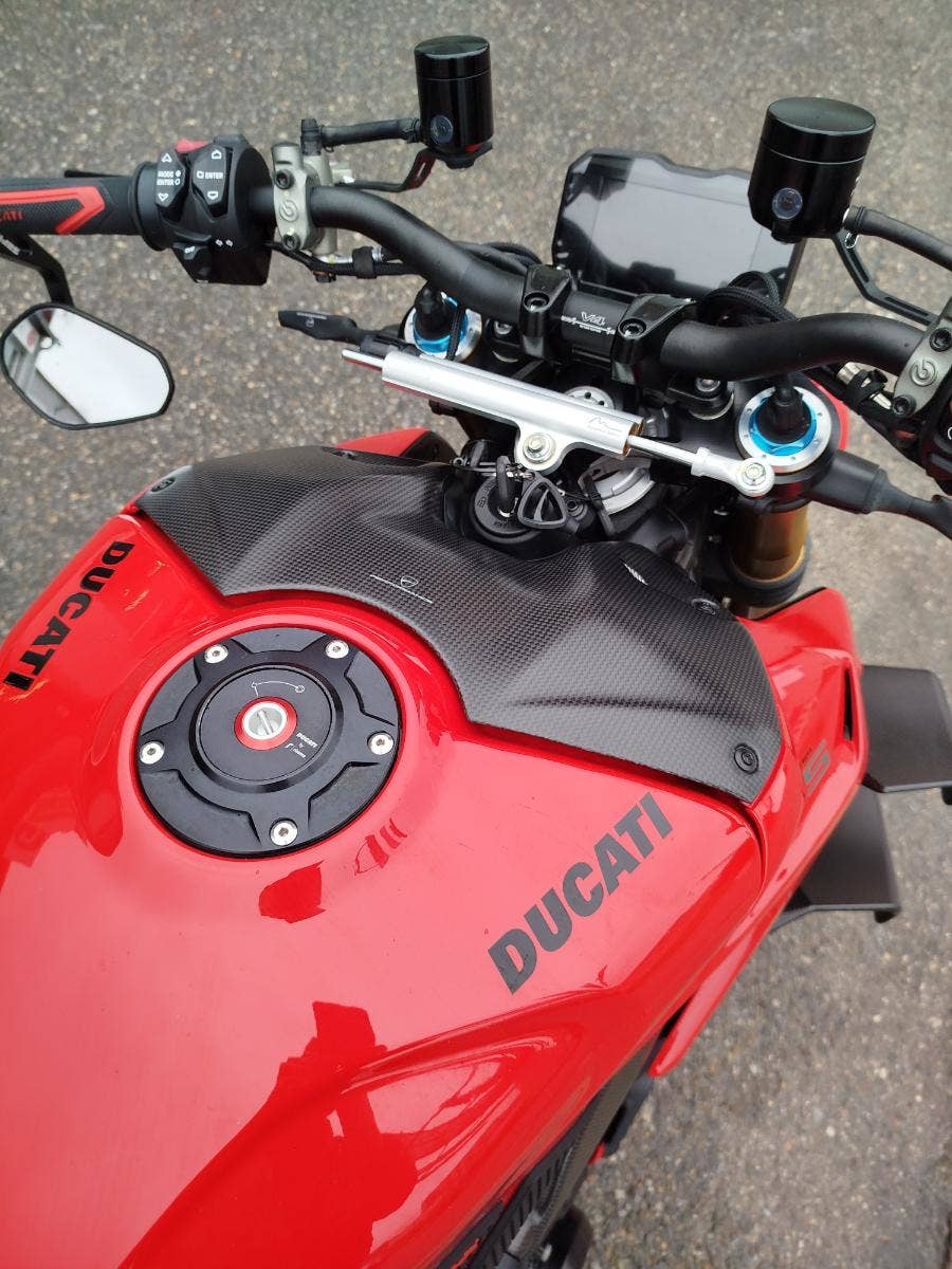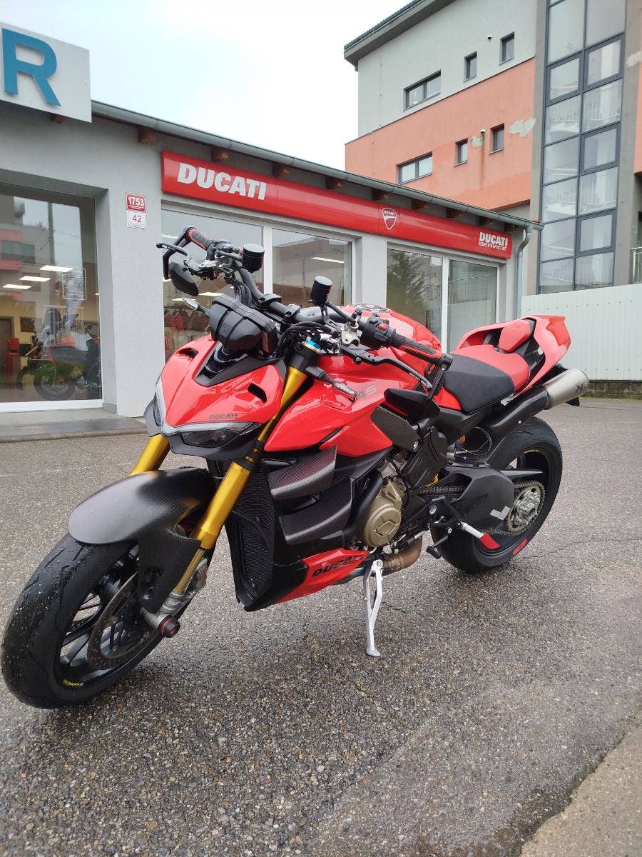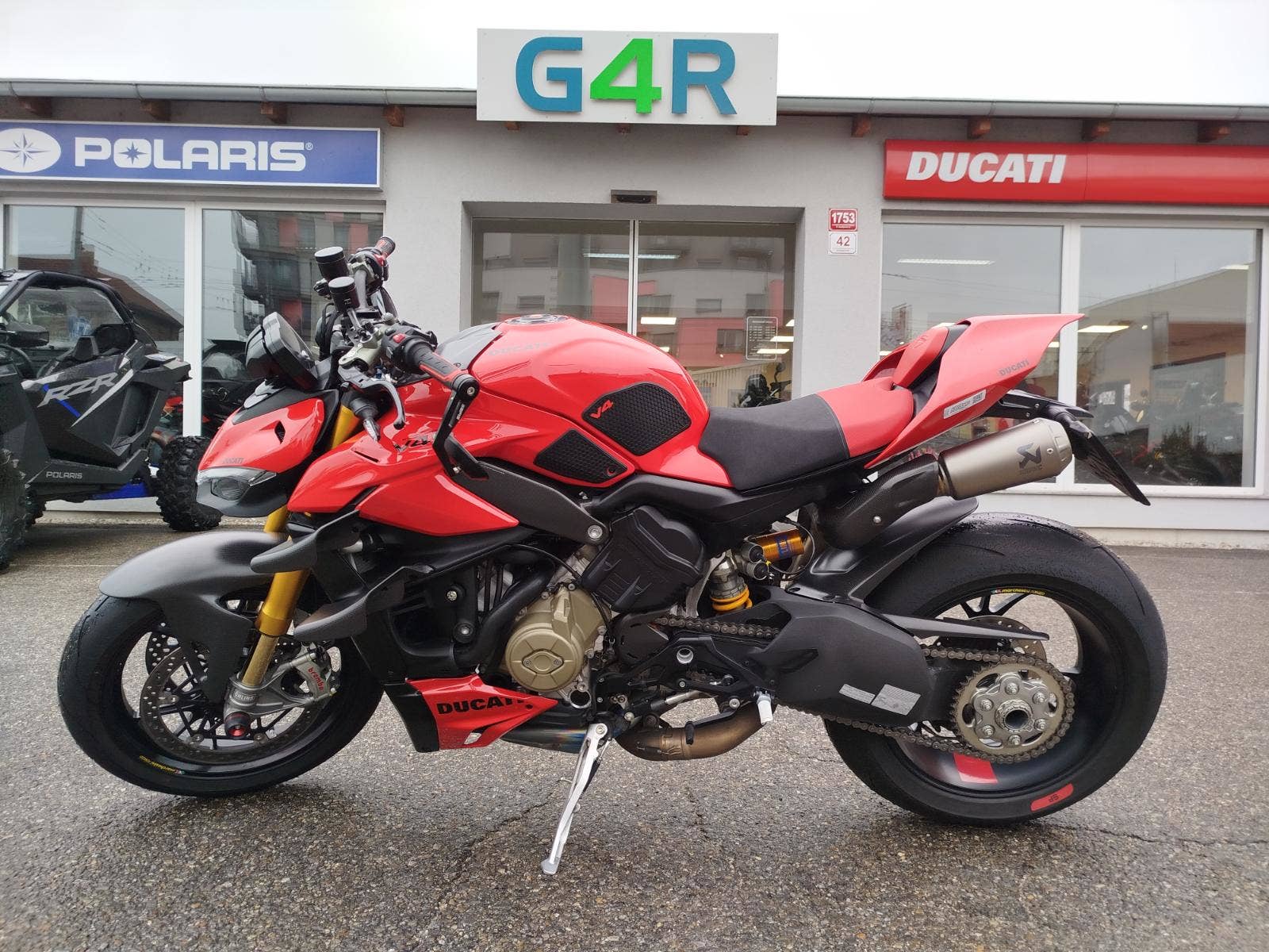 Nabízíme k prodeji krásnou a hlavně totálně nabušenou Ducati Streetfighter V4S z roku 2024 a nájezdem 8 629 km. Motorka zakoupena nová u nás v autorizovaném dealerství Ducati. 1. majitel, 2x klíče, stále tovární záruka, uživatelská příručka, výpis z elektronické evidence, možnost odpočtu DPH. Pravidelný a pouze autorizovaný garanční servis, rádi doložíme. Motorka s nadstandardní výbavou převyšující 400 000,– Kč, která čítá: kompletní laděný výfuk pod sedlo Akrapovič vč. racingové mapy a karbonových krytů, akvárko včetně spojky, dynamické LED blinkry, kratší držák SPZ, racingové víčko Rizoma, stavitelné páčky, černé nádobky, zpětná zrcátka, gripy, tankpad nádrže, karbonový přední blatník, karbonový zadní blatník, karbonová křidélka, slidery v ose kola. mřížky chladiče (voda + olej). Dvě krabice původních dílů včetně výfuku k motorce. Motorka s jasným původem, historií, zárukou a nebývale bohatou výbavou.