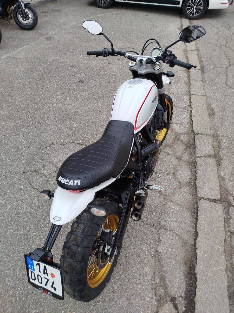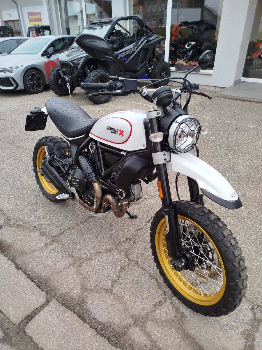 Nabízíme k prodeji krásnou Ducati Scrambler Desert Sled z roku 2017 a nájezdem 11 894 km. Motocykl zakoupen jako nový v ČR v autorizovaném dealerství Ducati. Nyní druhý majitel, 2x klíče, uživatelský manuál. Pravidelný servis v autorizovaném prostředí. Nyní čerstvě po velkém desmo servisu, který čítal kontrolu ventilových vůlí, nové rozvodové řemeny, svíčky, výměna oleje, olejového filtru, brzdová kapalina. Krásný Desert Sled s jasným původem, doloženou historií a vyřešeným servisem.