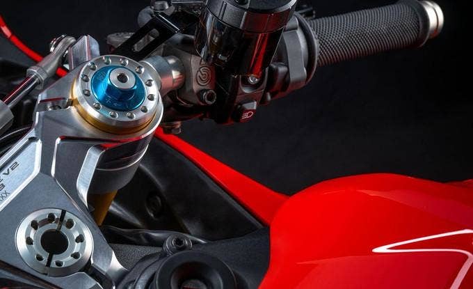 Lehkost, intuice a snížená fyzická námaha jsou kombinovány s křivkou točivého momentu nového V2 motoru, která je velkorysá při nízkých otáčkách a výkon ve vyšších otáčkách značný. Vše obohaceno o špičkové technické a elektronické vybavení: to je nová Panigale V2. Je nejlehčím superbikem této řady, jaký byl kdy vyroben.