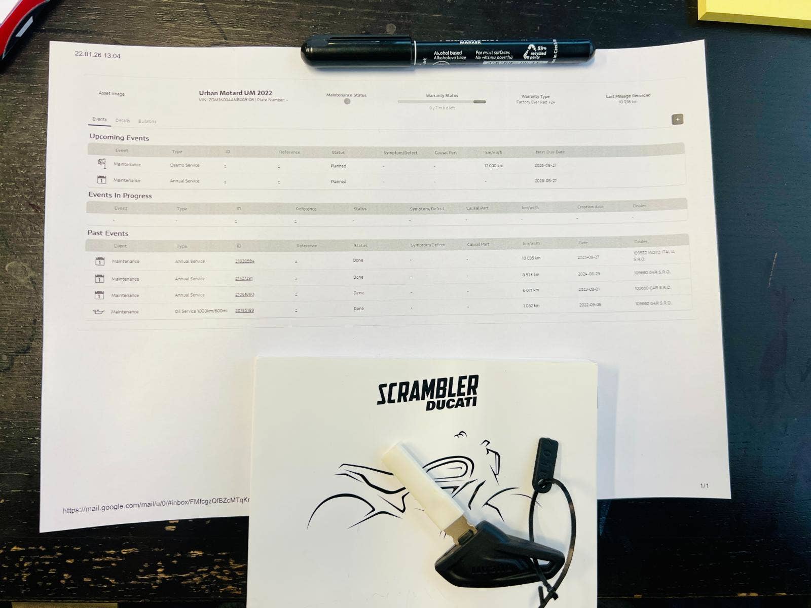 1. majitel, koupeno v Ducati G4R, 2x klíč, manuál, el. servisní kniha (veškeré záznamy). TOP stav, v tovární záruce do 7/2026, poslední servis 8/2025 -10tkm. Doplňkový výfuk Termignoni vč softwaru, frézovaná víčka, držák brašny od SW motech (původní výfuk k motocyklu). TK do 9/2028.