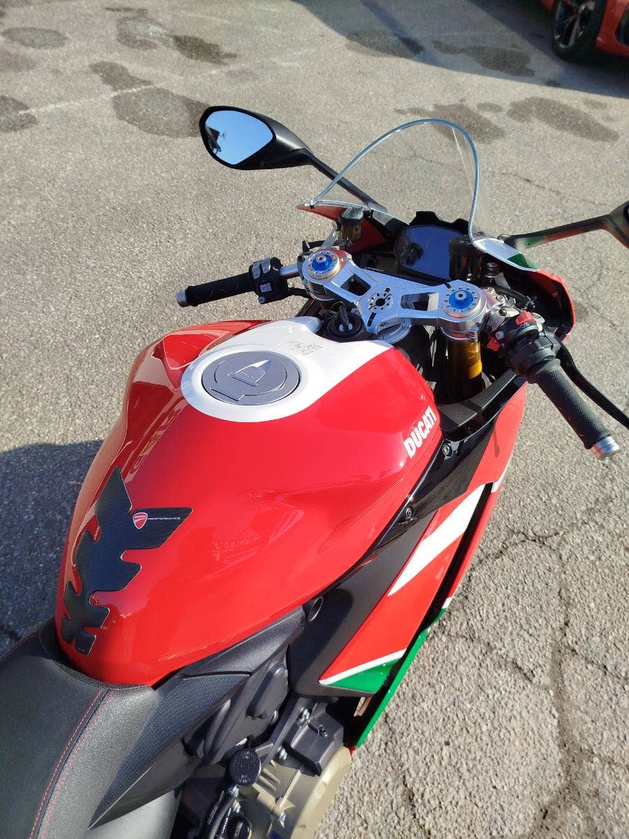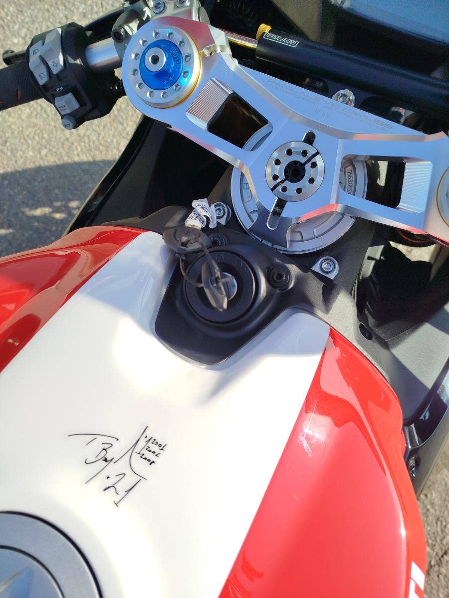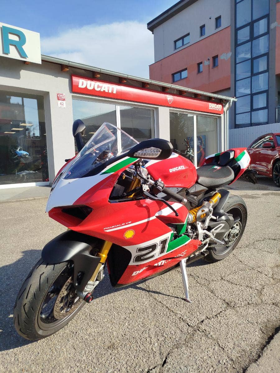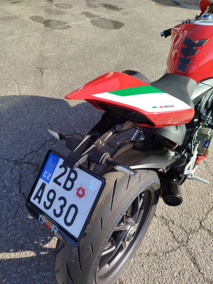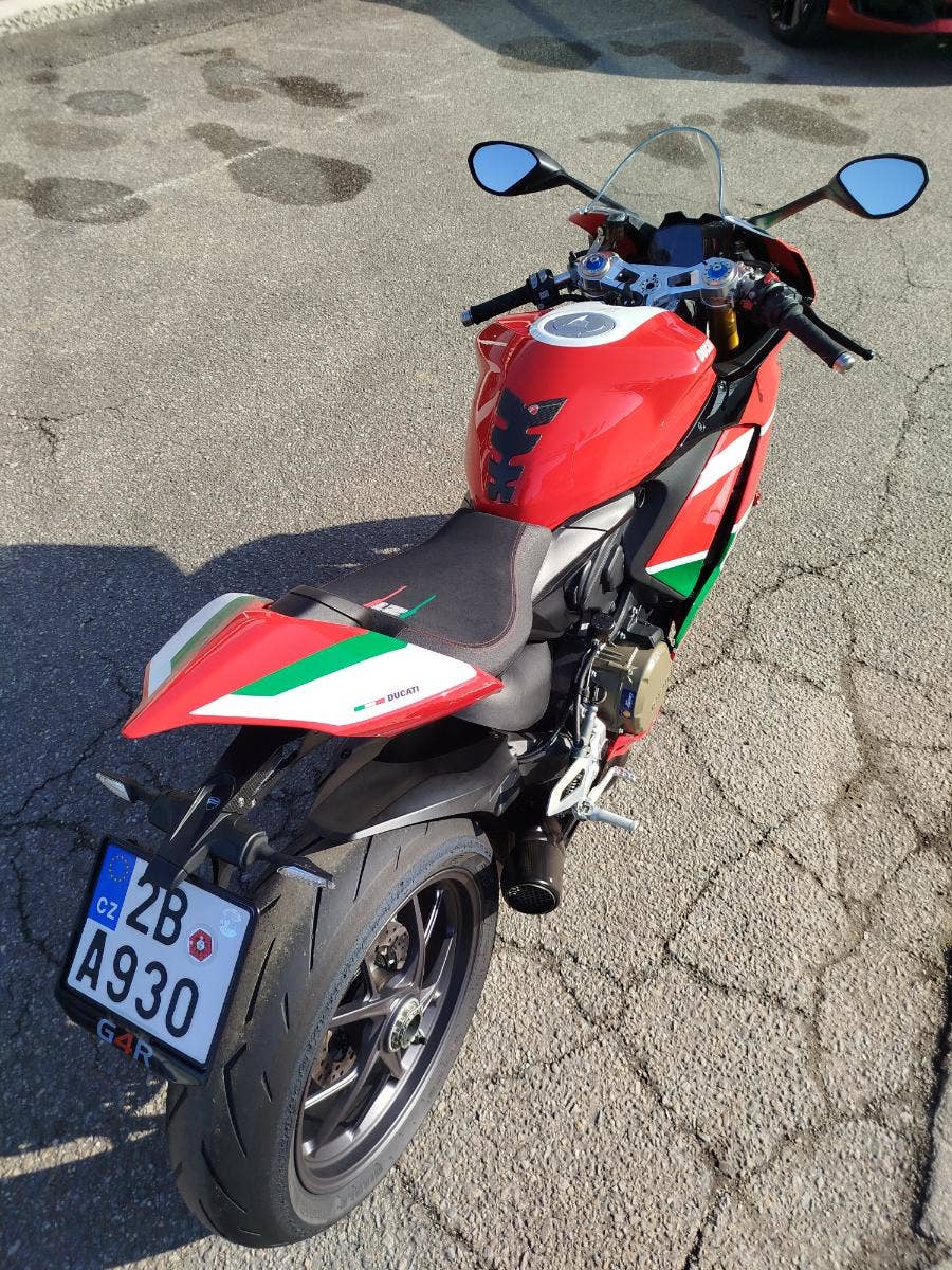Nabízíme k prodeji krásnou výroční Ducati Panigale V2 Bayliss z roku 2022 a nájezdem pouhých 6 613 km. Motorka zakoupena jako nová v autorizovaném dealerství Ducati v ČR. Pouze jeden majitel, 2x klíče, uživatelský manuál, elektronická servisní kniha. Možnost odpočtu DPH, stále v tovární záruce. Motocykl pravidelně servisován pouze v autorizovaném prostředí servisu Ducati. Nyní čerstvě po garančním servise u nás. Výměna oleje, olejového filtru, diagnostika, celková kontrola motocyklu. V ceně nadstandardní karbonový kratší držák SPZ, dynamické miniblinkry, slidery v ose kola. Krásná připravená motorka s jasným původem, zárukou a plnou servisní historií.