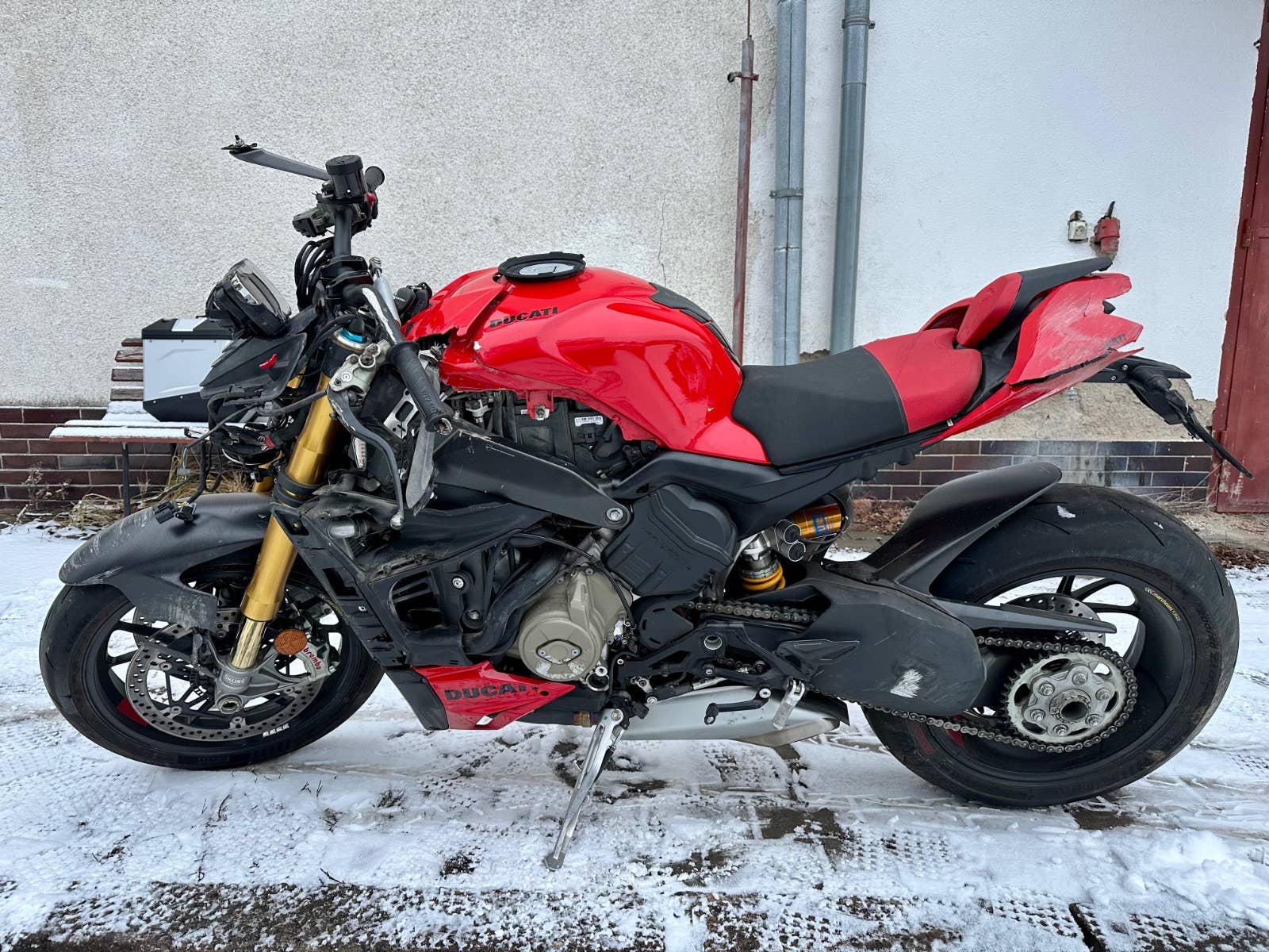 Ducati Streetfighter v4s, najeto cca 4tis km, 2024, havarovaný viz foto - podvozek ok, motor ok, světlo má ulomený držáky, plasty, atd, tacho - poškozený kryt, možnost úvěru od Essoxu nebo Cofidis