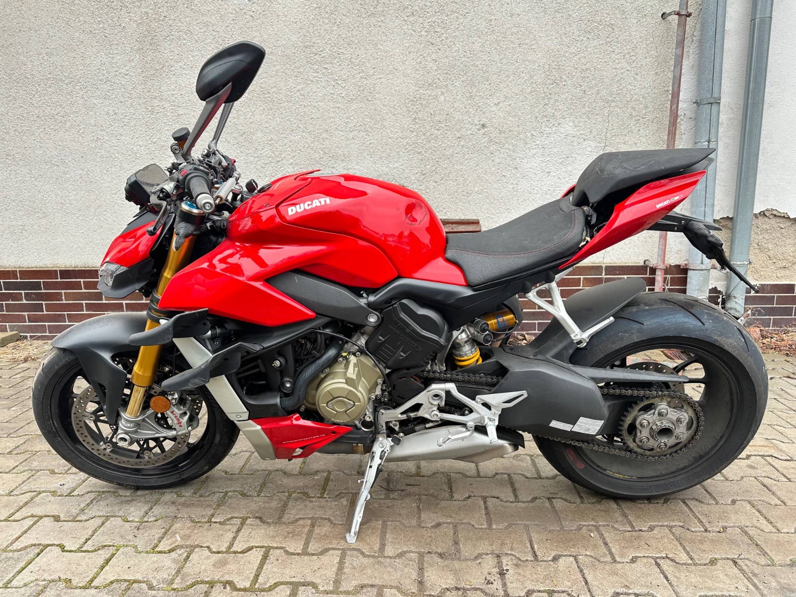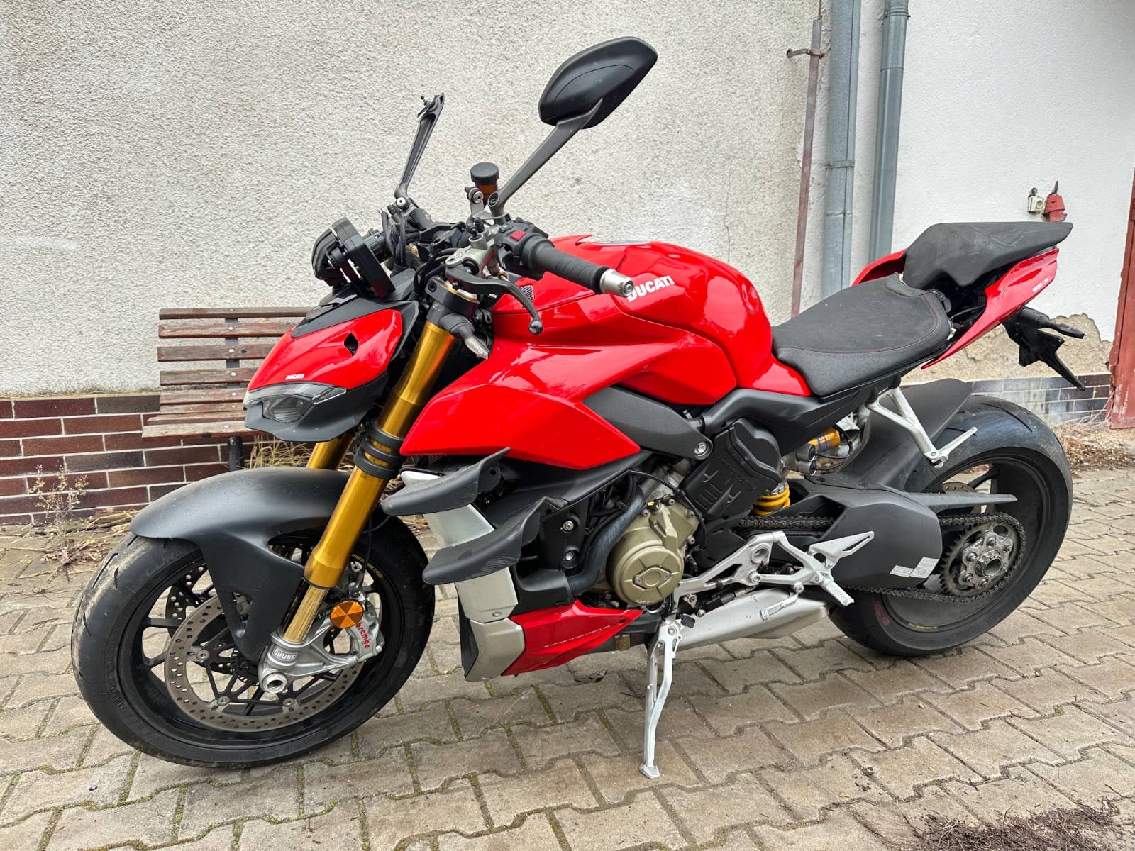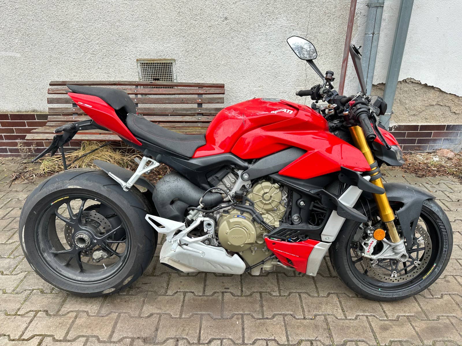 Ducati Streetfighter v4s, 2022, najeto 12tis km, havarovaný viz foto - nádrž, řidítko, zrcátko, uchycení podsedla, sedačka, motor běží, podvozek ok, nové pneumatiky, možnost úvěru od Essoxu nebo Cofidis