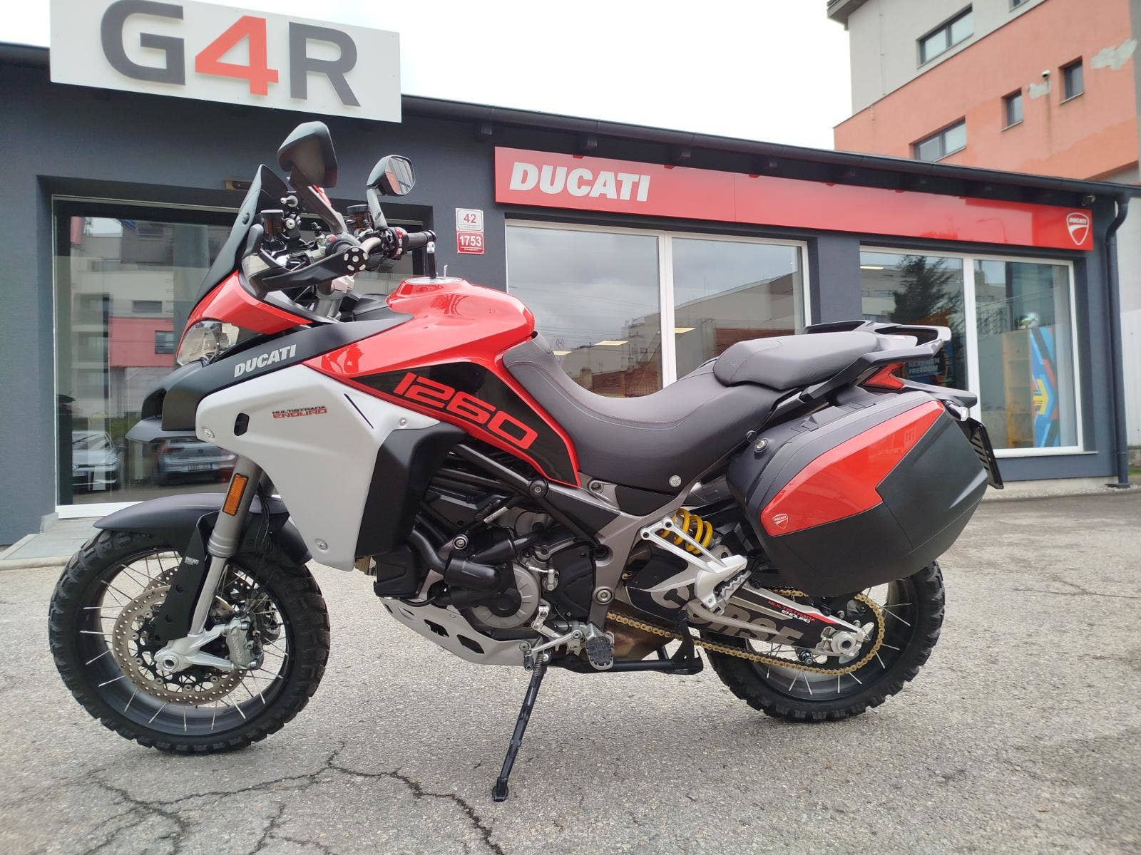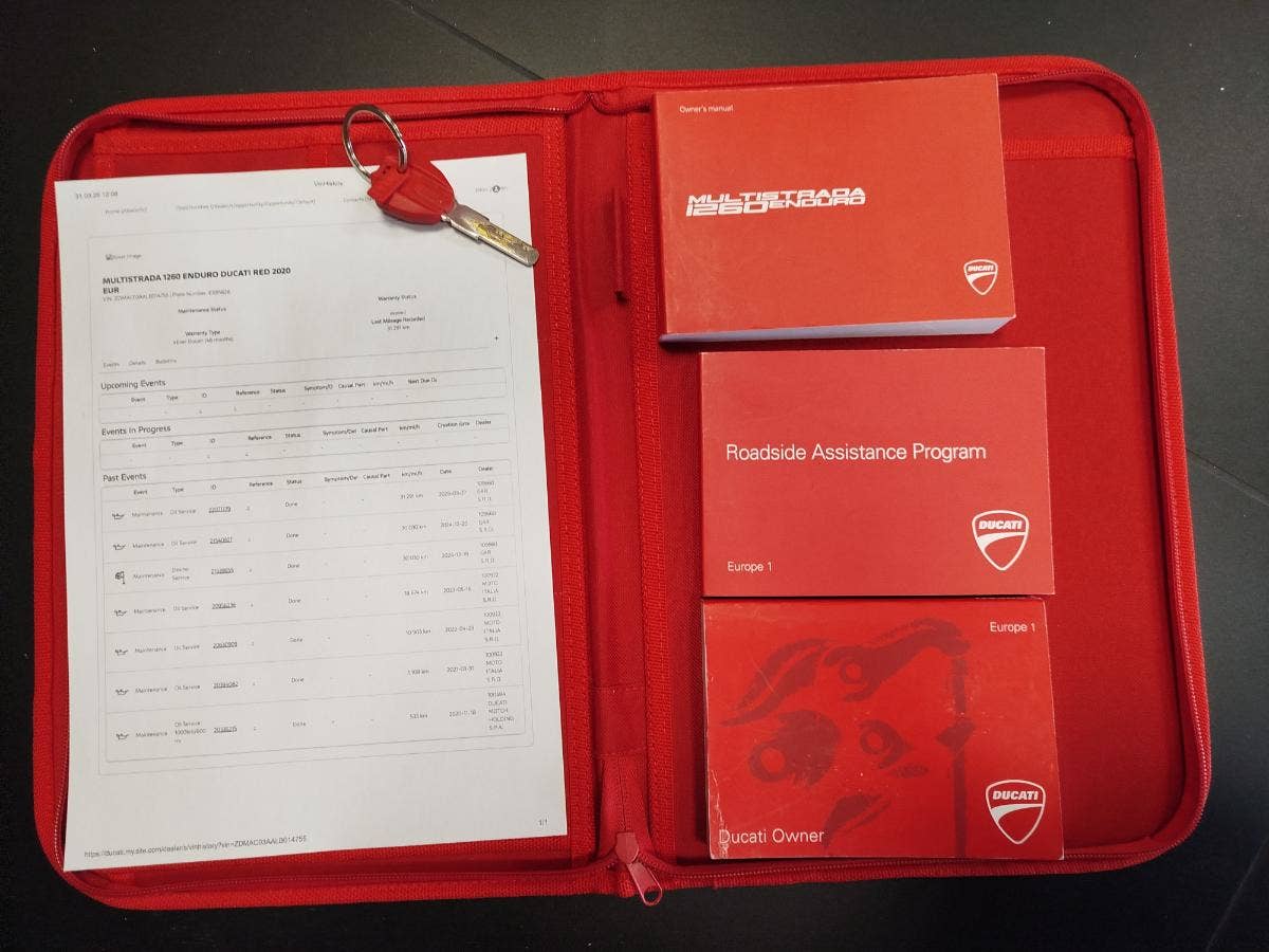 Nabízíme k prodeji krásnou Ducati Multistrada 1260 Enduro z roku 2020 a nájezdem 31 291 km. Motocykl zakoupen v ČR kam byl dovezen z IT autorizovaným dealerem Ducati jako referenční a hlavně prověřený motocykl. Nyní druhý majitel, 2x klíče, manuál, elektronická servisní kniha. Motorka s hezkou výbavou čítající: sadu bočních kufrů, hlavní stojan, kryt pod motorem, karbonové plexi, držák navigace, kryty rukojetí. Motorka s bohatou servisní historií pouze z autorizovaného prostředí Ducati. Desmo servis proveden, nyní čerstvě po garanční prohlídce. Výměna oleje, olejového filtru, diagnostika, celková kontrola. Motorka s jasným původem, doloženým servisem a v opravdu moc hezkém stavu.