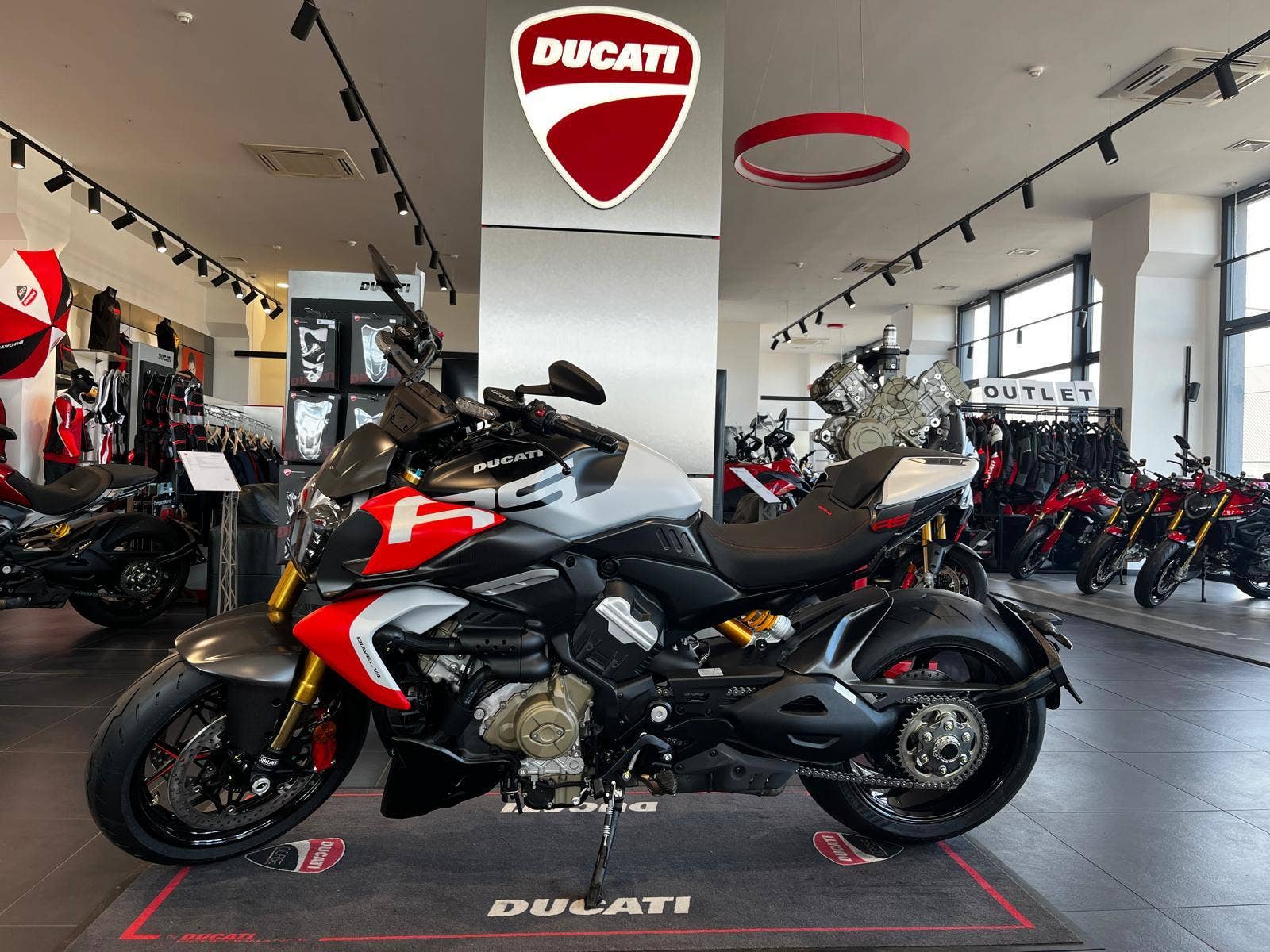 Z 0 na 100 km/h za pouhé 2,5 sekundy: rychlost je nově definována s Diavelem V4 RS. Závodní DNA Ducati vstupuje do světa Diavelu v číslované edici. Motor Desmosedici Stradale, součástky vyrobené z vysoce kvalitních materiálů, spousta karbonu a elektronika převzatá ze supersportovních motocyklů. Agilní, výkonný, lehký. Díky pokročilému podvozku, motoru Desmosedici Stradale a použití prvků snižujících celkovou hmotnost slibuje Diavel V4 RS ještě citlivější a přesnější jízdní dynamiku a neutrální a stabilní chování v zatáčkách. Nezaměnitelná silueta a agresivní barevné schéma. To prostě chceš!