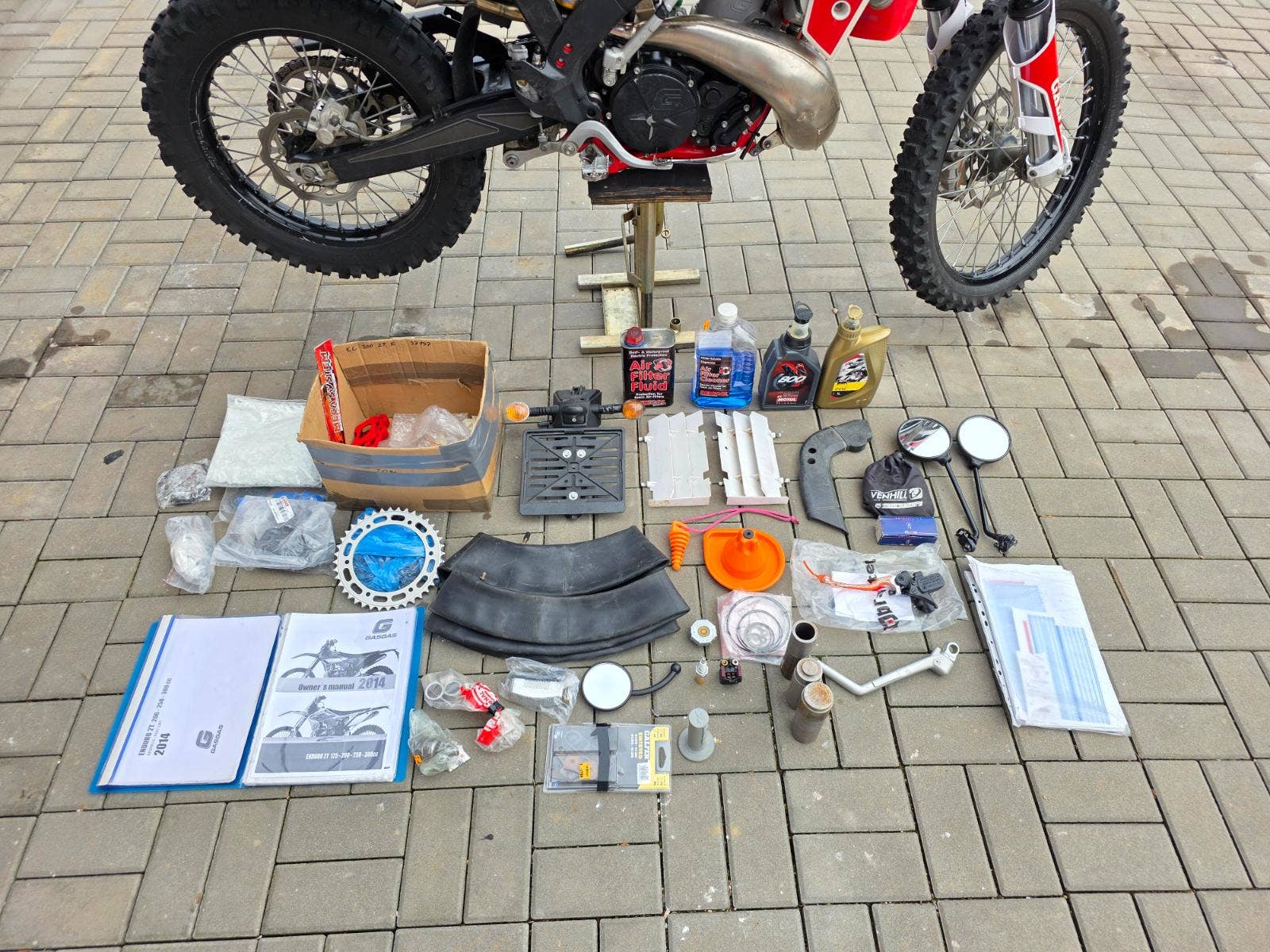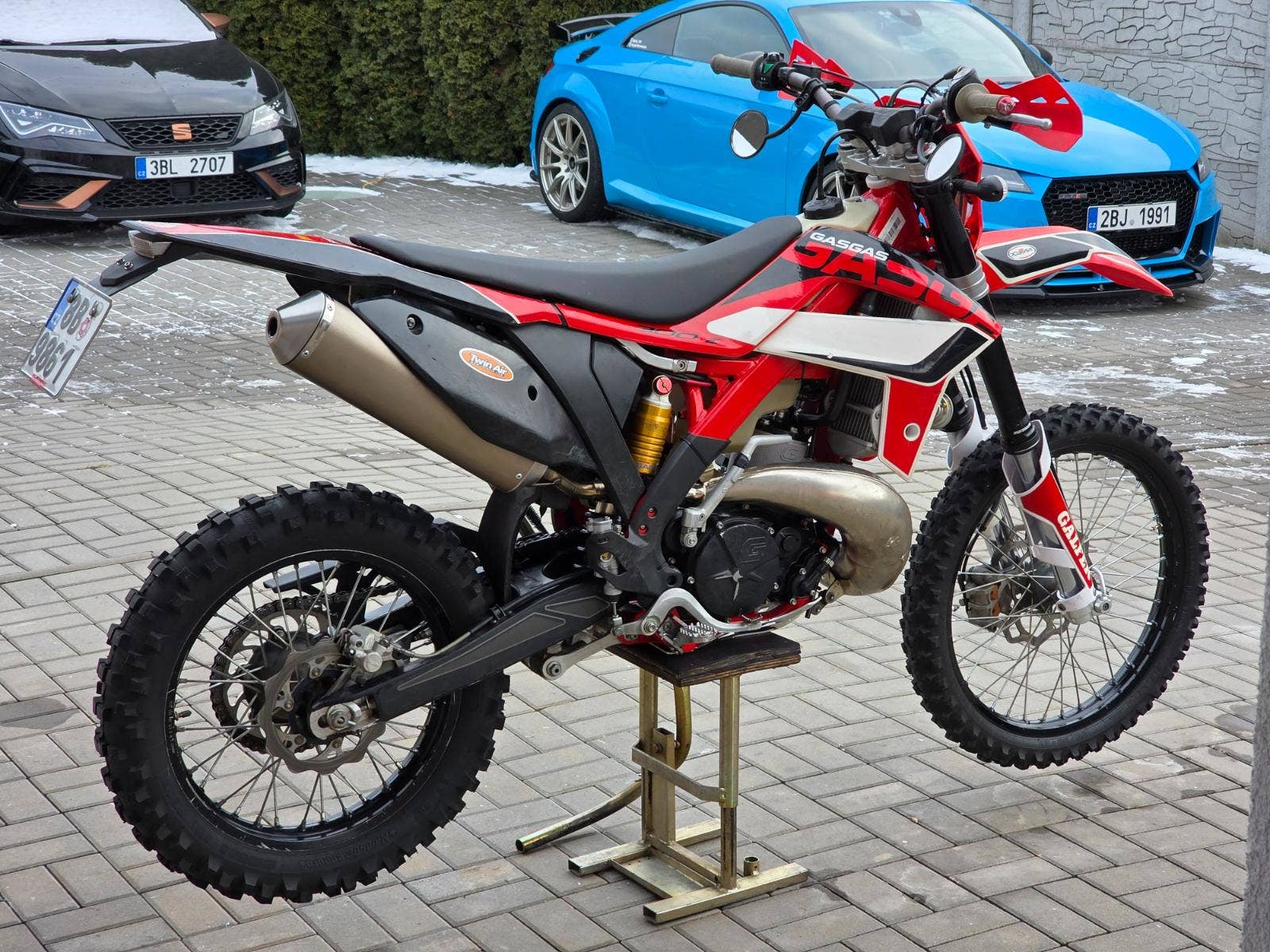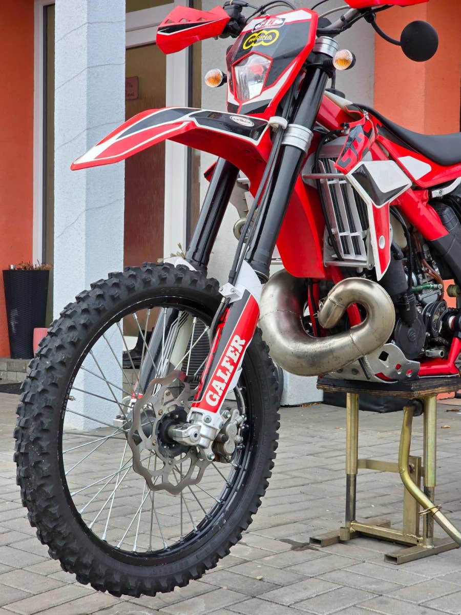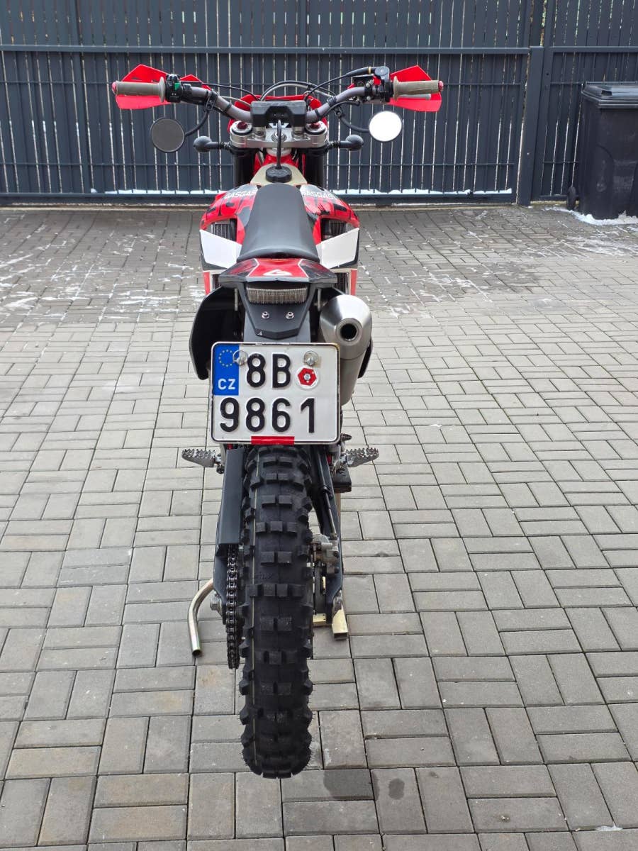 Prodám enduro Gas Gas EC300 E, rok výroby 2014, najeto 4415 km (131mth), výkon v TP 6,5 kW (reálně cca 38 kW, 52koní), objem motoru 299cm3, STK platná do 6/2029. Motorka zakoupena a servisovaná u TSS-Technical sports s. r.o., kompletní servisní historie včetně faktur. Celkově ve velice pěkném udržovaném stavu ježděno rekreačně, ale poslední 2 roky skoro vůbec, po celou dobu jeden majitel. Nyní na moto nově P + Z brzdové destičky Galfer, komplet řetězovka (primární převod, rozeta JDC, řetěz Regina), slider na kyvce, zánovní vodítko řetězu, kloubové ložisko uložení centrálního tlumiče Sachs, zadní pneu, komplet ložiska a gufera Z kola, P zánovní, brzdové destičky. Gelová baterie Yuasha, nový L chladič s víčkem, koncovka (tlumič) výfuku, nový olej v pumpě spojky i převodovce, nová chladící kapalina. K moto množství nových dílů - gufera, ložiska, rozpěrky do kol, rezervní relé pro startér, originální nejetá malá (silniční) rozeta, restrikce karburátoru, páka kick startu. Instalovány kvalitní chrániče chladičů s výztuhou, rezervní spojková páka (také nová), valitní ALU kryt motoru Mecca system. K motorce originální příbal, díly, chemie na filtr, olej, stojan.