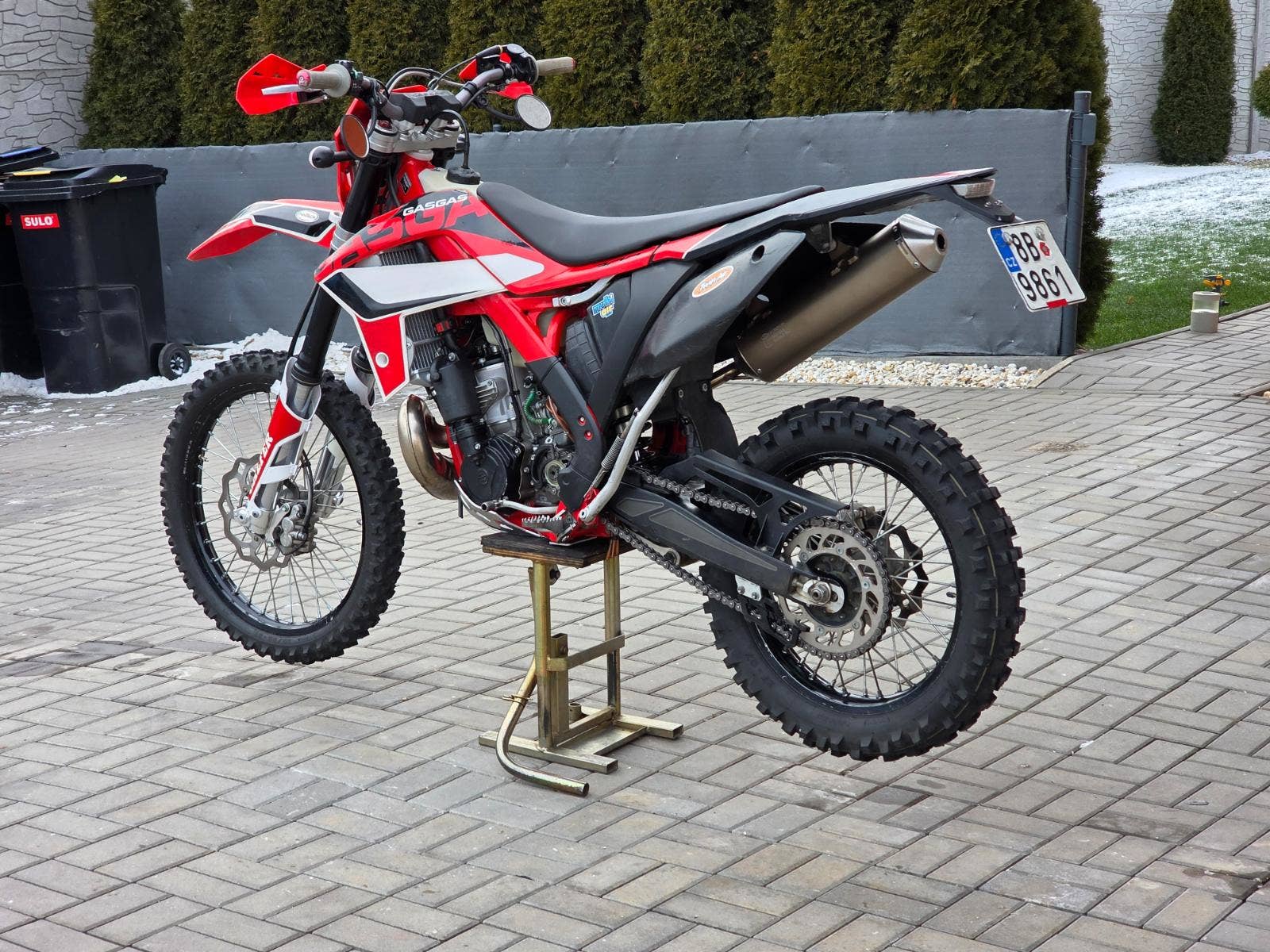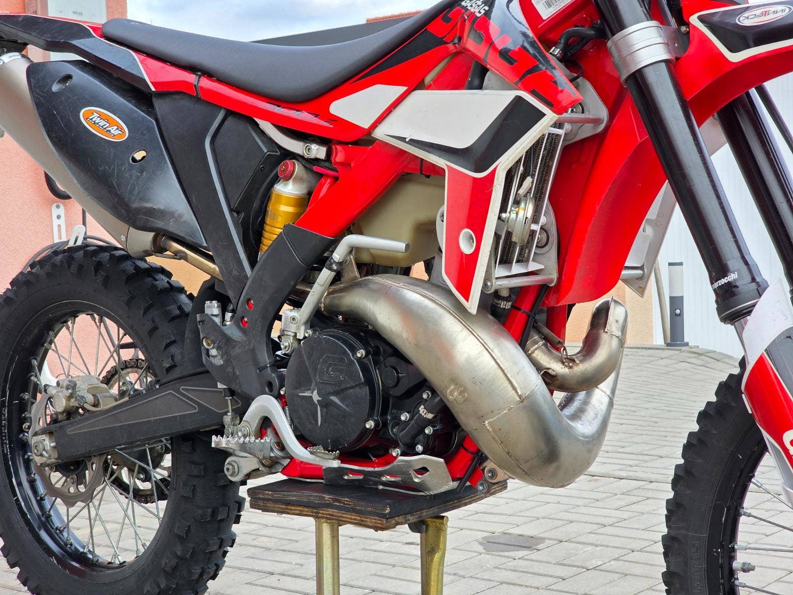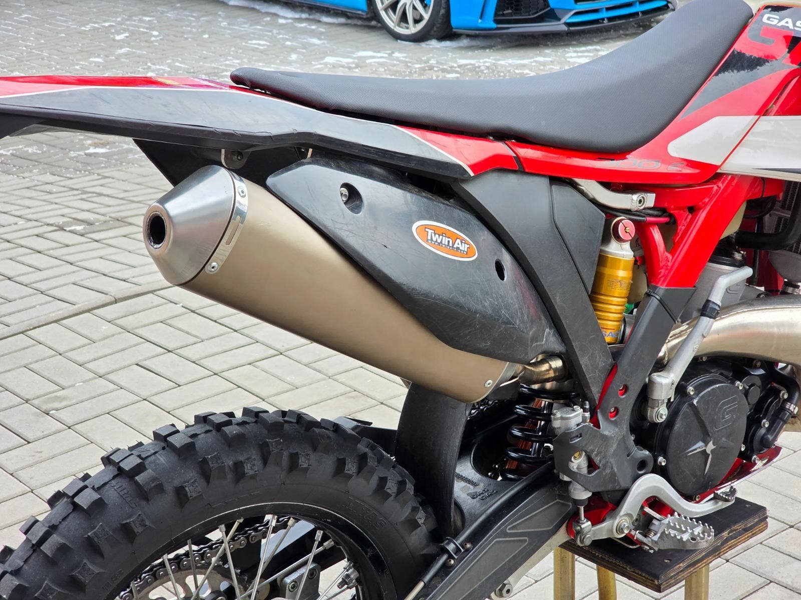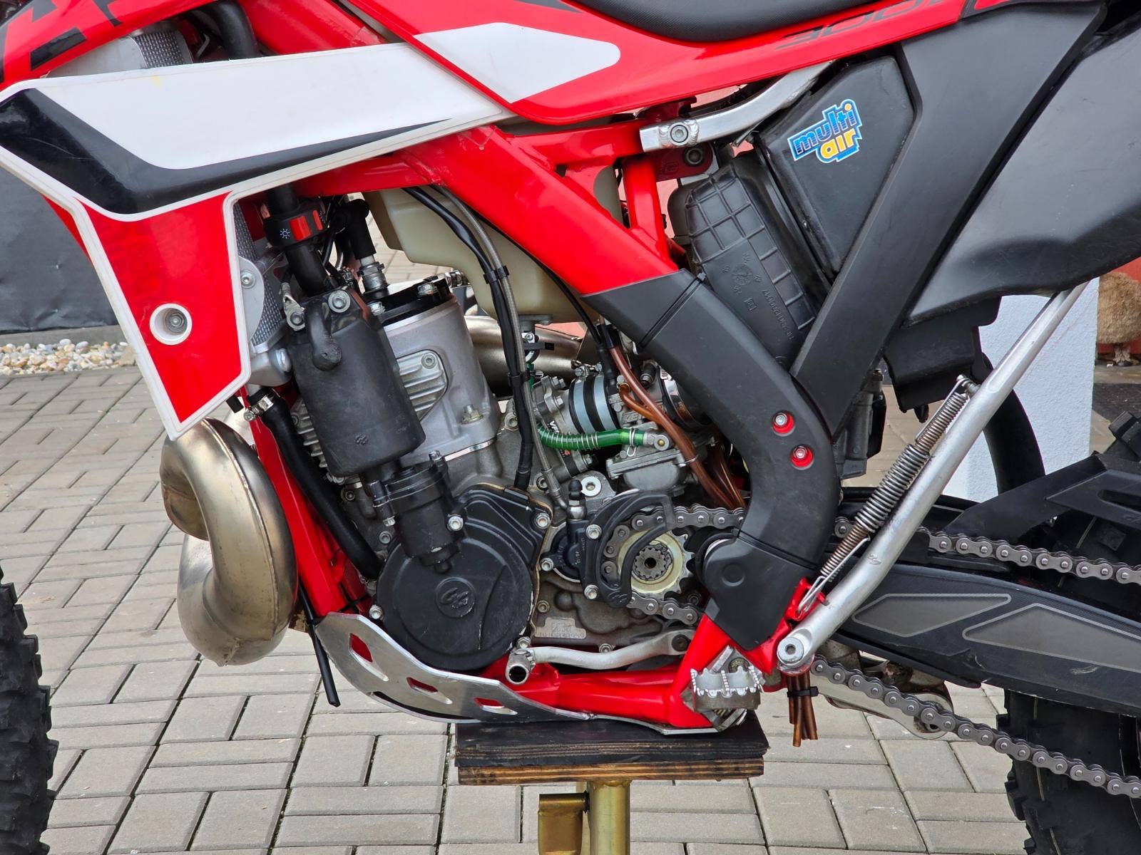 Prodám enduro Gas Gas EC300 E, rok výroby 2014, najeto 4415 km (131mth), výkon v TP 6,5 kW (reálně cca 38 kW, 52koní), objem motoru 299cm3, STK platná do 6/2029. Motorka zakoupena a servisovaná u TSS-Technical sports s. r.o., kompletní servisní historie včetně faktur. Celkově ve velice pěkném udržovaném stavu ježděno rekreačně, ale poslední 2 roky skoro vůbec, po celou dobu jeden majitel. Nyní na moto nově P + Z brzdové destičky Galfer, komplet řetězovka (primární převod, rozeta JDC, řetěz Regina), slider na kyvce, zánovní vodítko řetězu, kloubové ložisko uložení centrálního tlumiče Sachs, zadní pneu, komplet ložiska a gufera Z kola, P zánovní, brzdové destičky. Gelová baterie Yuasha, nový L chladič s víčkem, koncovka (tlumič) výfuku, nový olej v pumpě spojky i převodovce, nová chladící kapalina. K moto množství nových dílů - gufera, ložiska, rozpěrky do kol, rezervní relé pro startér, originální nejetá malá (silniční) rozeta, restrikce karburátoru, páka kick startu. Instalovány kvalitní chrániče chladičů s výztuhou, rezervní spojková páka (také nová), valitní ALU kryt motoru Mecca system. K motorce originální příbal, díly, chemie na filtr, olej, stojan.