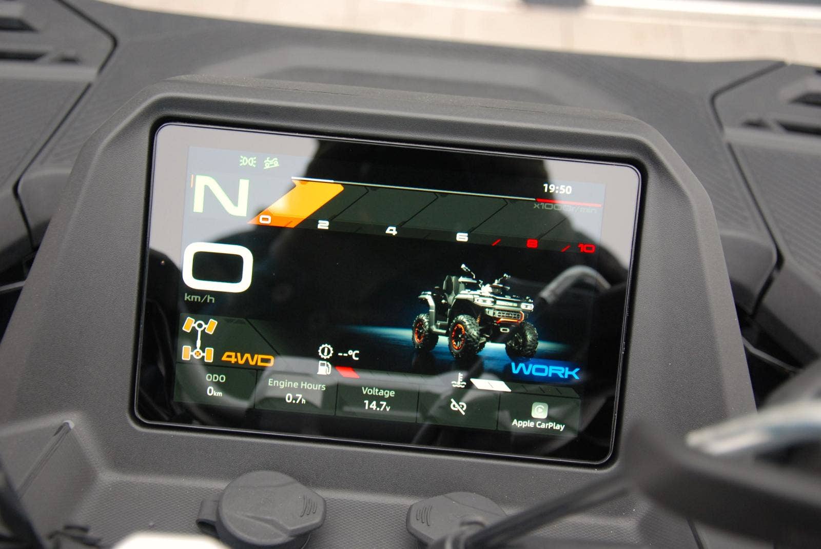 - - GOES KONEKTIVITA: Komunikační modul T-BOX* umožňuje přenos dat z vozidla do mobilní aplikace CFMOTO Ride. Zde je zobrazena poloha stroje, historie jízd a statistika, informace o stavu vozidla, upozornění na manipulaci se strojem a další. V aplikaci také naleznete novinky ze světa GOES a informace o prodejcích a servisech. Součástí aplikace je také funkce MotoPlay, která umožňuje přenos navigace z aplikace přímo na displej vozidla.
