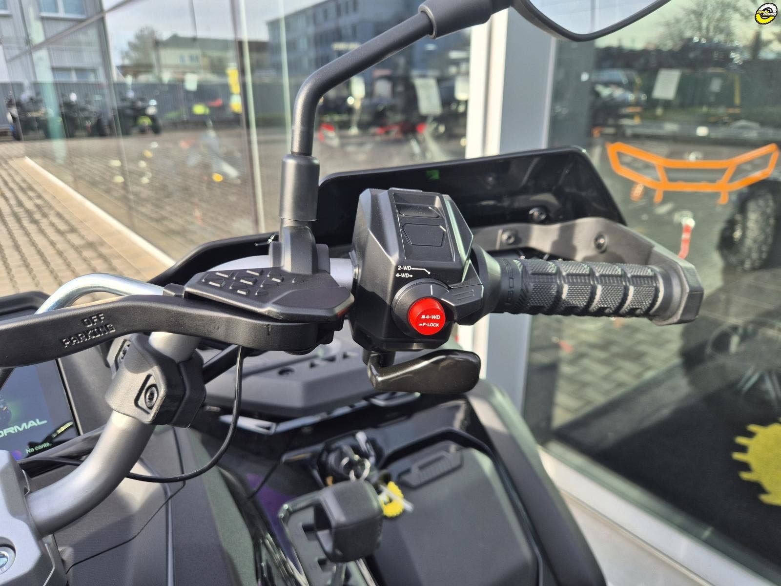 Nylonové lano navijáku operuje bezpečně v horizontálních a vertikálních rolnách, navíc je tento technický prvek dobře chráněn předsunutým rámem. Ovládání navijáku je elektronické z řídítek stroje.