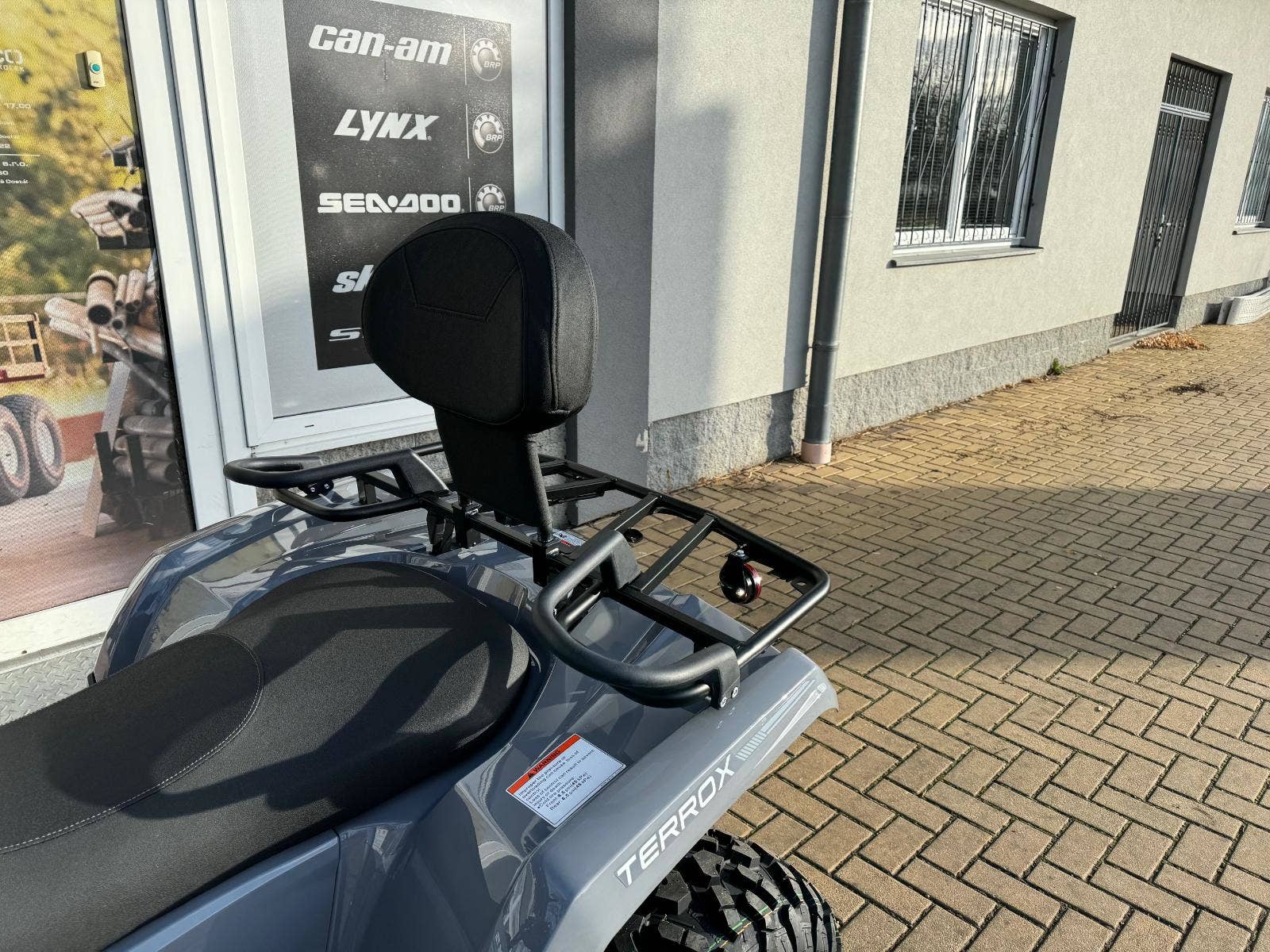 Homologované tažné zařízení je přirozenou součástí pracovního zařazení Terroxu. Je odnímatelné, což umožňuje v případě potřeby připojit jiný typ pracovního zařízení, příklad je sběrný koš na ovoce.