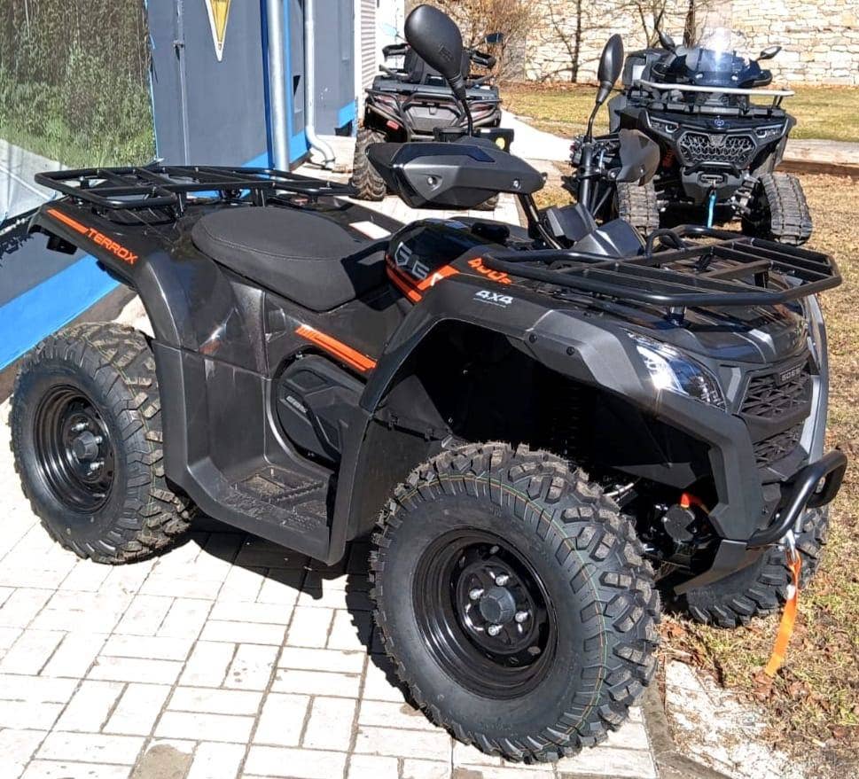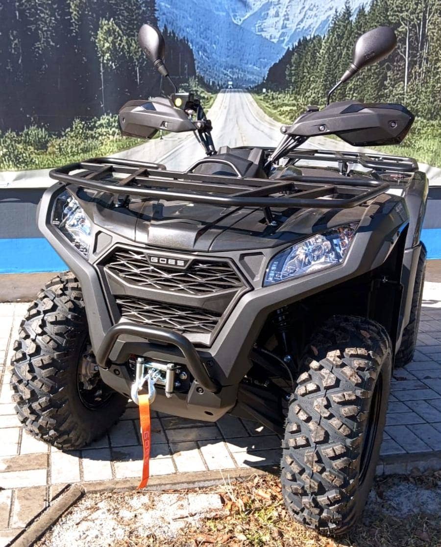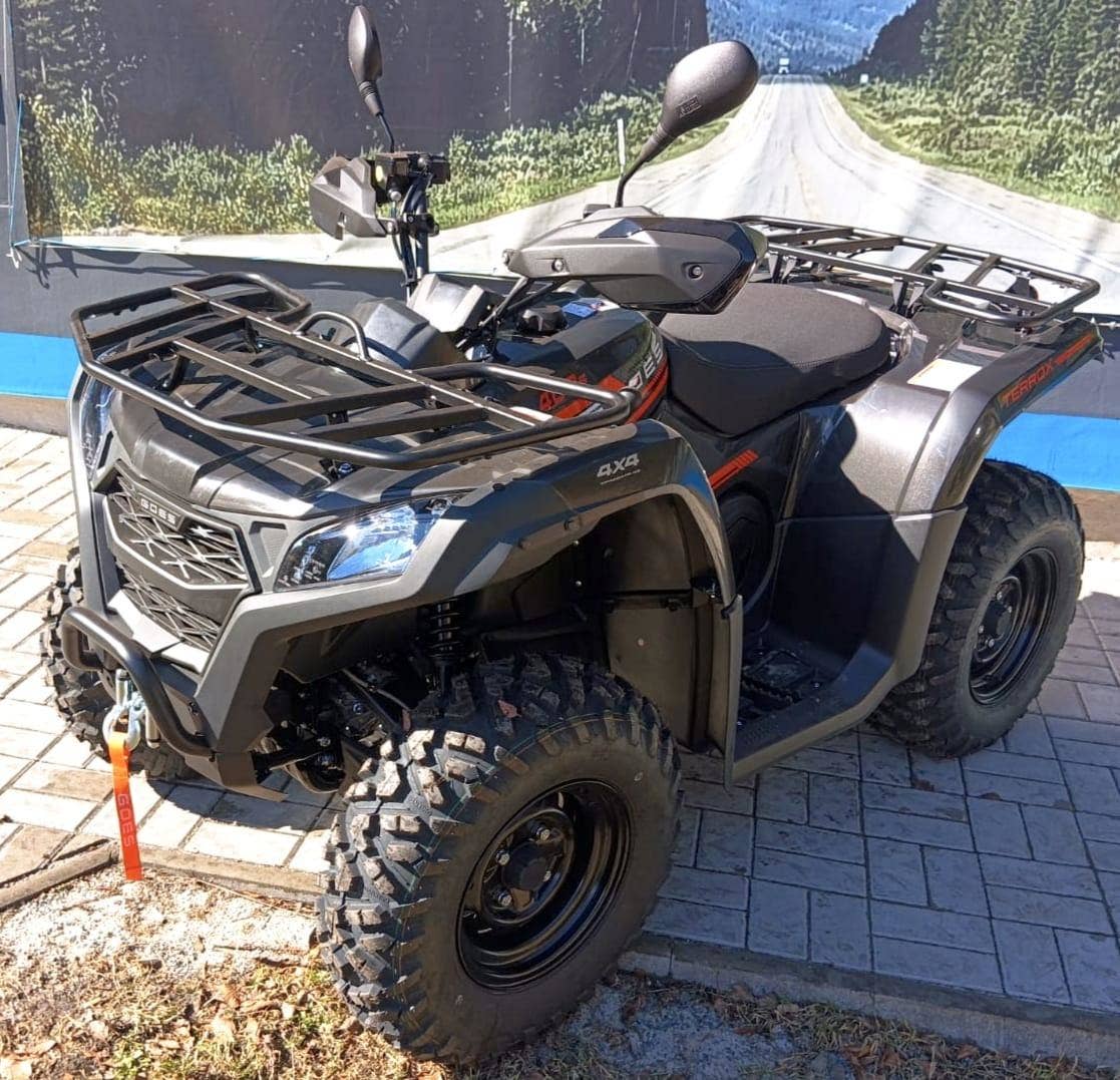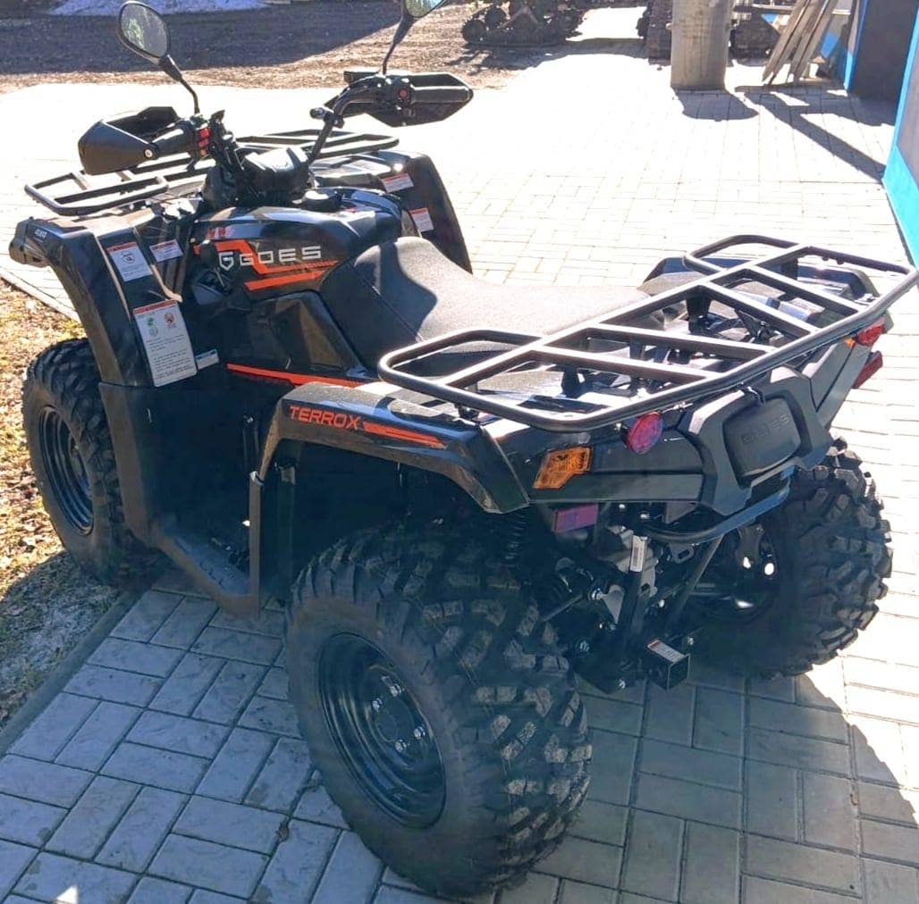GOES TERROX 400 T3b – nový stroj skladem, ihned k odběru, možnost odpočtu DPH. Praktická pracovní čtyřkolka s motorem 400 ccm, výkonem 29 hp, automatickou převodovkou CVT, pohonem 2WD/4WD, uzávěrkou předního diferenciálu a homologací T3b. Ve výbavě elektrický naviják, homologované tažné zařízení, ocelové nosiče a variátor CVTech. Nádrž 14 l, pneu 25", světlá výška 240 mm, suchá hmotnost 358 kg. Záruka 3 roky, vhodná pro práci i volný čas.