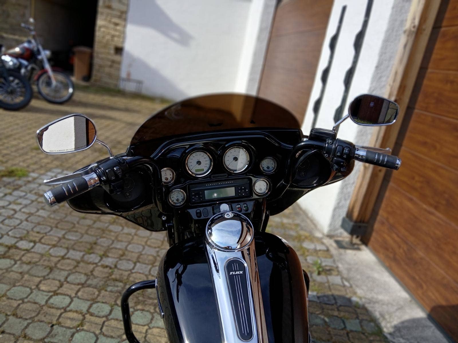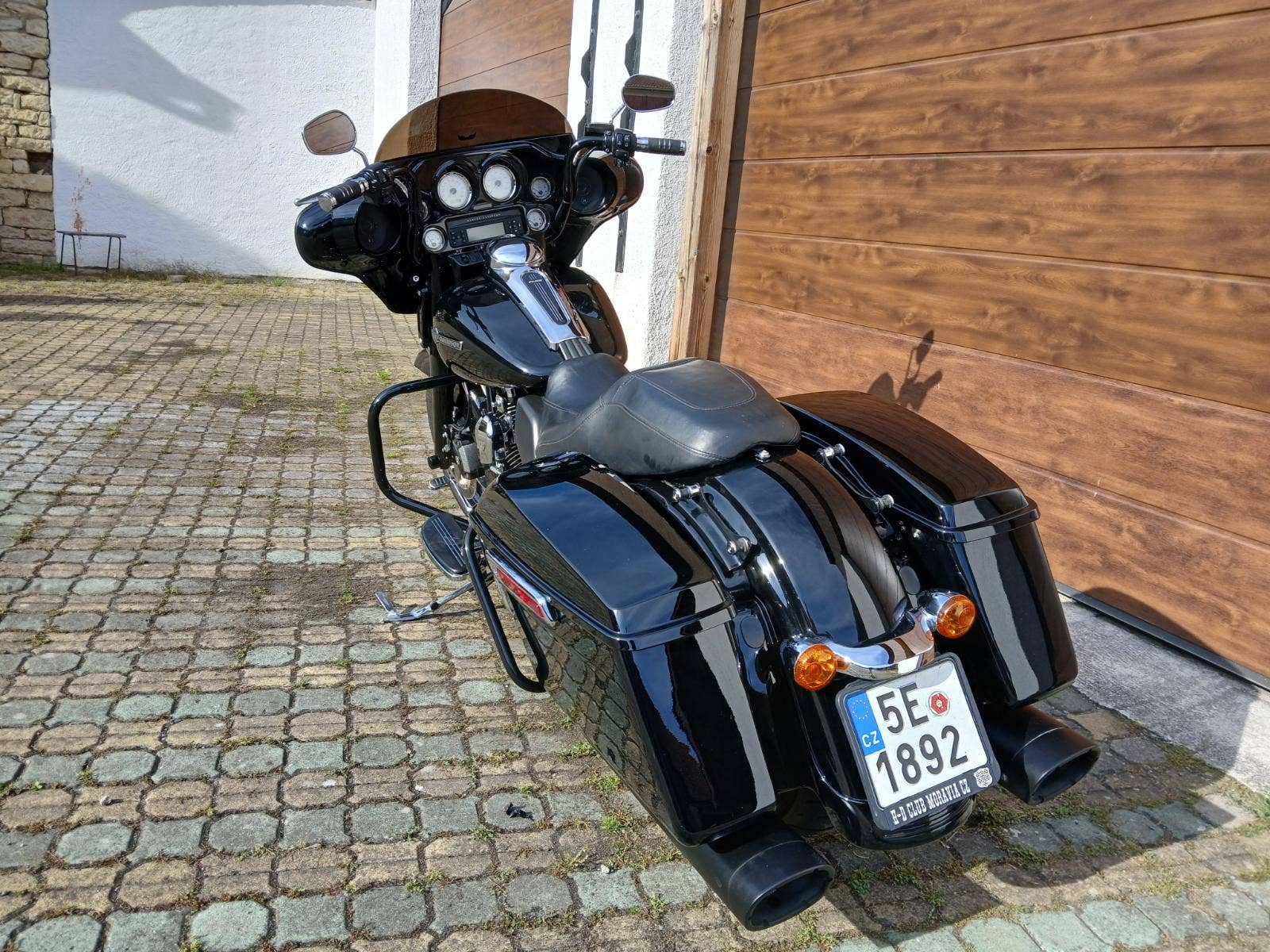 Výbava: výfuky Vance Hines, mapy screamin eagle, řidítka 12", doplňkové gripy, LED přední světlo s E, LED přední blinkry s E, zadní padáky, docking kit, kufry z modelu 14výš, černě lakovaná víka motoru.