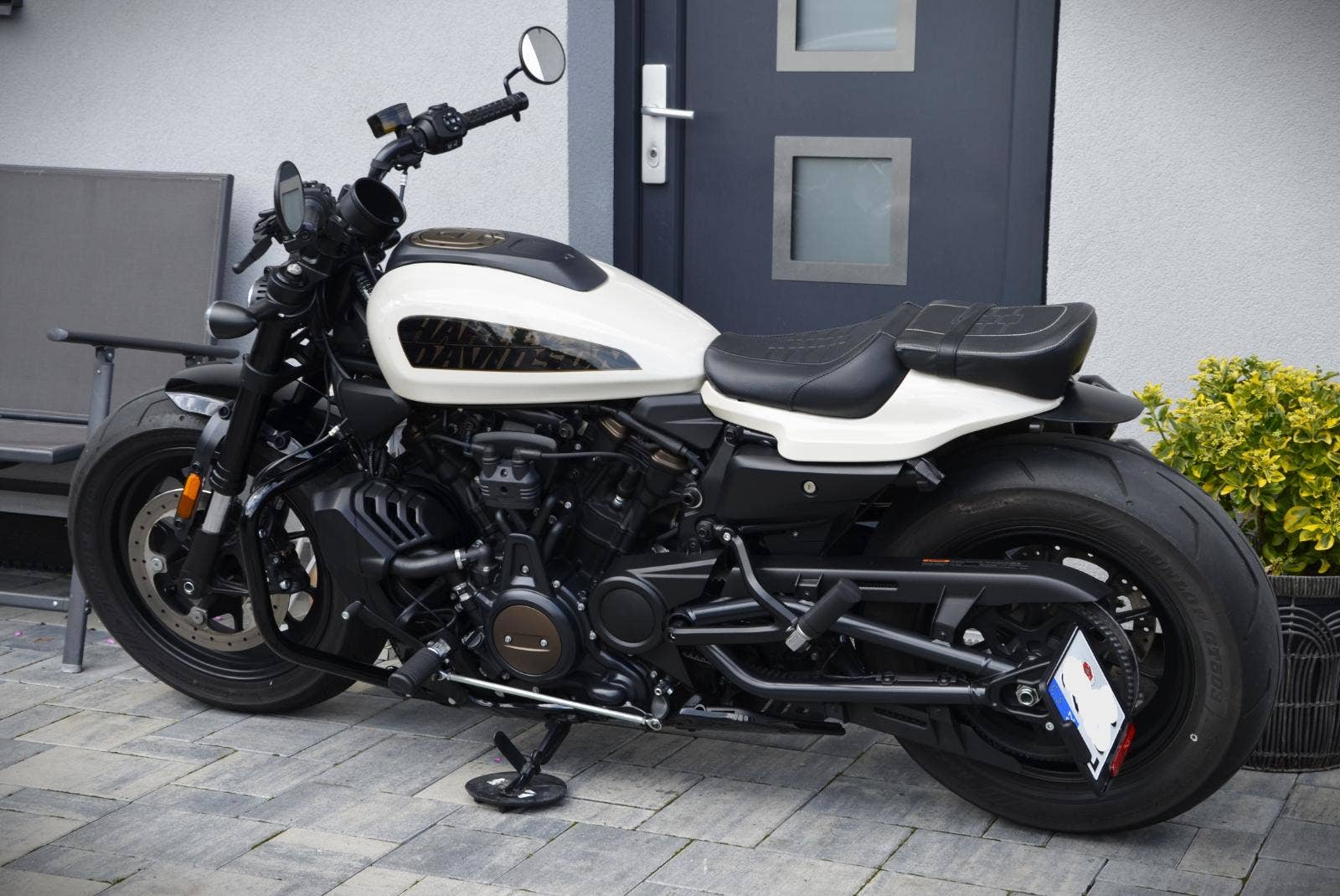 Harley Davidson RH 1250 S Sportster S zakoupen nový v ČR 2022 - najeto pouze 5.500 km!!! PRODLOUŽENÁ ZÁRUKA DO 2027. Motocykl dovybaven pro jízdu ve dvou doplňkovými sedly, dále padací rám, boční držák SPZ, miniblinkry 3v1. Krásný zánovní stav. Možný protiúčet Vašim stávajícím strojem. Dopravu po dohodě zajistíme. Cena 345000 Kč. Odpočet DPH - ne.