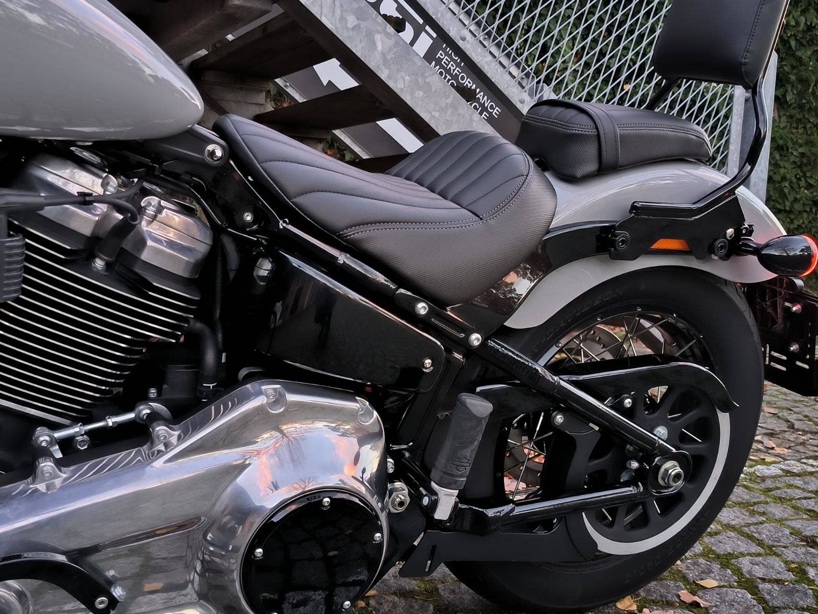 Street Bob je štíhlý, drsný bobber s řídítky Mini Ape, uprostřed umístěnými nožními ovladači a mohutným motorem Milwaukee-Eight (R) 117 Classic V-twin, se kterým je teď tento Softail (R) rychlejší než kdykoli předtím.