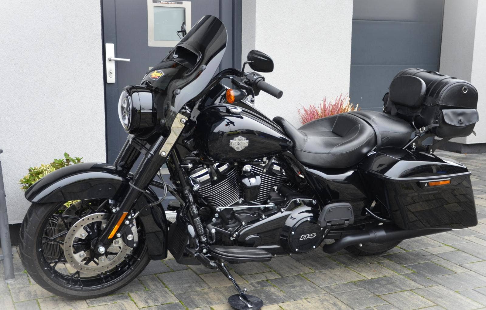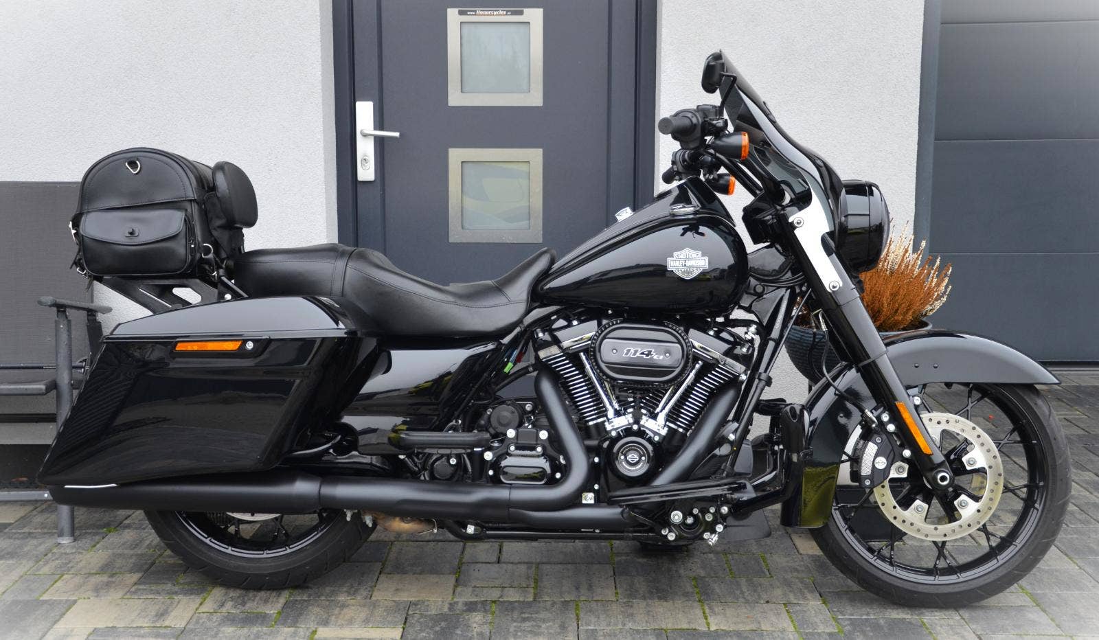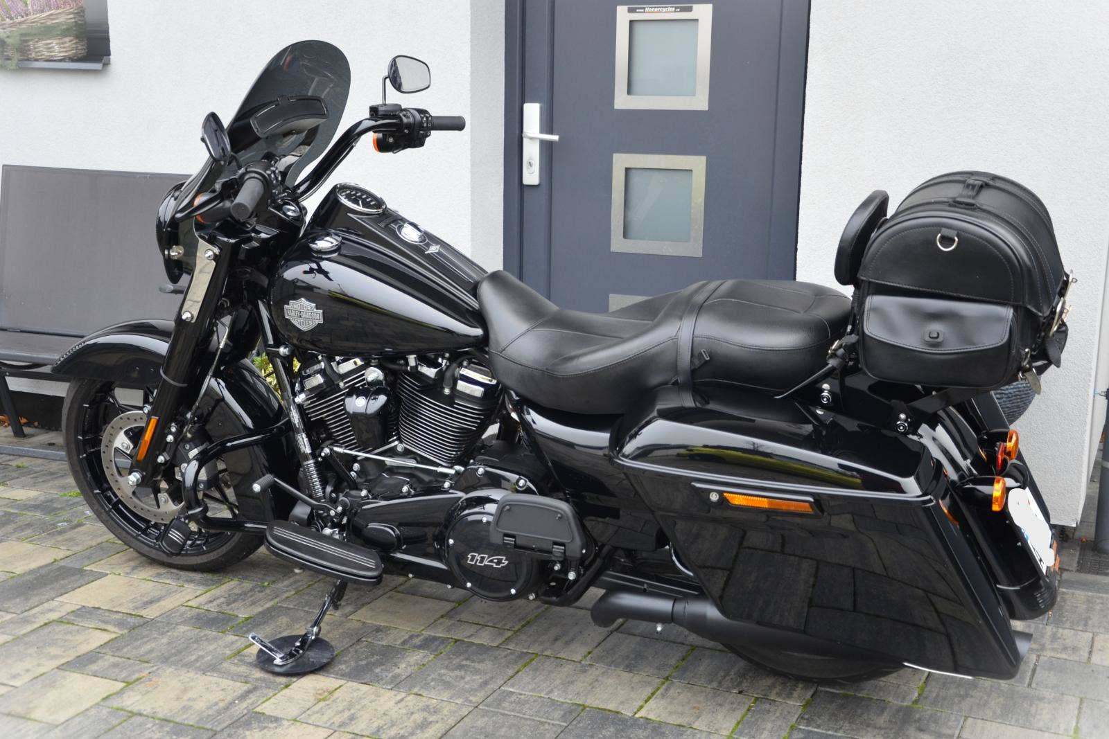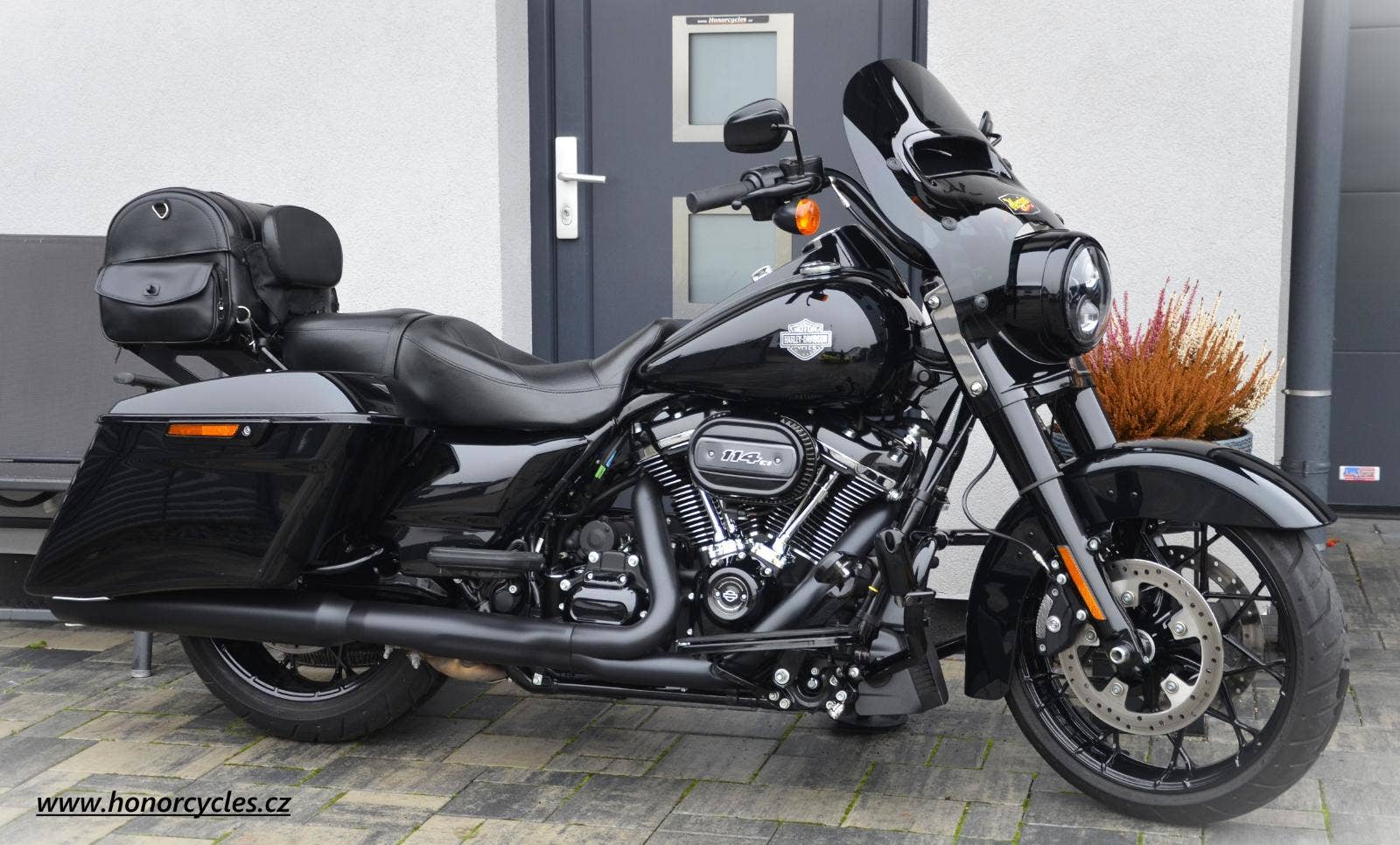 Harley Davidson FLHRXS Road King Special 114 zakoupen nový v ČR 2022, jediný majitel - pouhých 16.000 km!!! - doložen pravidelný servis. Perfektně dovybavený Special s ohledem na cestovní pohodlí pro delší jízdy - doplňkové HD plexi pro tento model, cestovní doplňkové sedlo ( původní k motocyklu ), předkopy, plotny pro spolujezdce, opěrka a kožený kufr renomované značky Saddlemen. Krásný King s jasnou historií prvního majitele. Možný protiúčet Vašim stávajícím strojem. Dopravu po dohodě zajistíme. Cena 519.000 Kč. Odpočet DPH - ne.