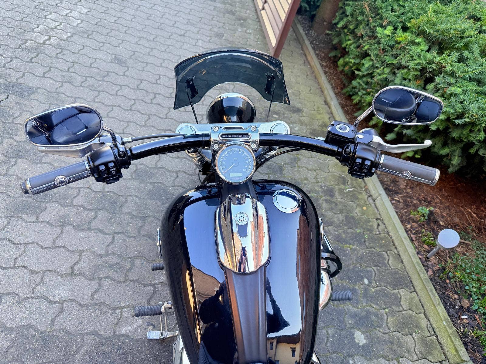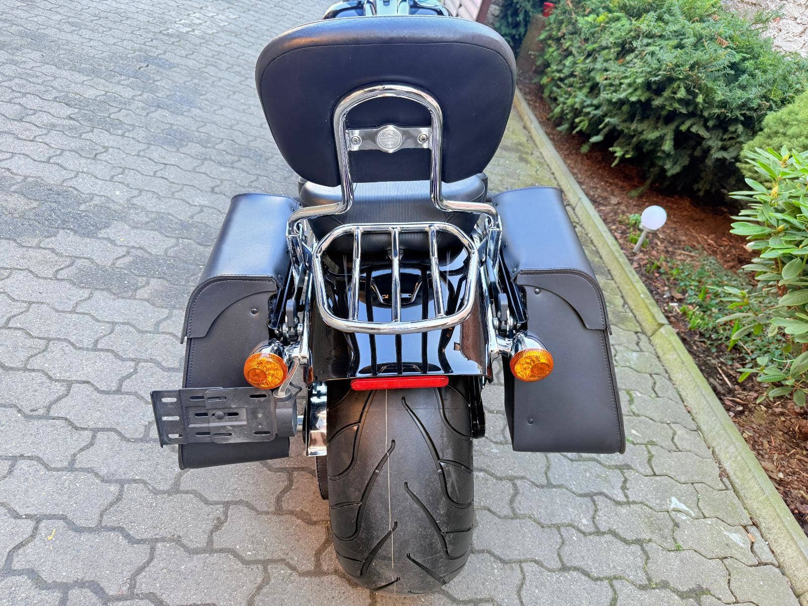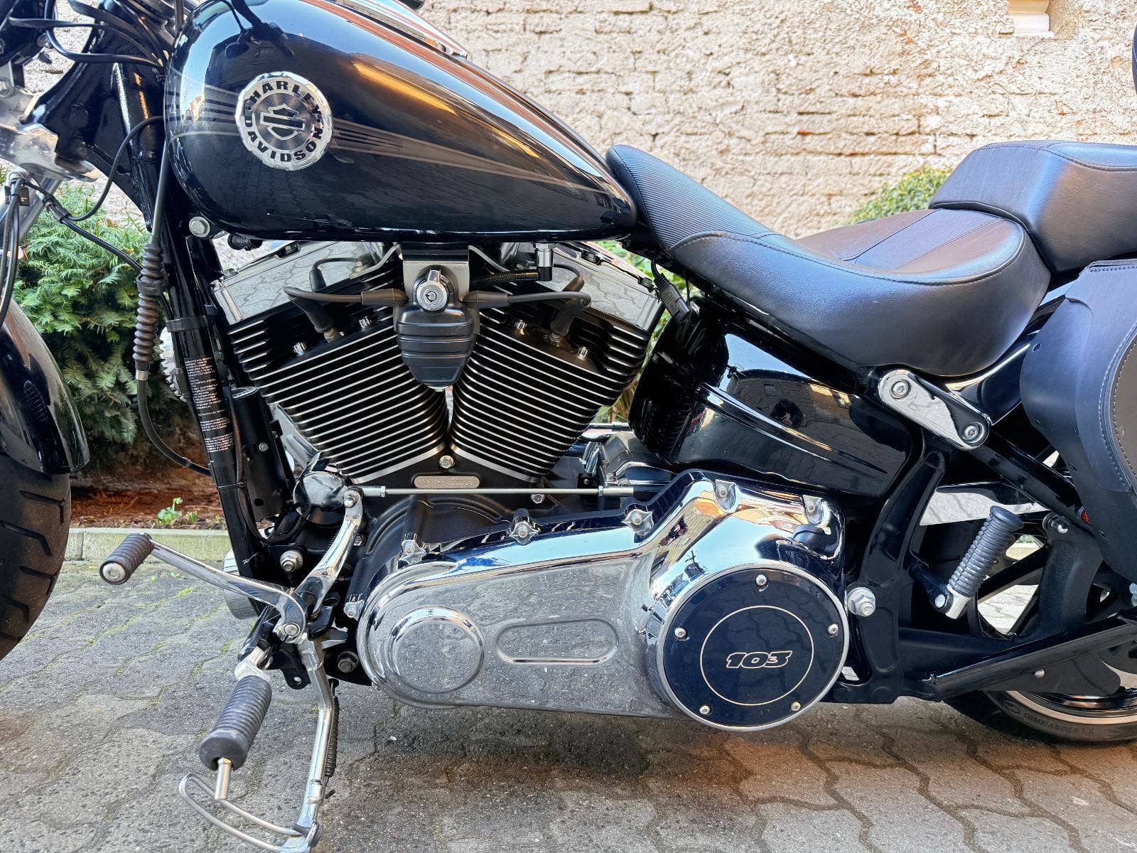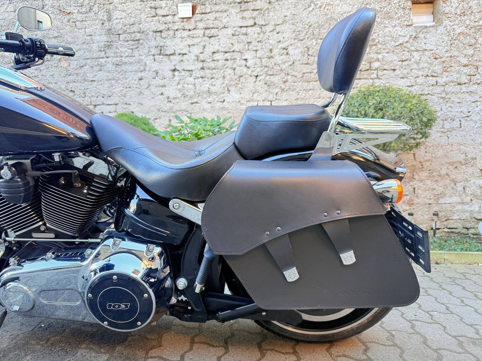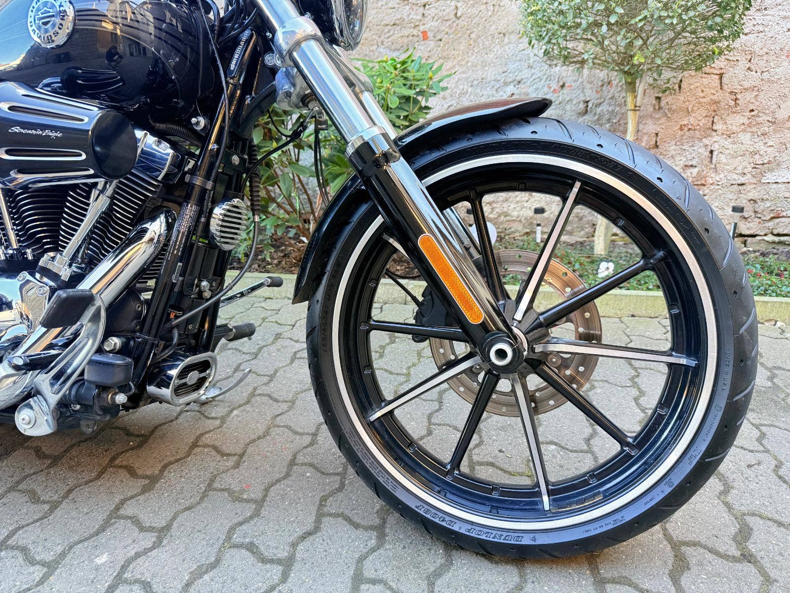 Harley-Davidson FXSB Sofatil Breakout s ABS. Motocykl je po základní servisu - nové náplně, olejový filtr, svíčky, přední a zadní brzdové destičky. Motockyl má velké množství doplňků : Originál rychloupínací brašny, rychloupínací opěrku s nosičem, doplňkové sedadlo spolujezdce, vyhřívané hefty Skull, LED parabola hlavního světla a LED vložky předních blinkrů Custom Dynamics, plexi Dart, laděné výfuky Vance and Hines, sání Screamin Eagle a boční držák SPZ, který bude zapsaný v TP. V ceně motockylu je přihlášení, roční záruka a nová gelová baterie,