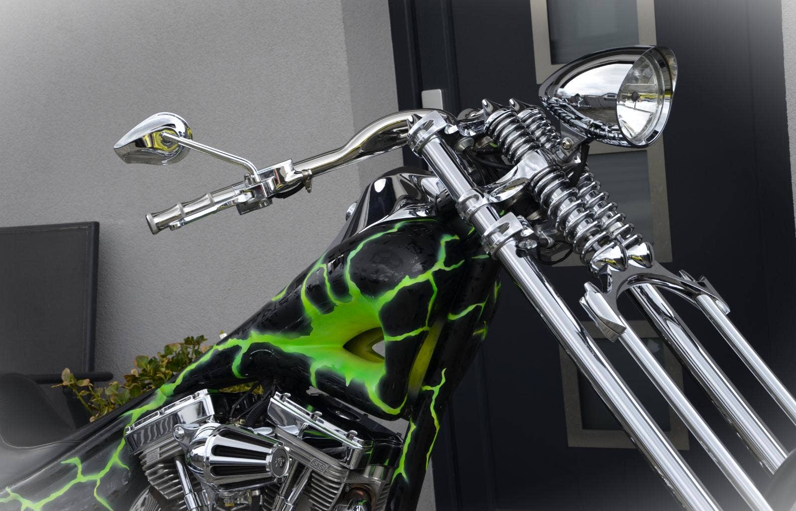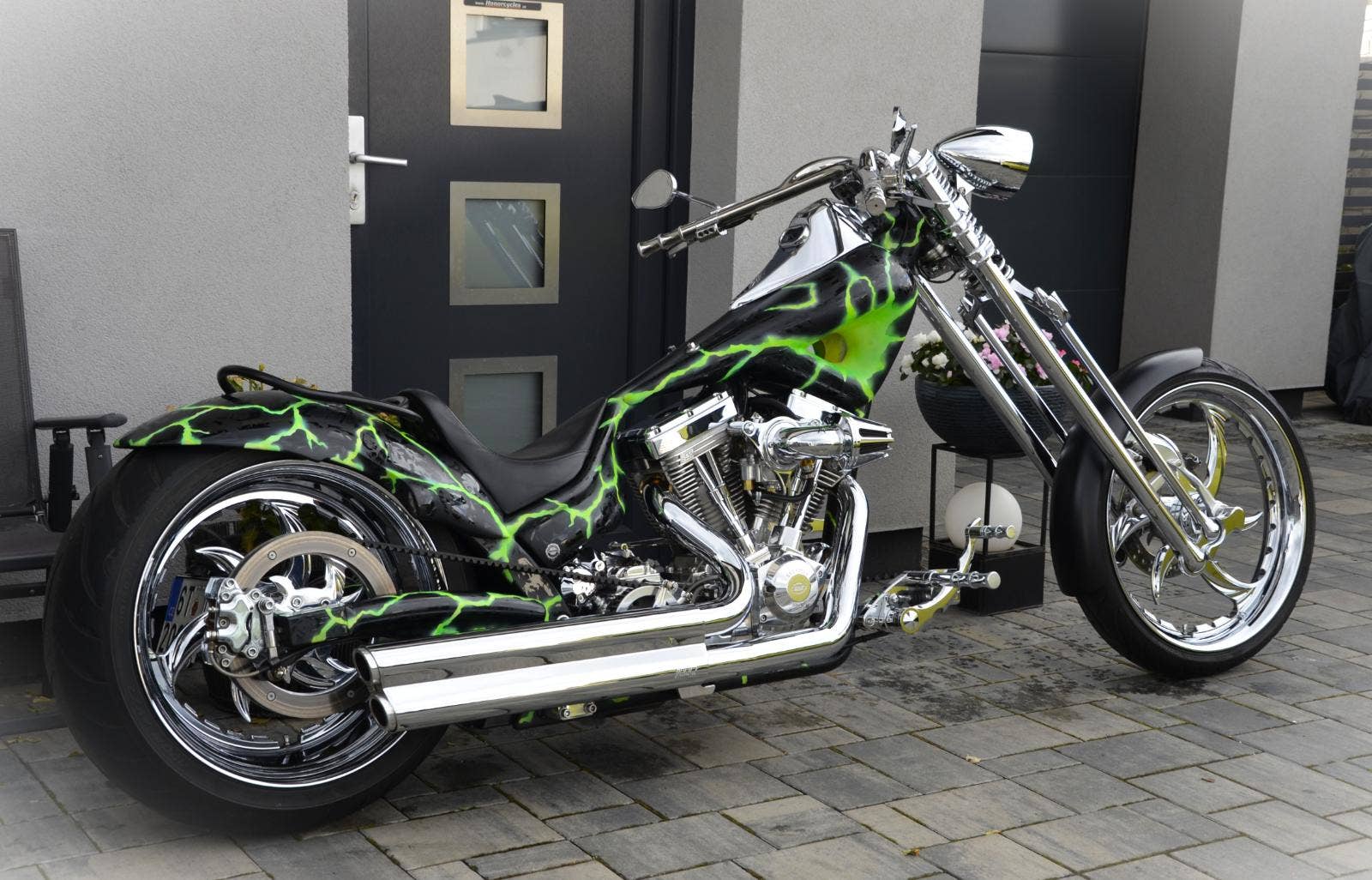 Big Dog Chopper zakoupen nový v ČR 2010 jediným vlastníkem, k dnešku najeto pouze 2.500 km. Sestavení platformy Big Dog se zakázkovými požadavky majitele uskutečnili v VMP Písek, použity jsou absolutní top komponenty, včetně AIR RIDE SYSTEM podvozku. Ani na německém trhu nyní není jediný Big Dog s tak hodnotnými koly a Springer vidlicí. Legálně registrovaný motocykl s českým TP a SPZ. Nepopsatelně na sebe stahuje pozornost, kdekoliv jen přibrzdíte. Možný protiúčet Vašim stávajícím strojem. Vzhledem k náročnějšímu převozu dopravu zajistíme. Cena 399.900 Kč. Odpočet DPH - ne.