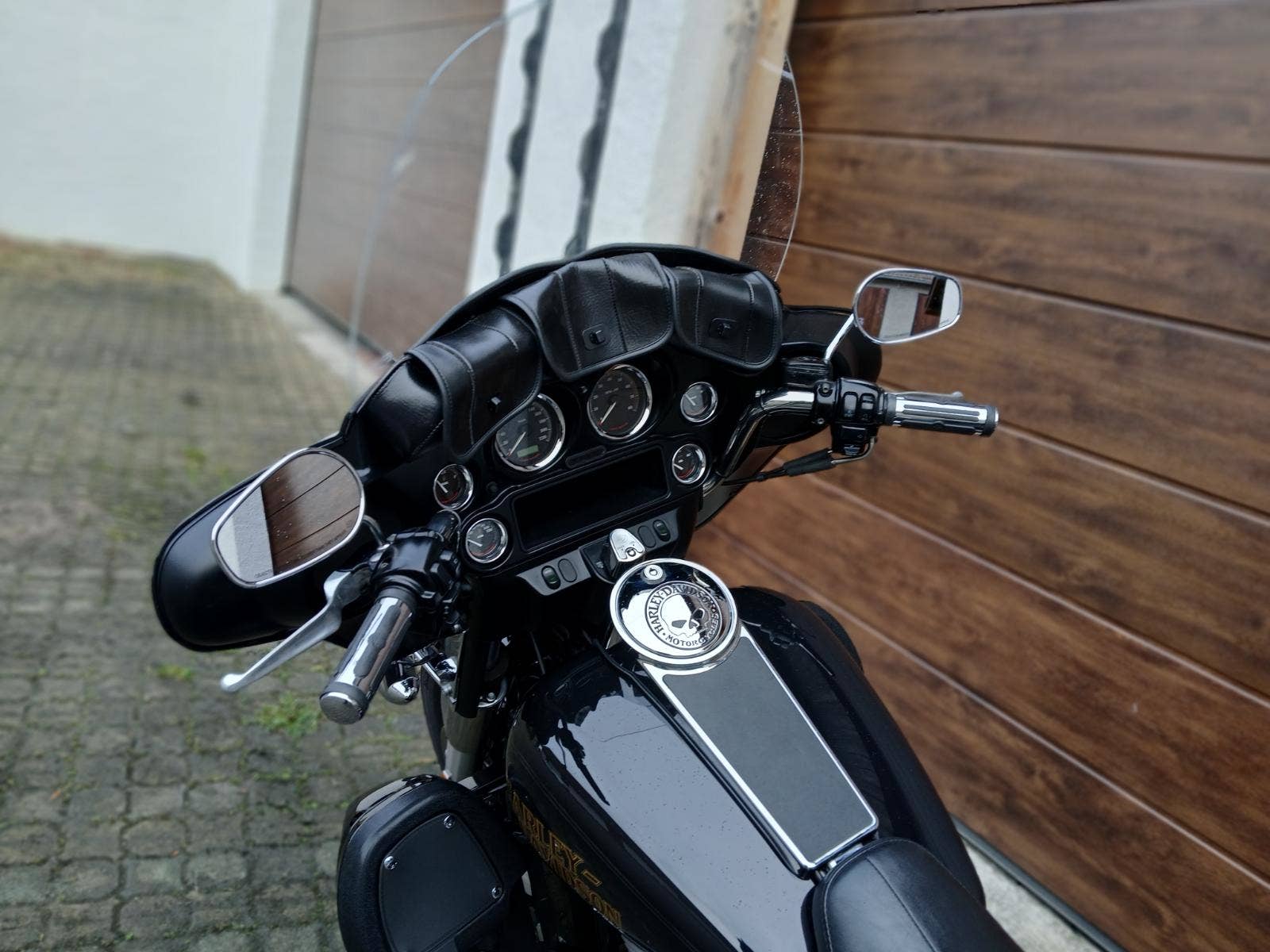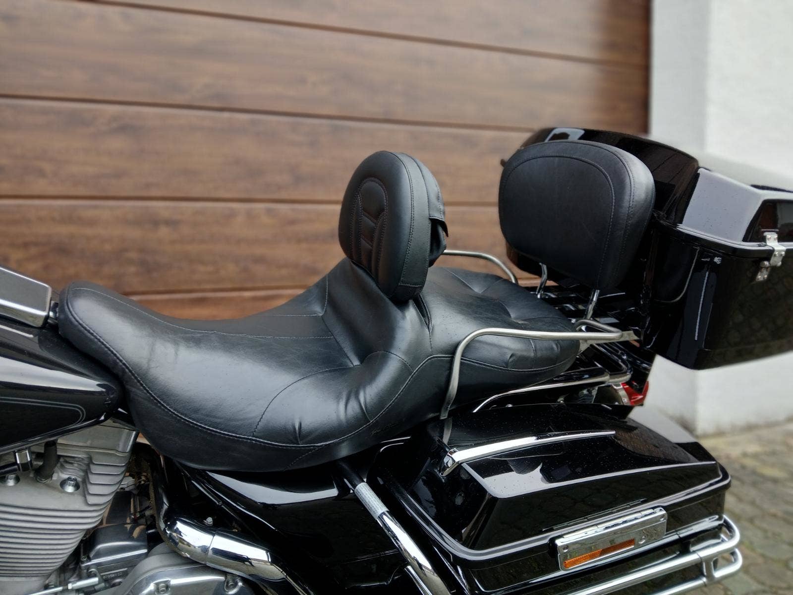 Výbava: sání Screamin Eagle, výfuky Screamin Eagle, stabilizátor zadní kyvky, opěrka s nosičem a na něm přimontován tourpak, přední kolenní kapoty, vyšší plexi Memphis Shades, doplňkové gripy, víčko nádrže, přídavná světla, opěrka řidiče, brašničky u plexi.