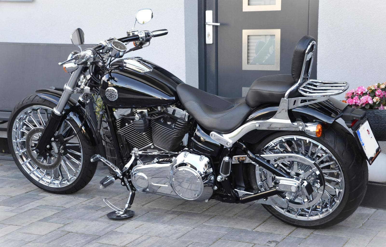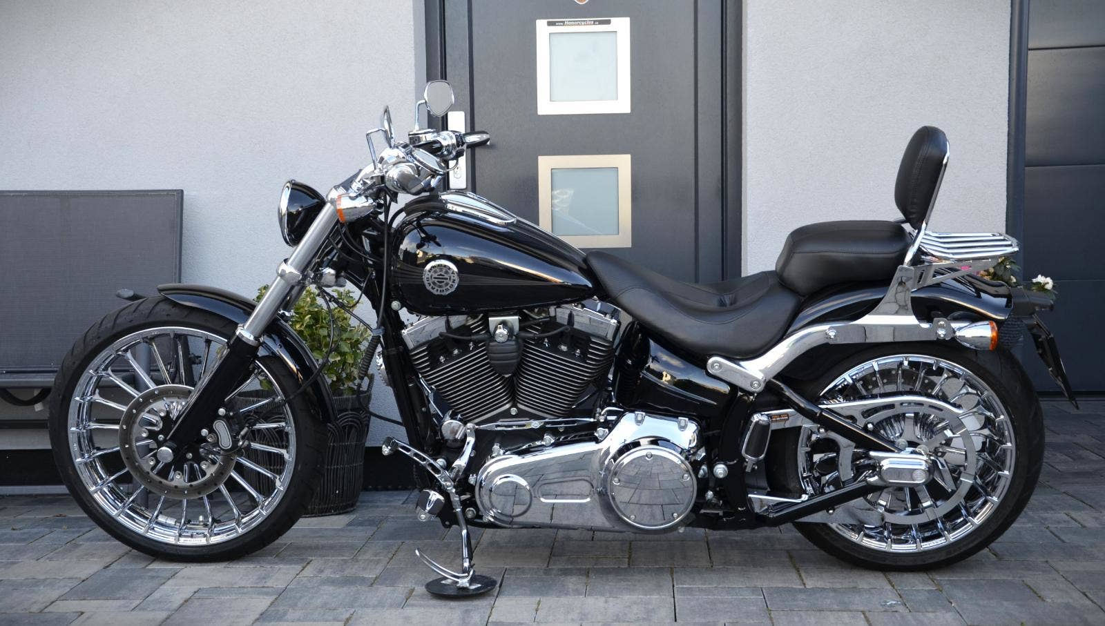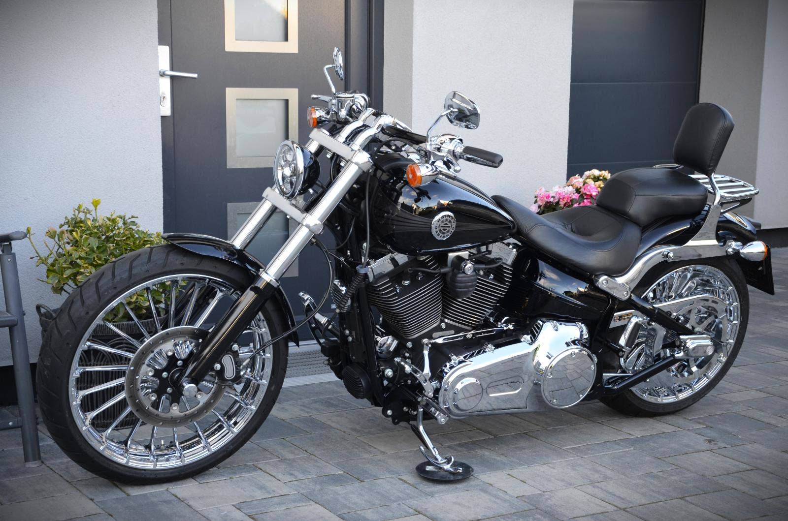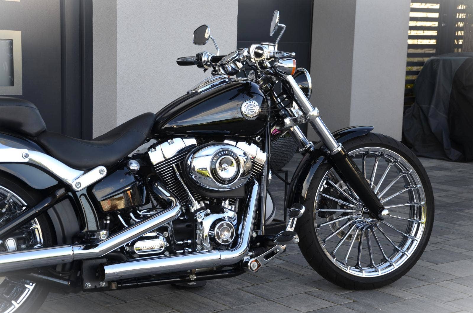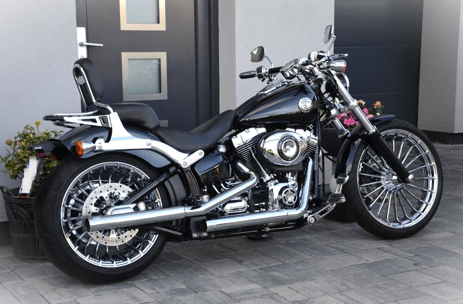 Harley Davidson FXSB Softail Breakout 103 zakoupen nový v ČR 2013, najeto pouze 14.500 km!!! Jedinečně nastrojený drahými doplňky, včetně chromových kol v pořizovací ceně 98.000 Kč. Dále vše v chromu, tzn. páčky, domečky přepínašů, hefty, řemenice i kryt řemene, kryty os kol, táhlo řazení, stupačky atd… pro spolujezdce pohodlnější zadní sedlo a opěrka spolujezdce s nosičem. LED svělomet i přední a zadní blinkry. Zvuková kulisa - Vance Hines. Vše se řešilo pouze HD věcmi, žádný aftermarket. Zcela nové obutí ( komplet ). Breakout je sám o sobě impozantní, ale takto vyladěn je až nehorázný.:-) Možný protiúčet Vašim stávajícím strojem. Dopravu po dohodě zajistíme. Cena 409.000 Kč. Odpočet DPH - ne.