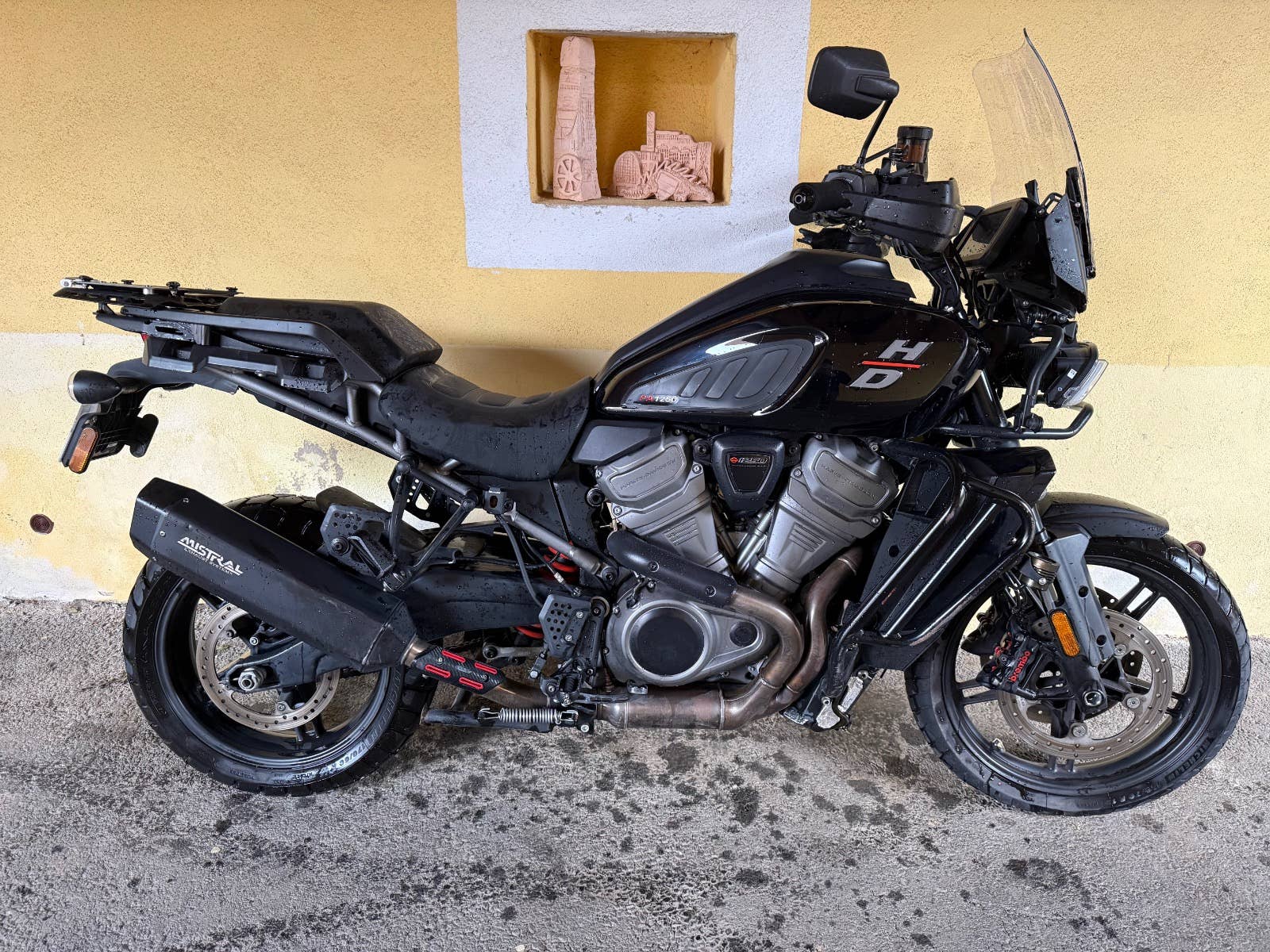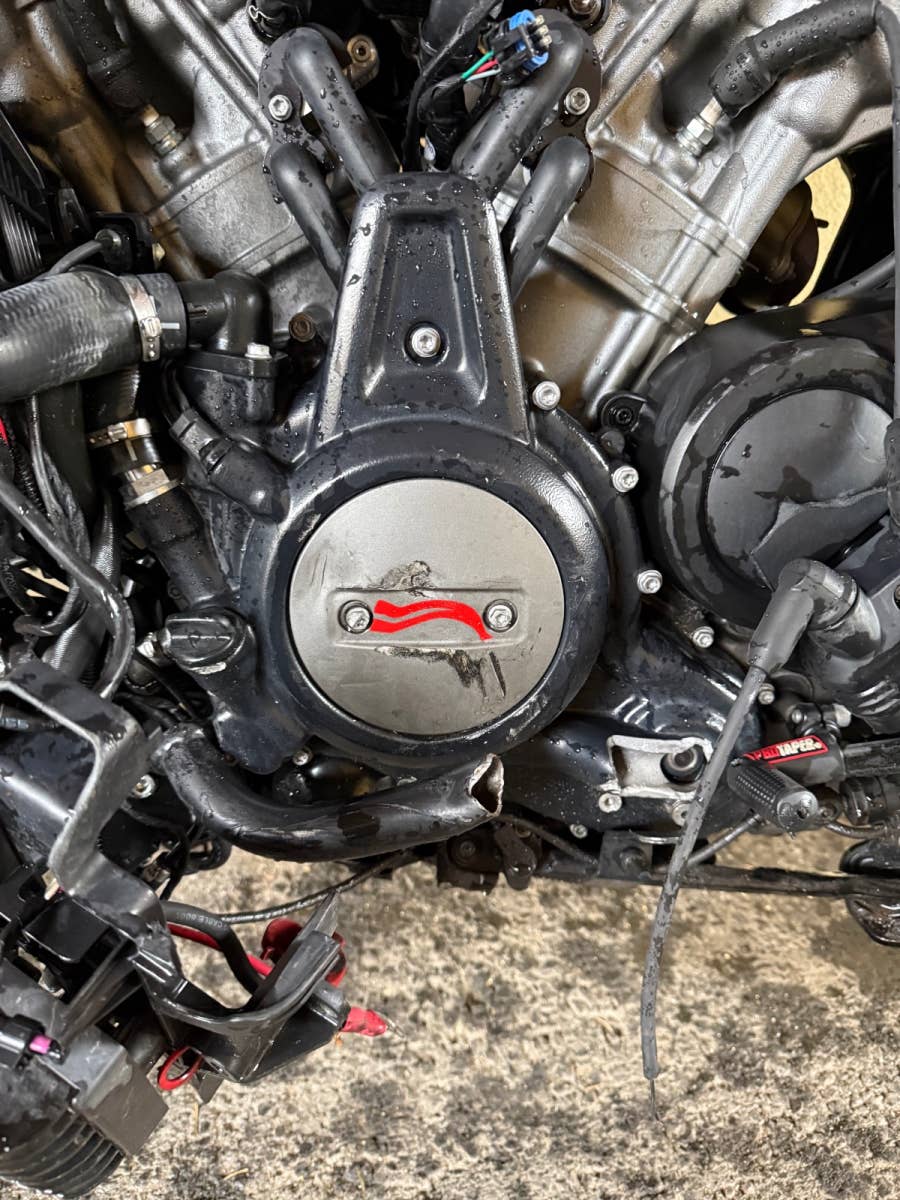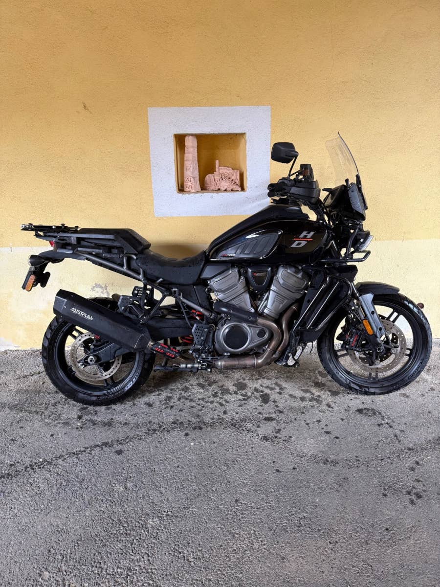 Havarovaná Harley Davidson Pan America 2022 5HD EU 24 880 km, podvozek vypadá v pořádku, rozbitá příruba na vodní pumpu (na dekliku motoru) motor o. k. Laděný homologovaný výfuk Mistral, motorka je zachovalá nejetá v terénu!