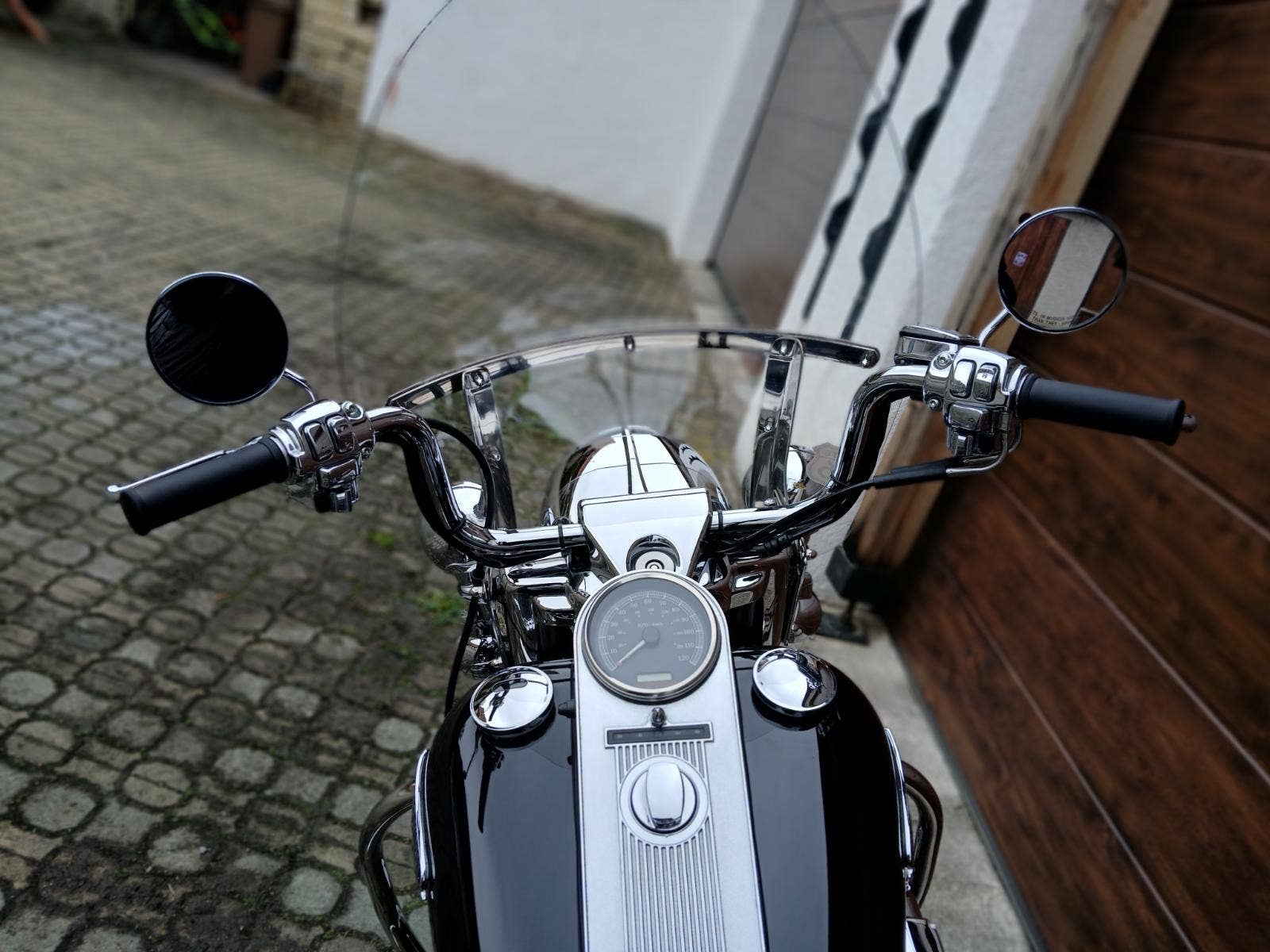 Výbava: sání Kuryakin Hypercharger, výfuky Screamin Eagle, doplňkové víčko krytu rozvodů, chromované páčky, ovladače i čudlíky, brzdová pumpa, doplňková zrcátka, kouřová sklíčka, cestovní sedlo.