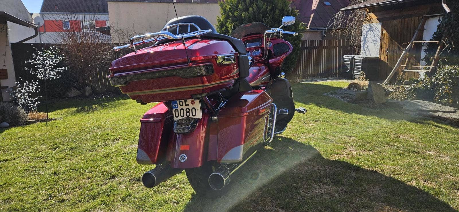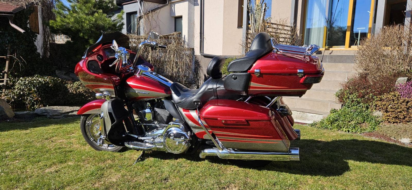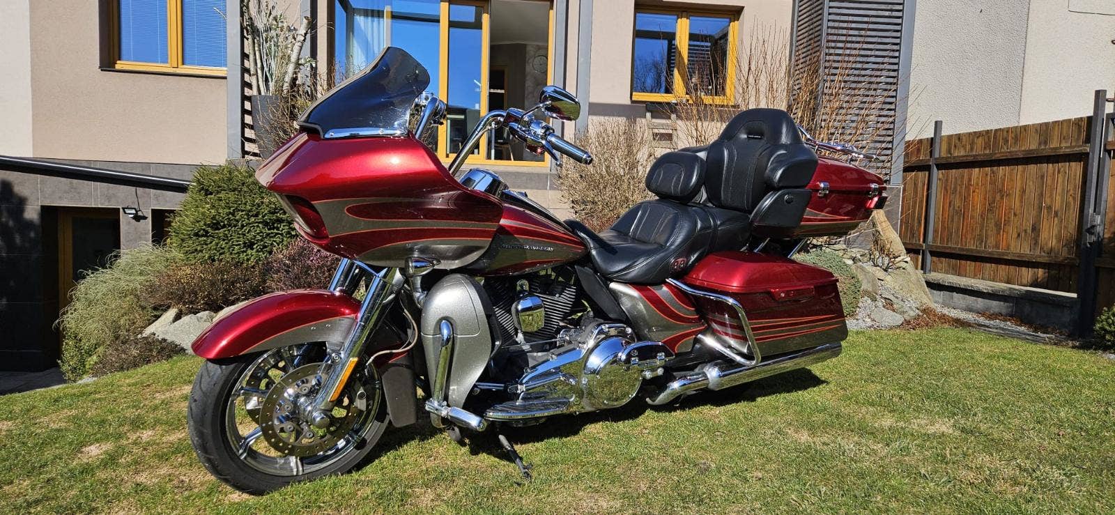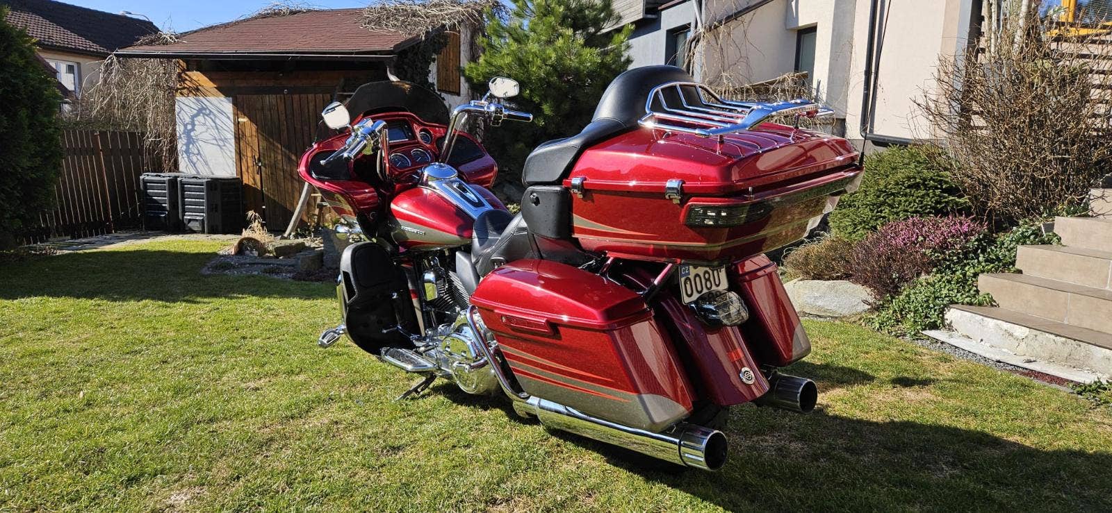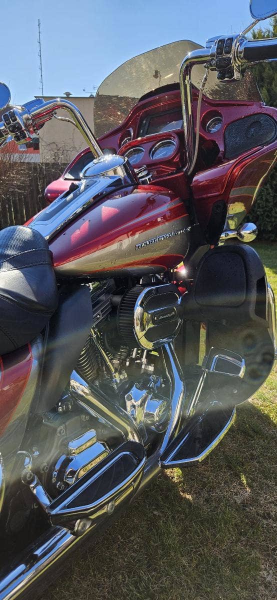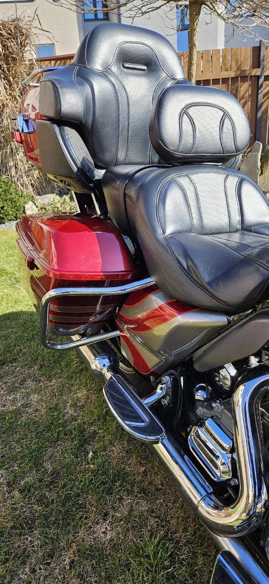 Výbava: Výfuky Screamin Eagle, sání Screamin Eagle, navigace, vyhřívané gripy, vyhřívané sedlo, centrální zamykání na DO všech kufrů a řízení. Opěrka řidiče.