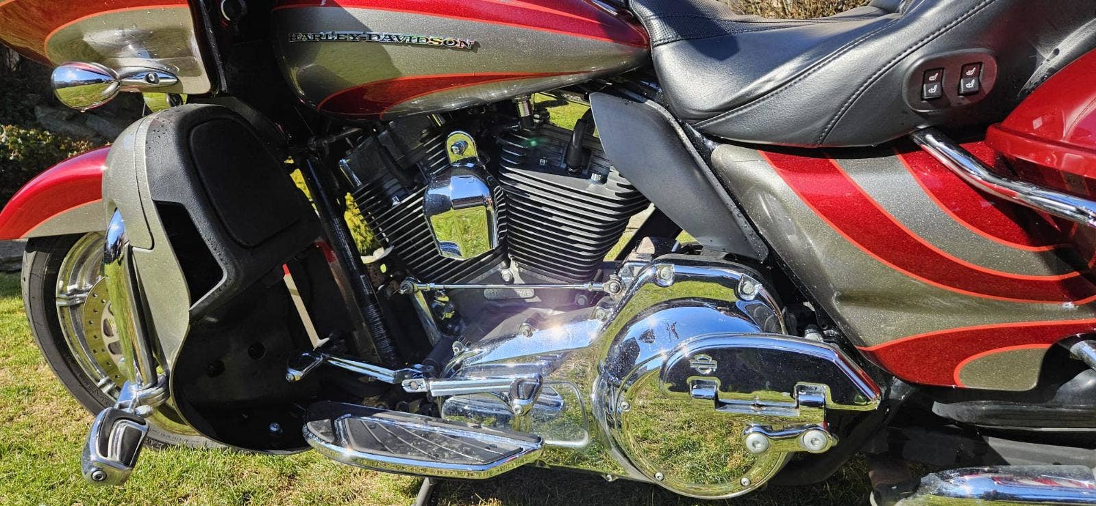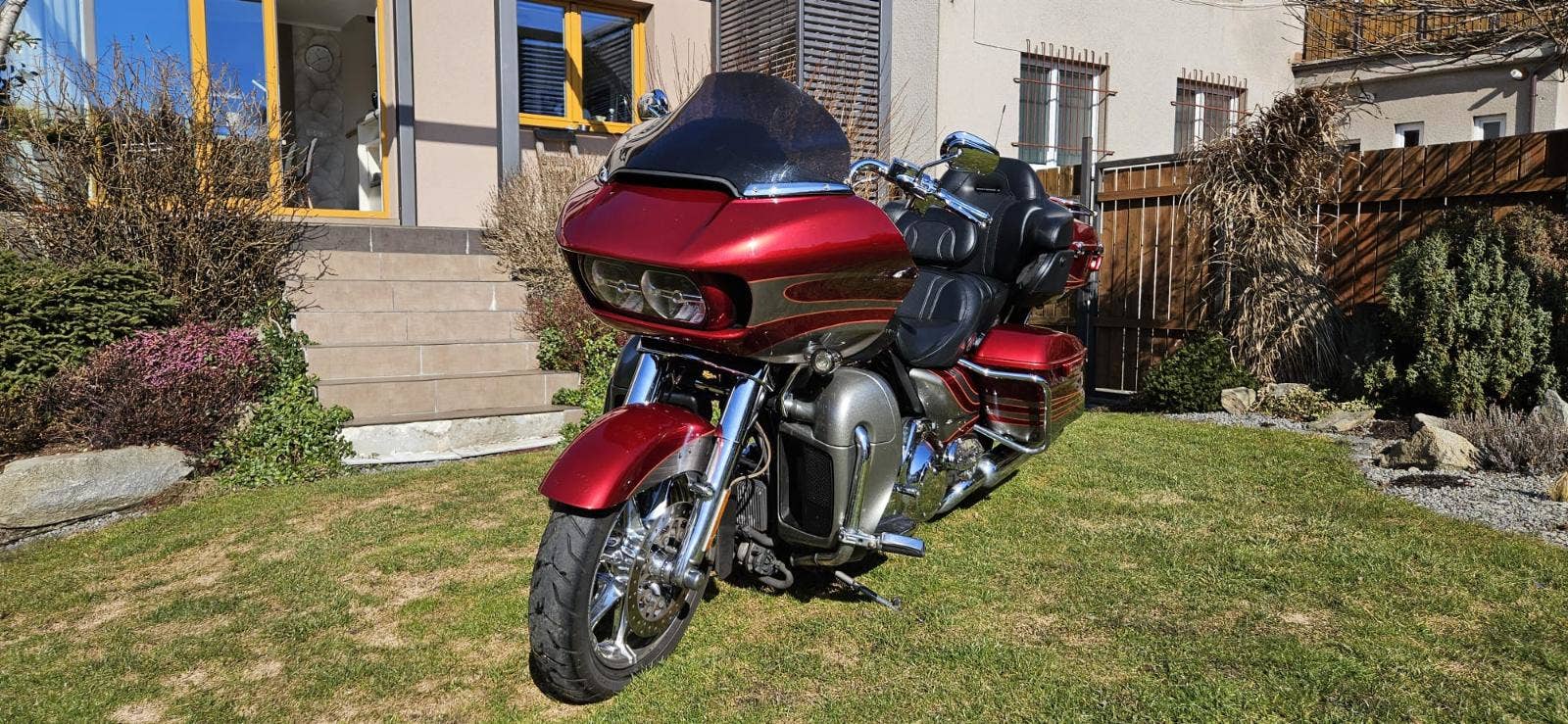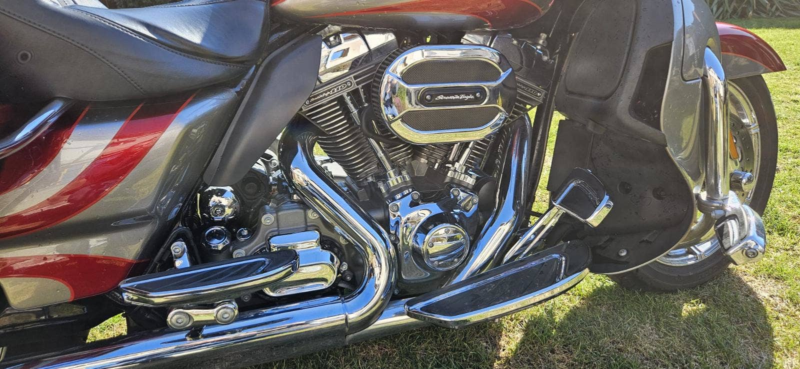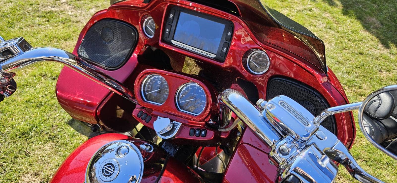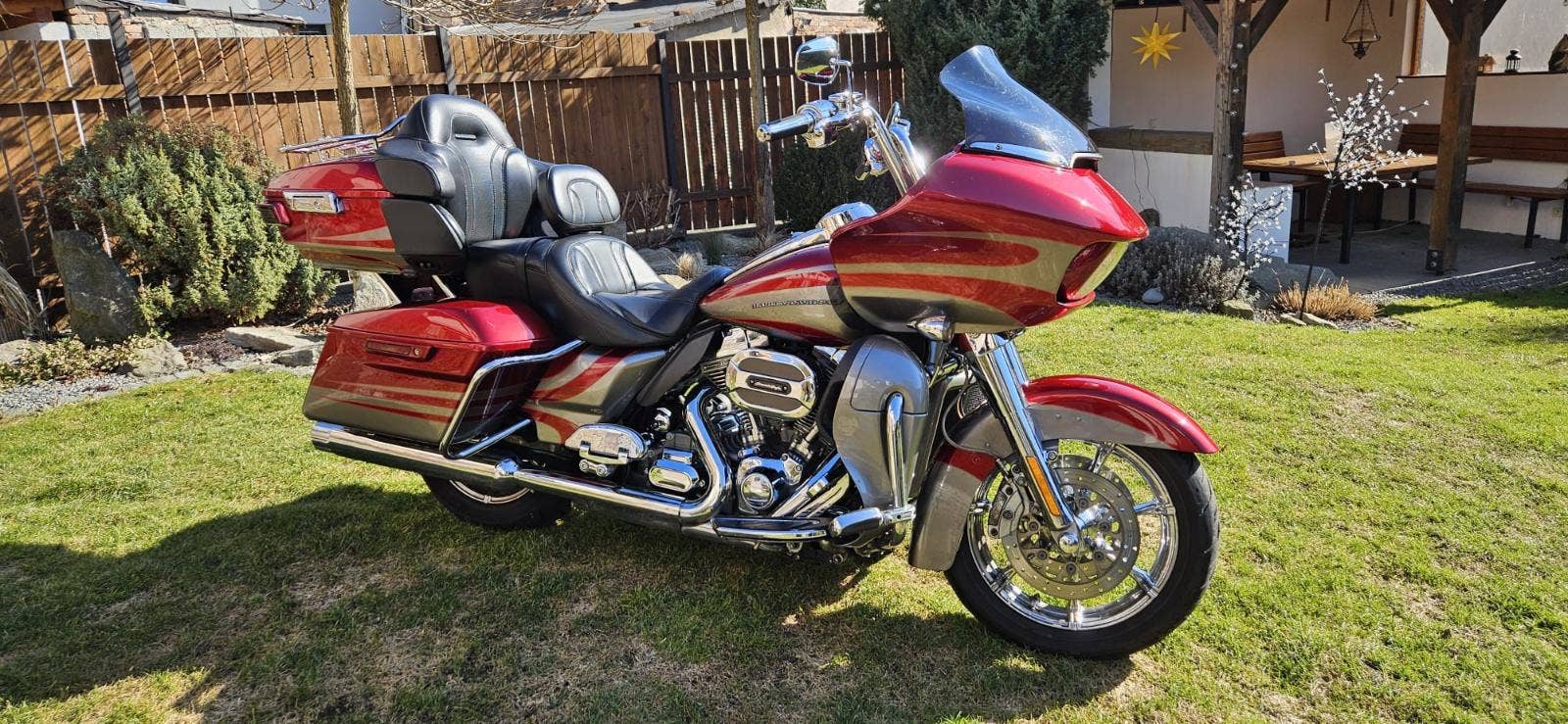 Výbava: Výfuky Screamin Eagle, sání Screamin Eagle, navigace, vyhřívané gripy, vyhřívané sedlo, centrální zamykání na DO všech kufrů a řízení. Opěrka řidiče.
