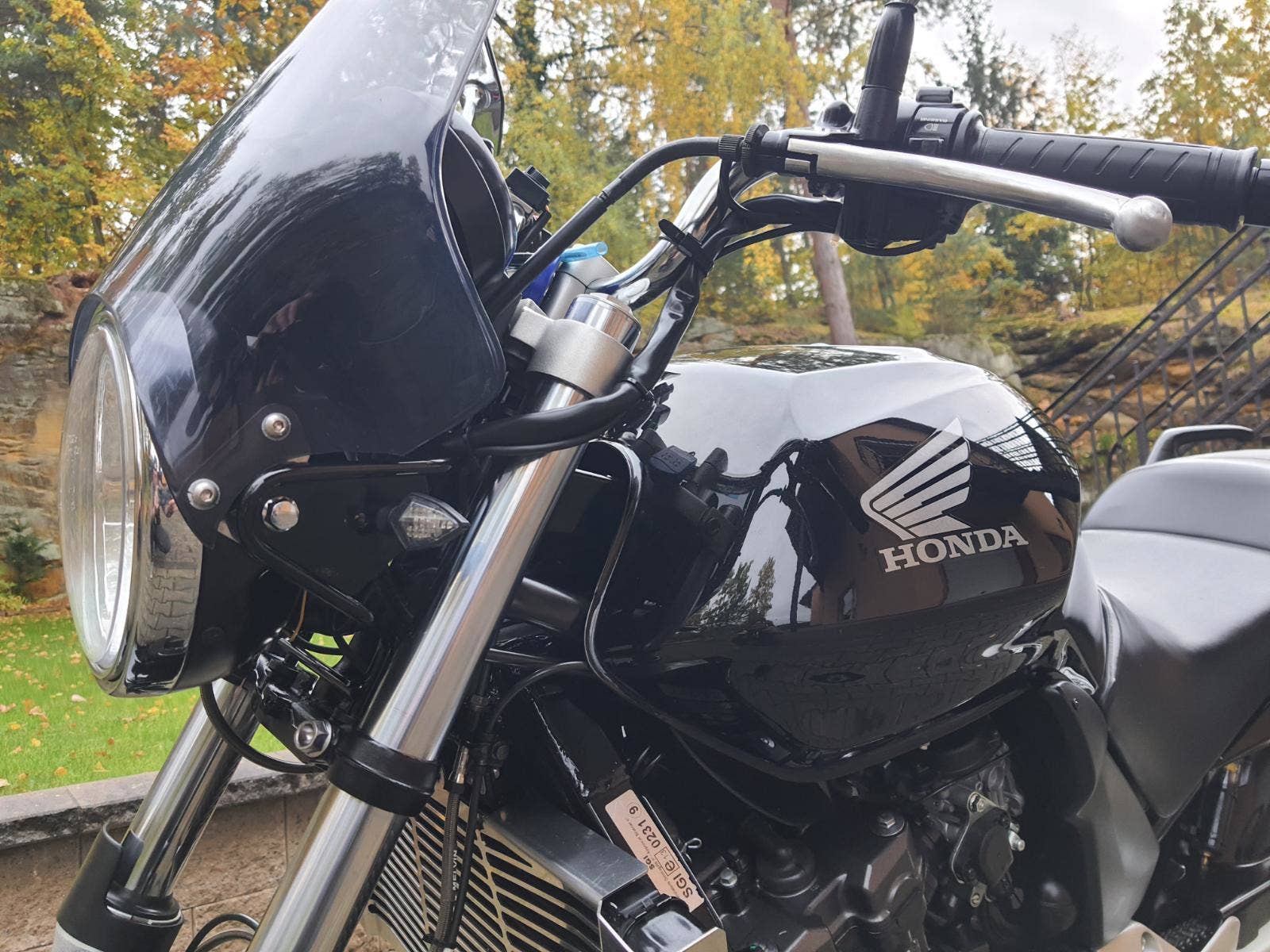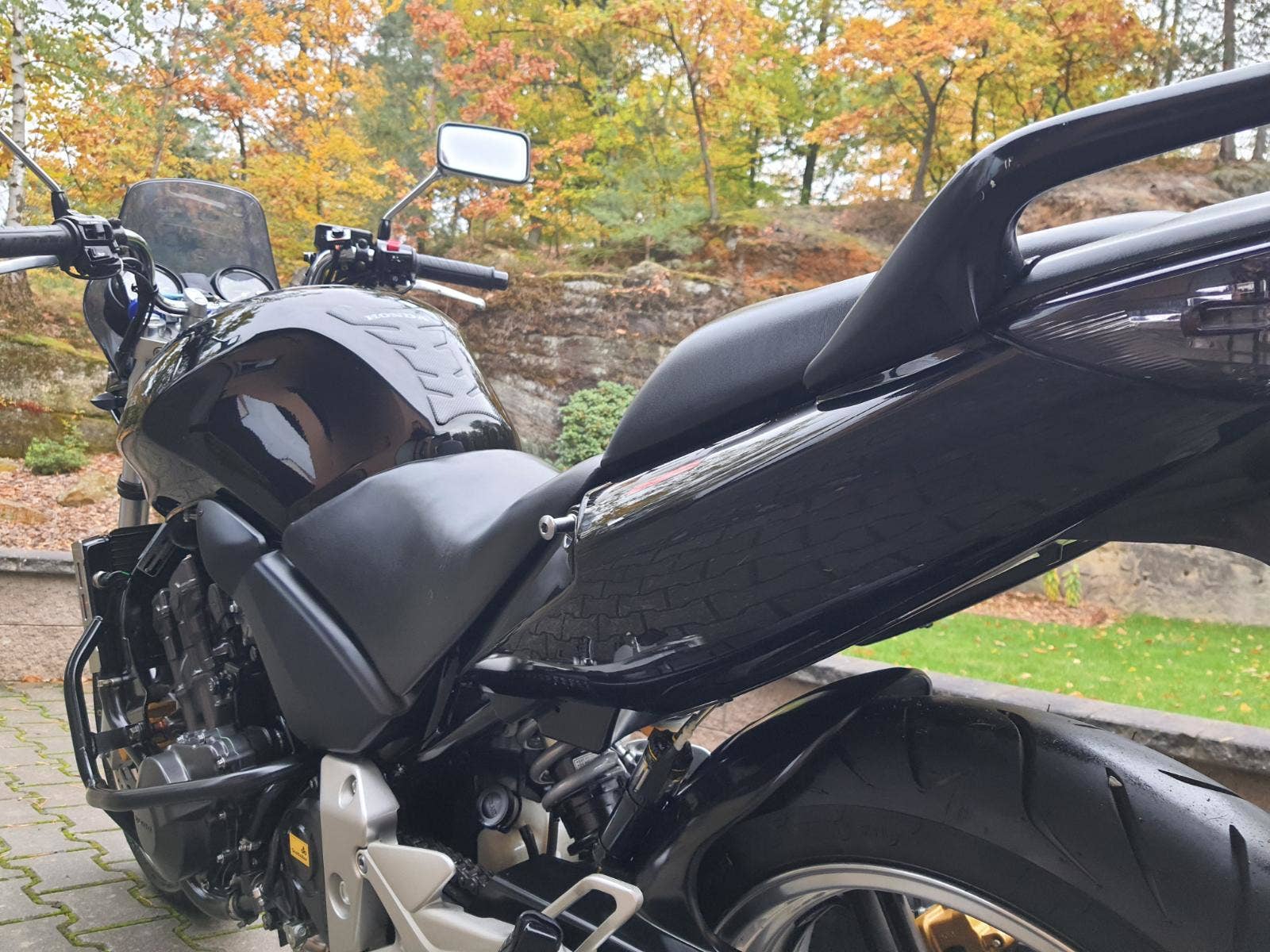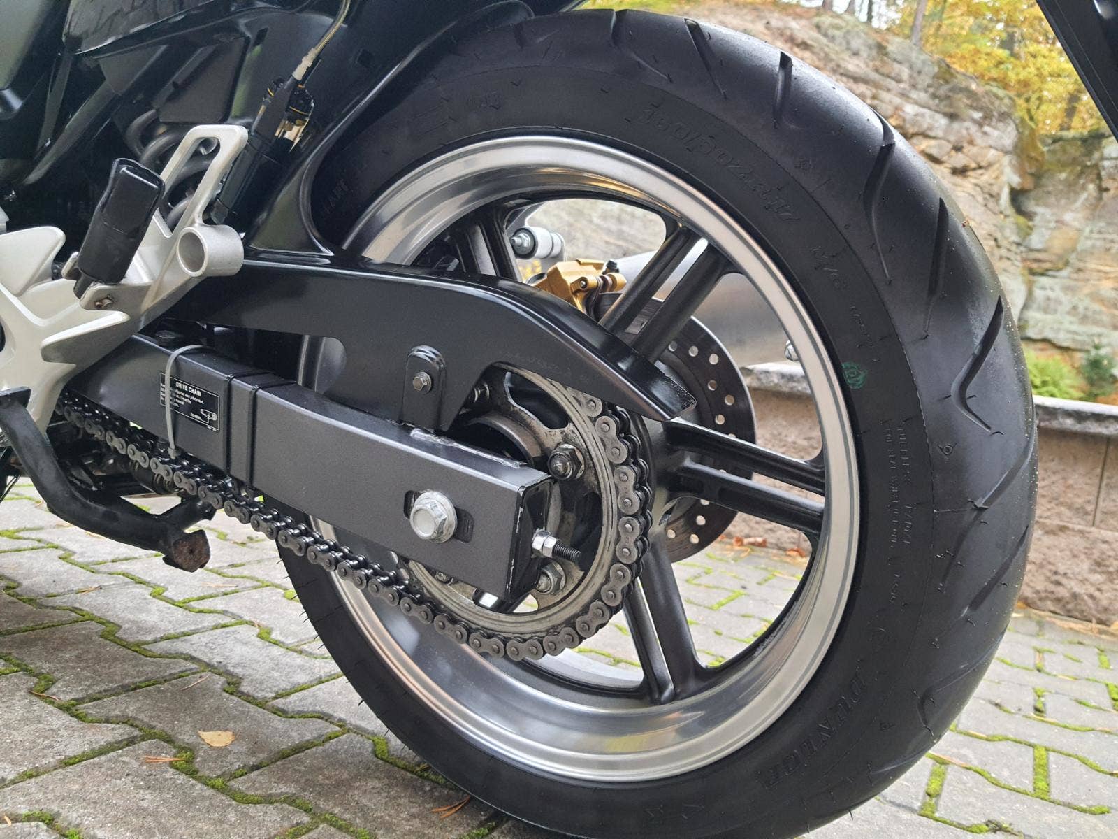 Motocykl v TOP stavu a výbavě, dovezený z Německa. 2 x klíč, servisní knížka, manuál, certifikát COC. Protokoly TUV k doplňkům a příslušenství. Zánovní sada pneu + řetězová sada. Moto bez investic. Výbava motocyklu: ABS, alarm na dálkové ovládání, 2 x ovladač, pancéř. hadičky, leštěné kola, padací rámy, hlavní stojan, pancéř. hadičky, plexi štítek, laděný homologovaný výfuk LEO VINCE, doplňkové čiré přední světlo, + led diodové zadní světlo, blatníček zadního kola, přimazávání řetězu SCOTTOILER, led diodové blikny, vyhřívané rukojeti, nerezový kryt chladiče. Možnost splátkového prodeje, již při složení 10% akontace vyřízení úvěru do 30 minut!