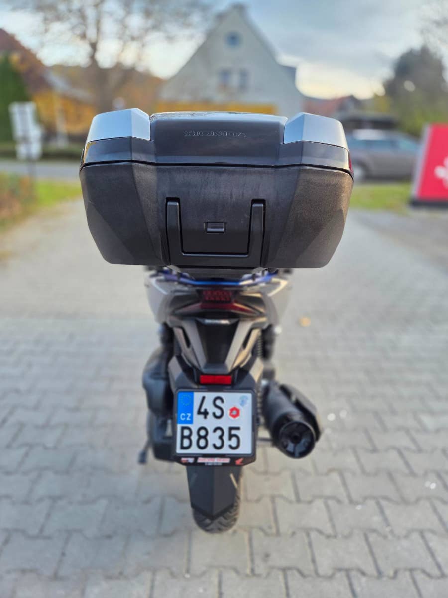 K moto: TP, ORV, 2x bezklíčový ovladač, servisní kniha, manuál. Smart top box.