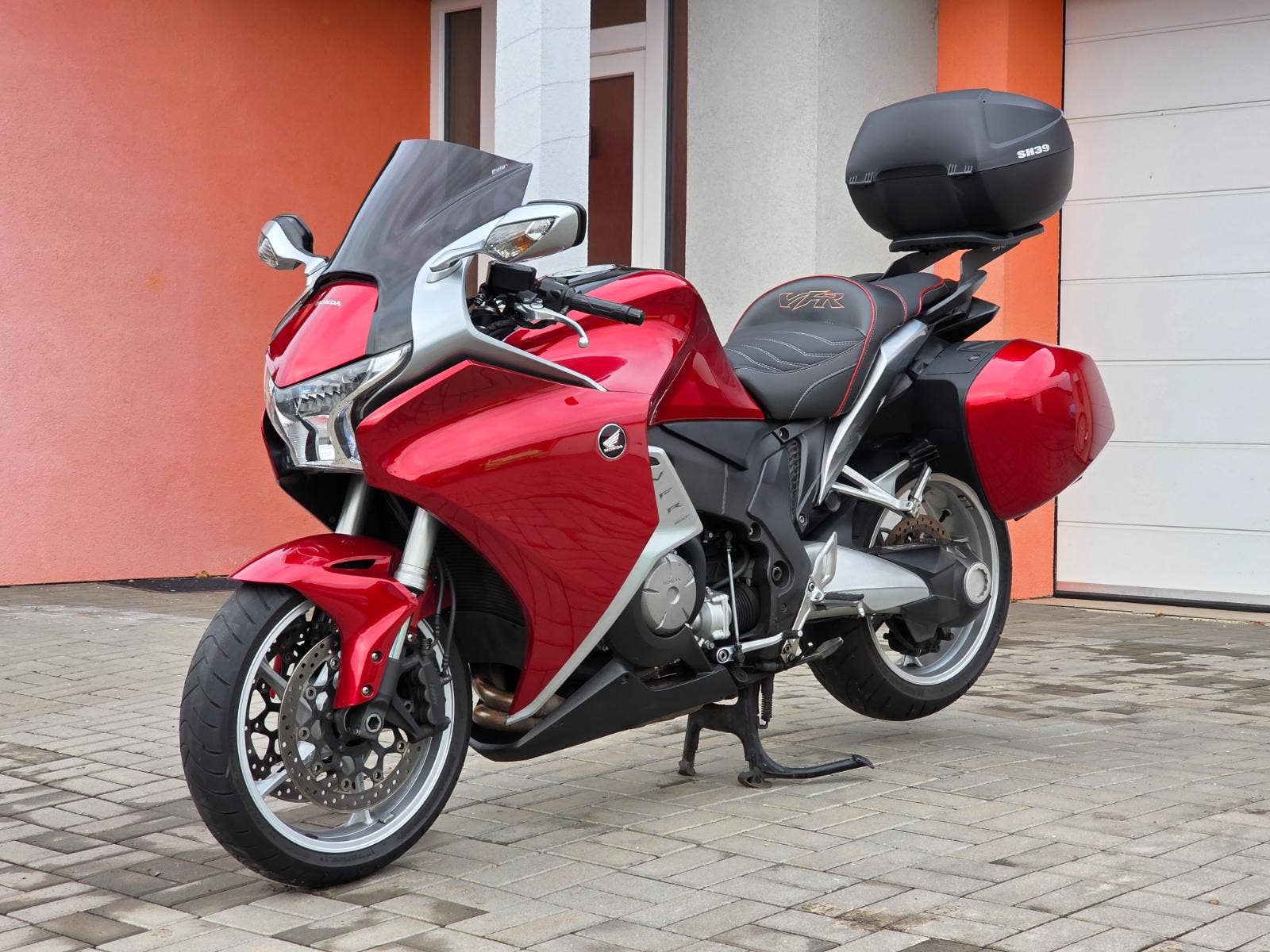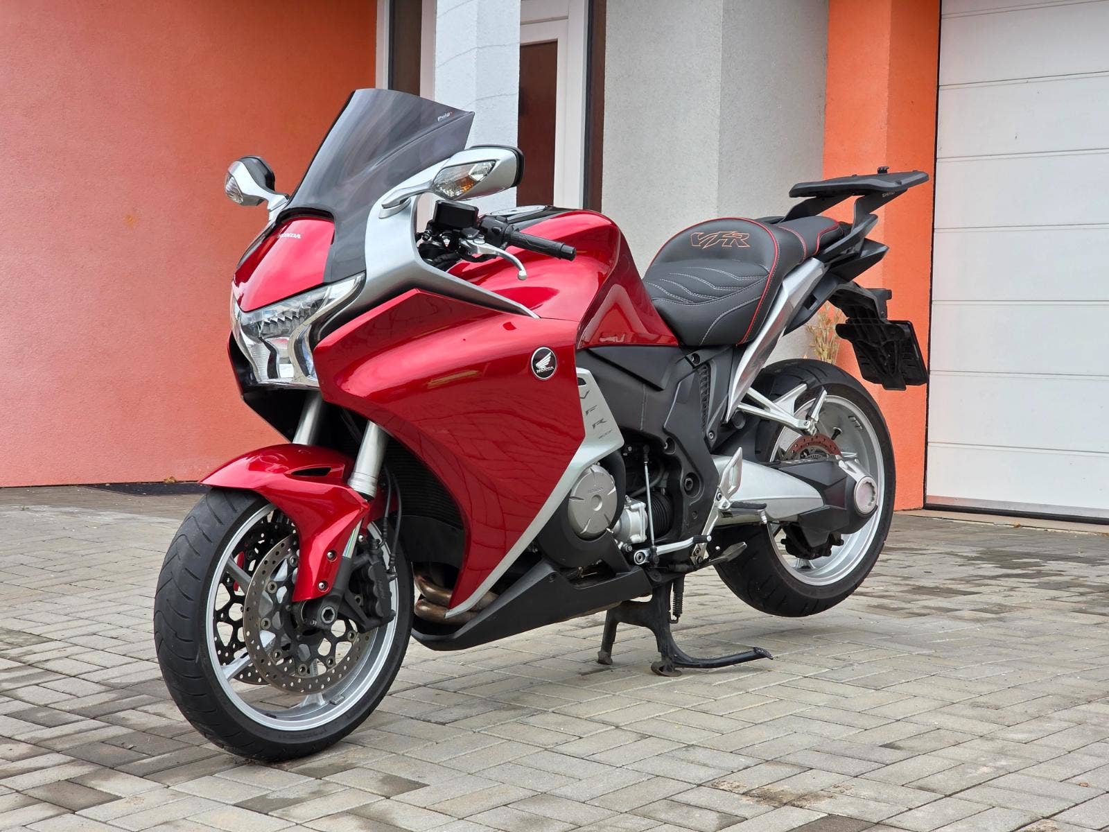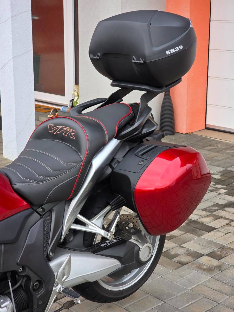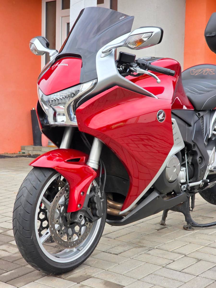 Prodám Honda VFR 1200 F v krásné červené metalíze, rok výroby 2010, najeto 54.800 km, výkon 127 kW, objem motoru 1237cm3, STK platná do 5/2027. Motorka dovezena do ČR v roce 2019. Celkově v hezkém originálním stavu, pravidelný servis. Navíc dokoupené originální boční kufry Honda, držák horního kufru, kufr Shad SH39, pohodlnější přešité sedlo, vyšší plexi Puig, vyhřívané rukojeti. Krásná pohodlná sportovně cestovní motorka co má dostatek výkonu, umí si to užít jak v zatáčkách tak stejně zvládne rychlejší dálniční přesuny, výkonný motor, plně nastavitelné tlumiče, letmé uložení zadního kola, pohon kardanem, ABS, dual CBS brždění, velké 6pístkové brzdiče vpředu apod. K motorce dva klíče, manuál k obsluze.